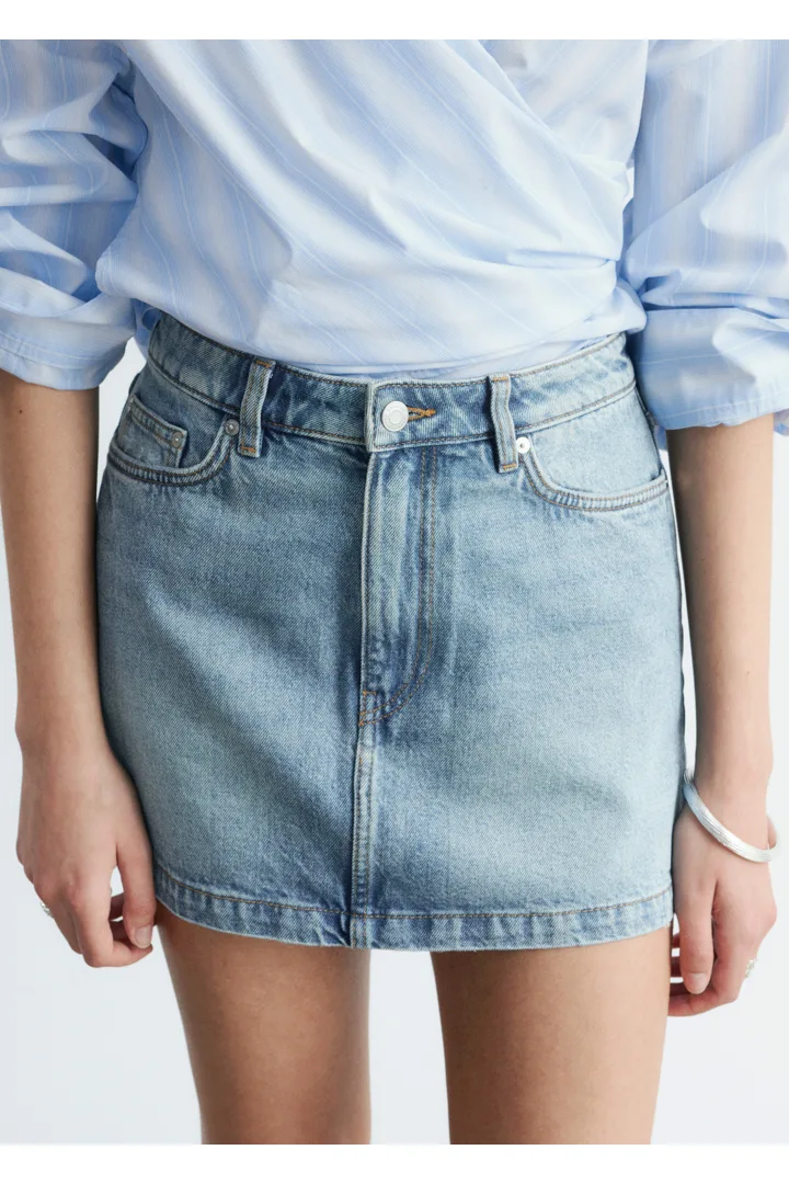 매일의 일상에서 편안하게 연출하기 좋은 데님 미니 스커트예요. 코튼 & 라이오셀 혼방 소재와 클래식한 5 포켓 실루엣으로 탄생했으며, 빈티지한 마감 처리로 자연스럽게 바랜 듯한 룩을 연출한답니다.