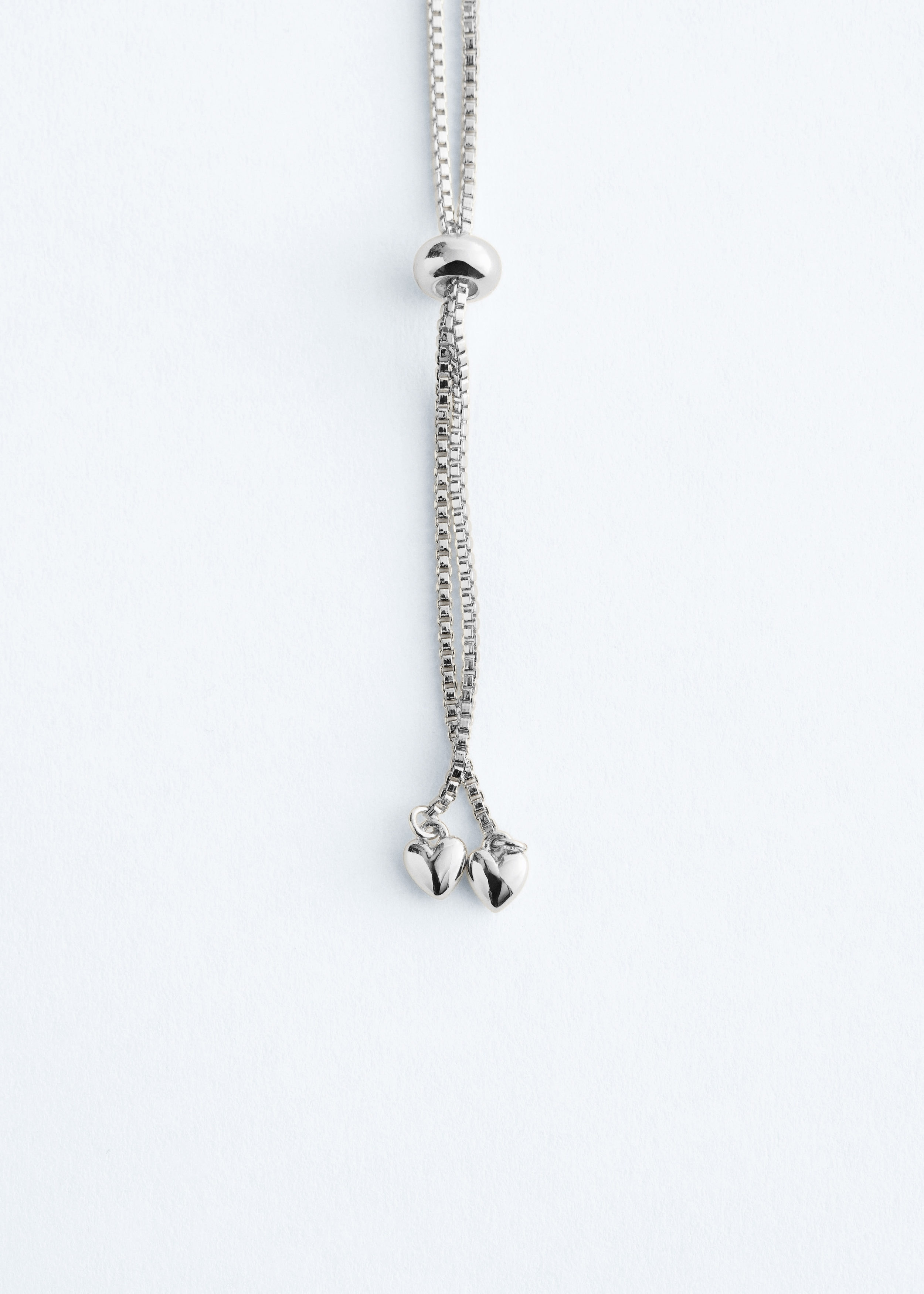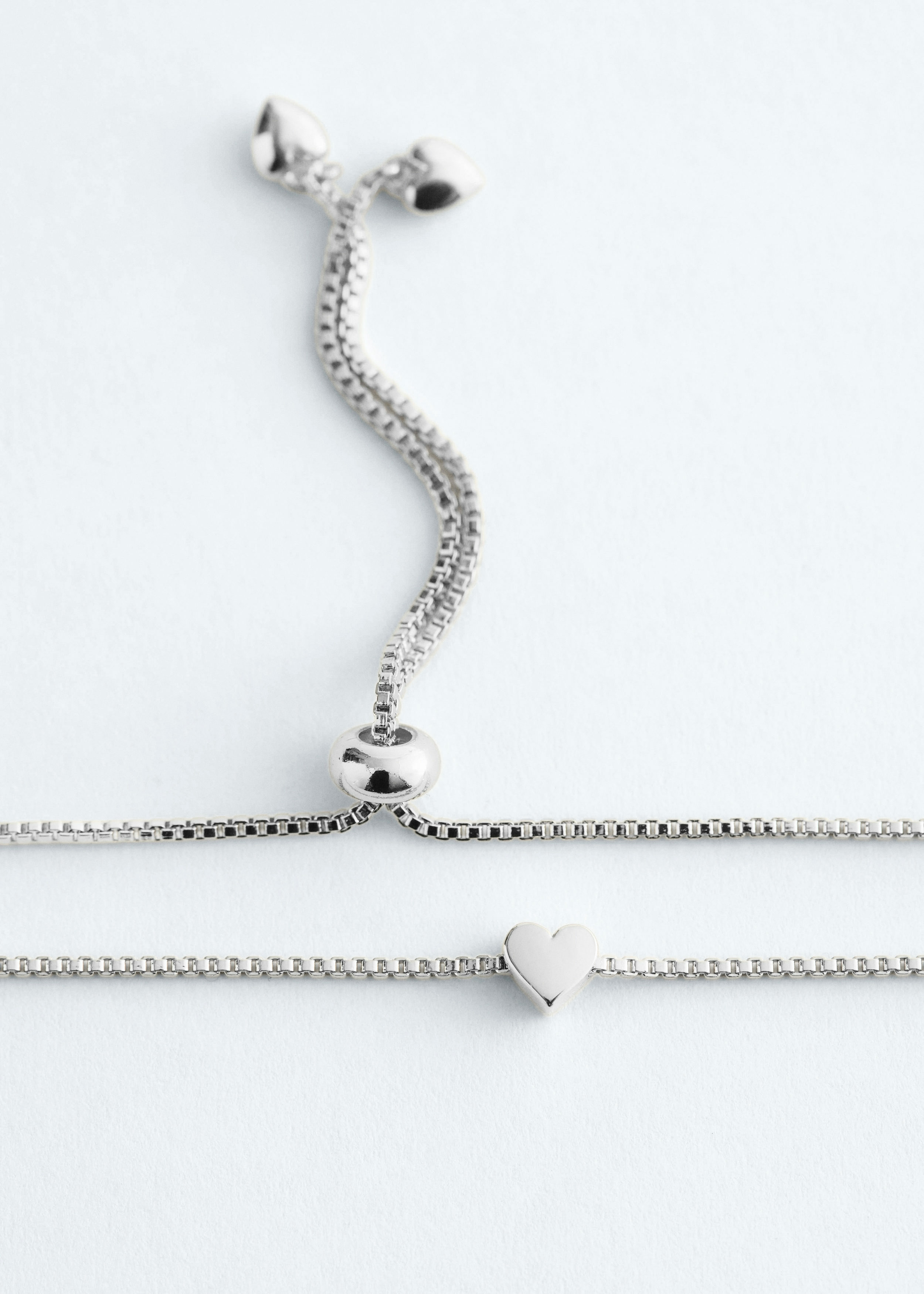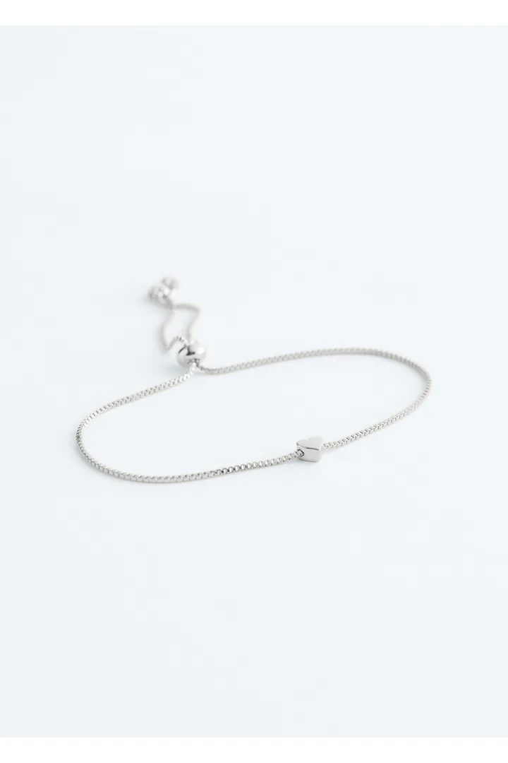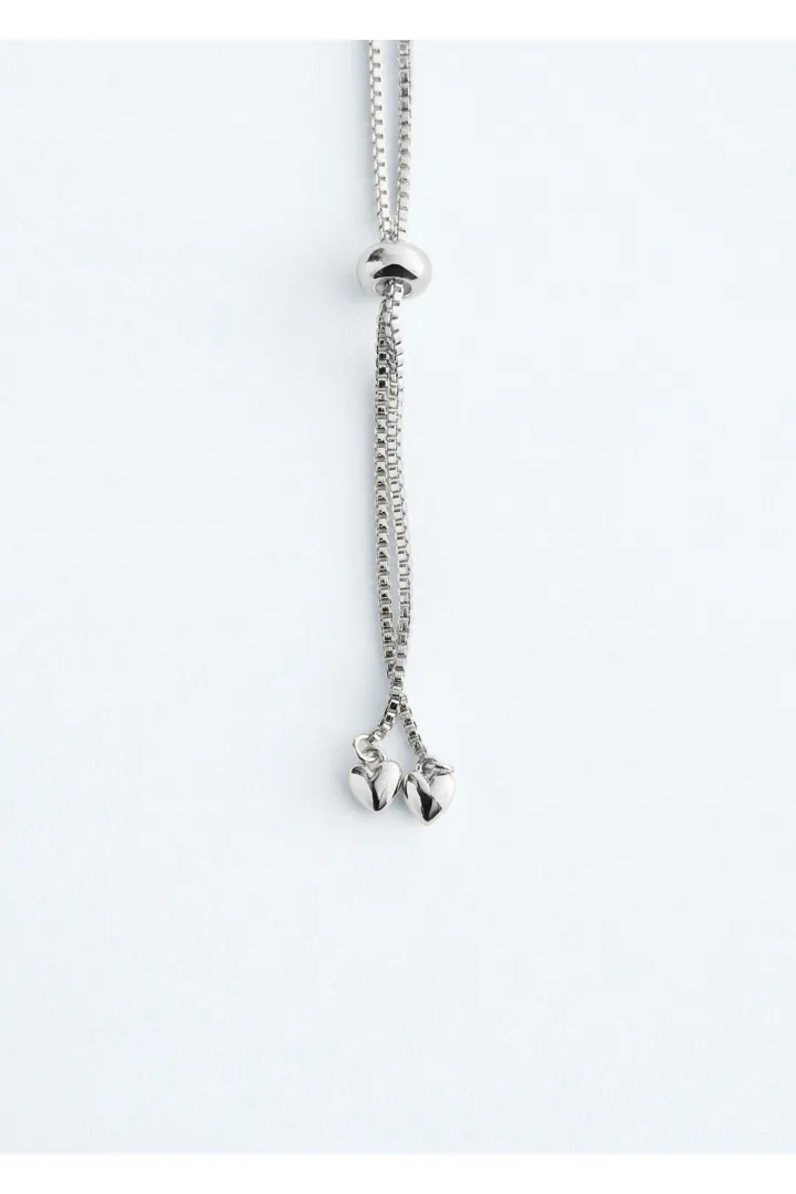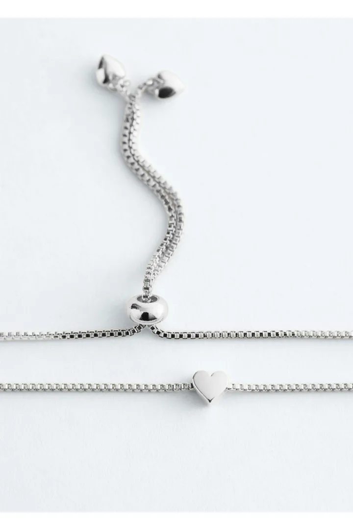 유광 브라스 소재로 제작된 브레이슬릿이에요. 매력적인 감성과 다양한 활용성을 동시에 갖추었답니다. 섬세한 박스 체인의 앞면과 양쪽 끝에는 하트 쉐입의 비즈가 장식되어 있어요. 조절형 슬라이더가 자리해 있으며, 다른 브레이슬릿과 레이어링하거나 단독으로 착용할 수 있답니다.