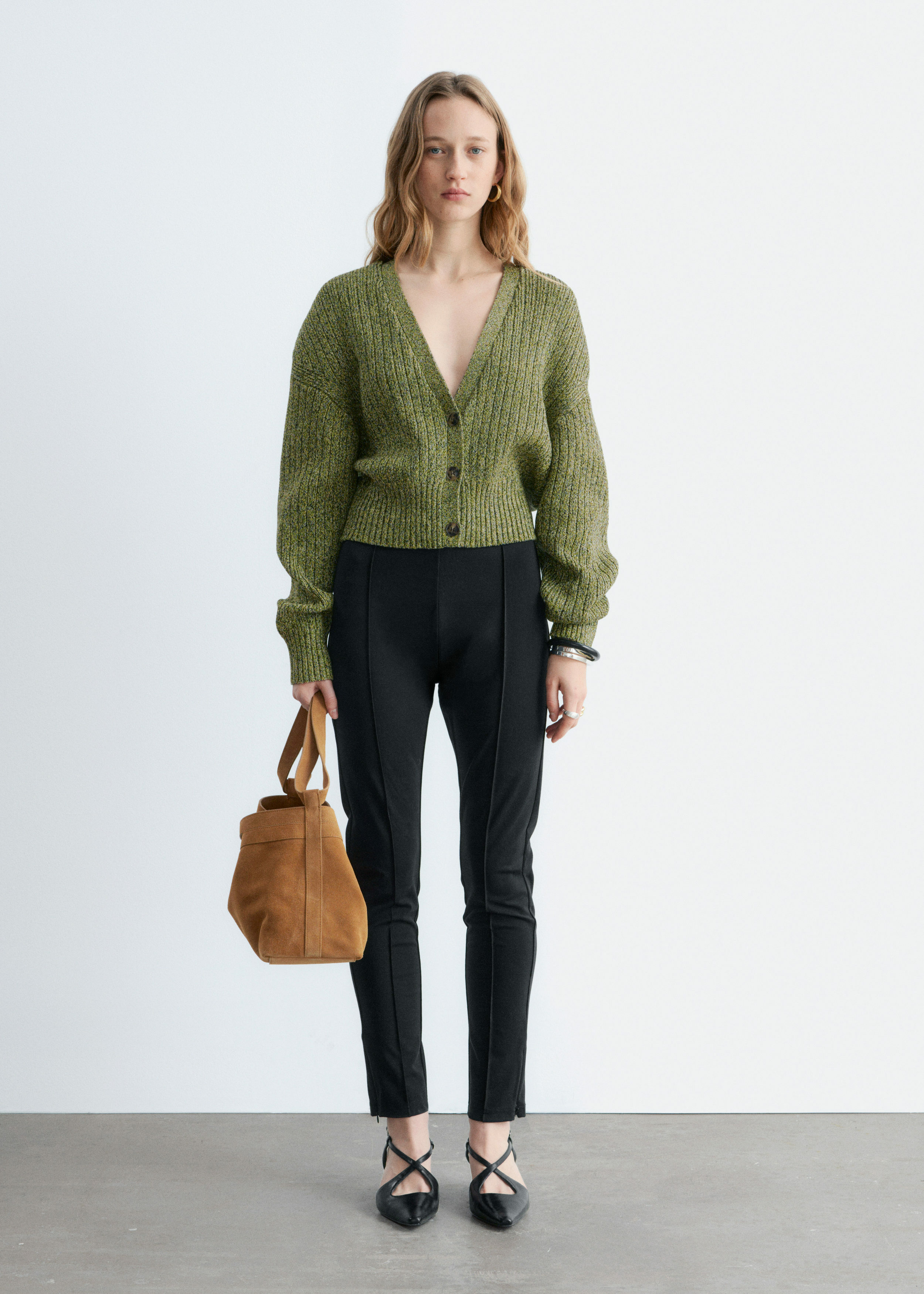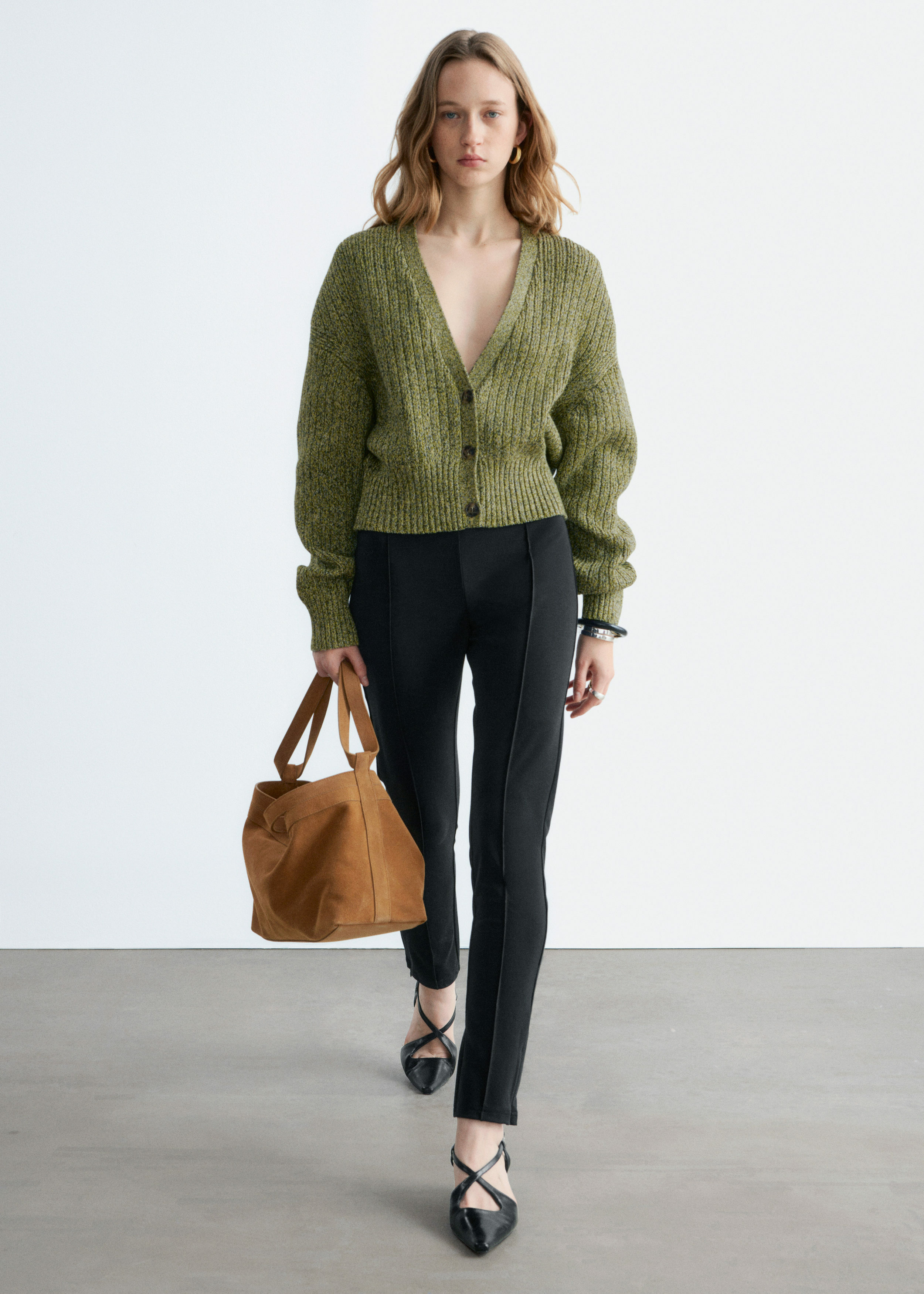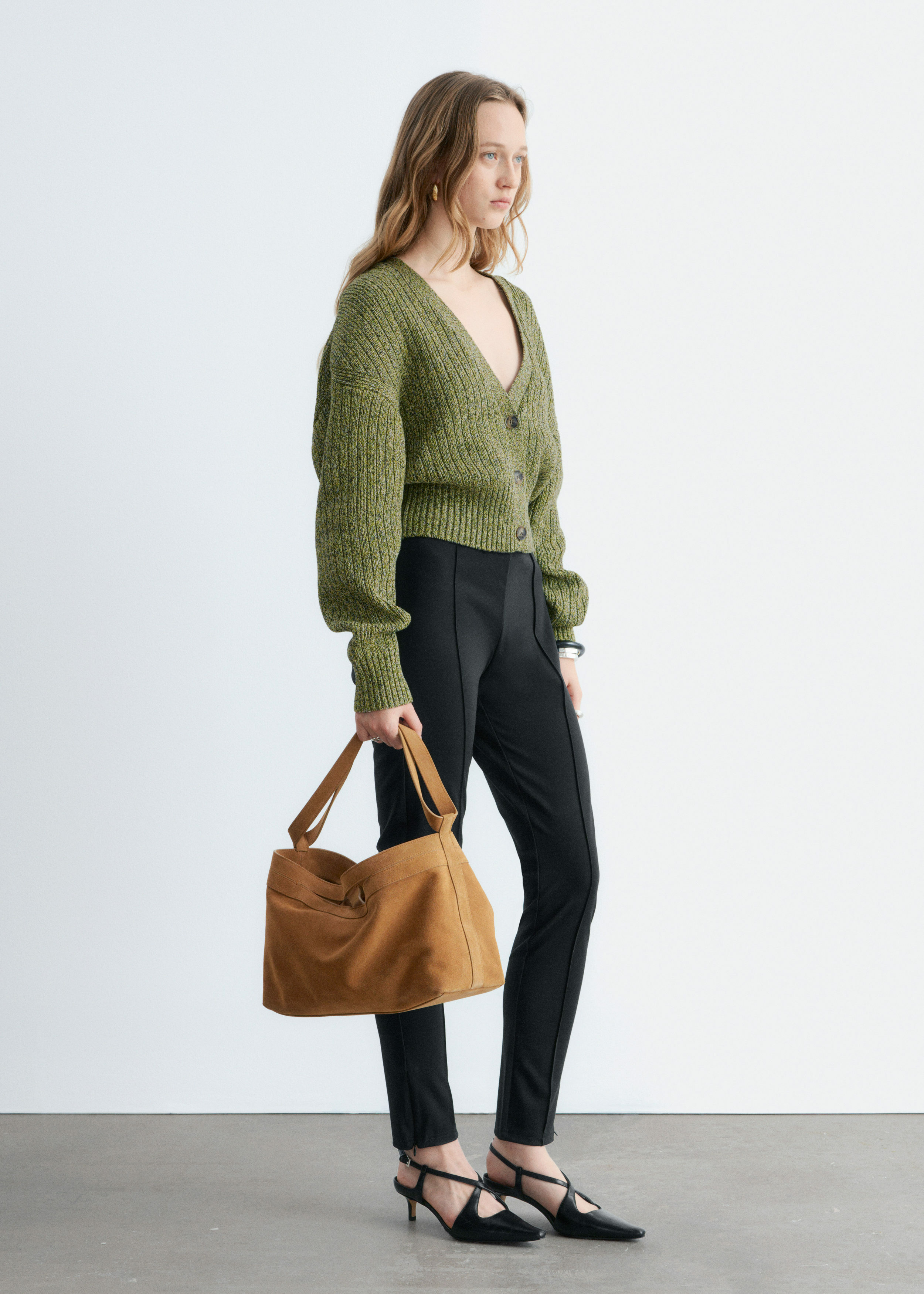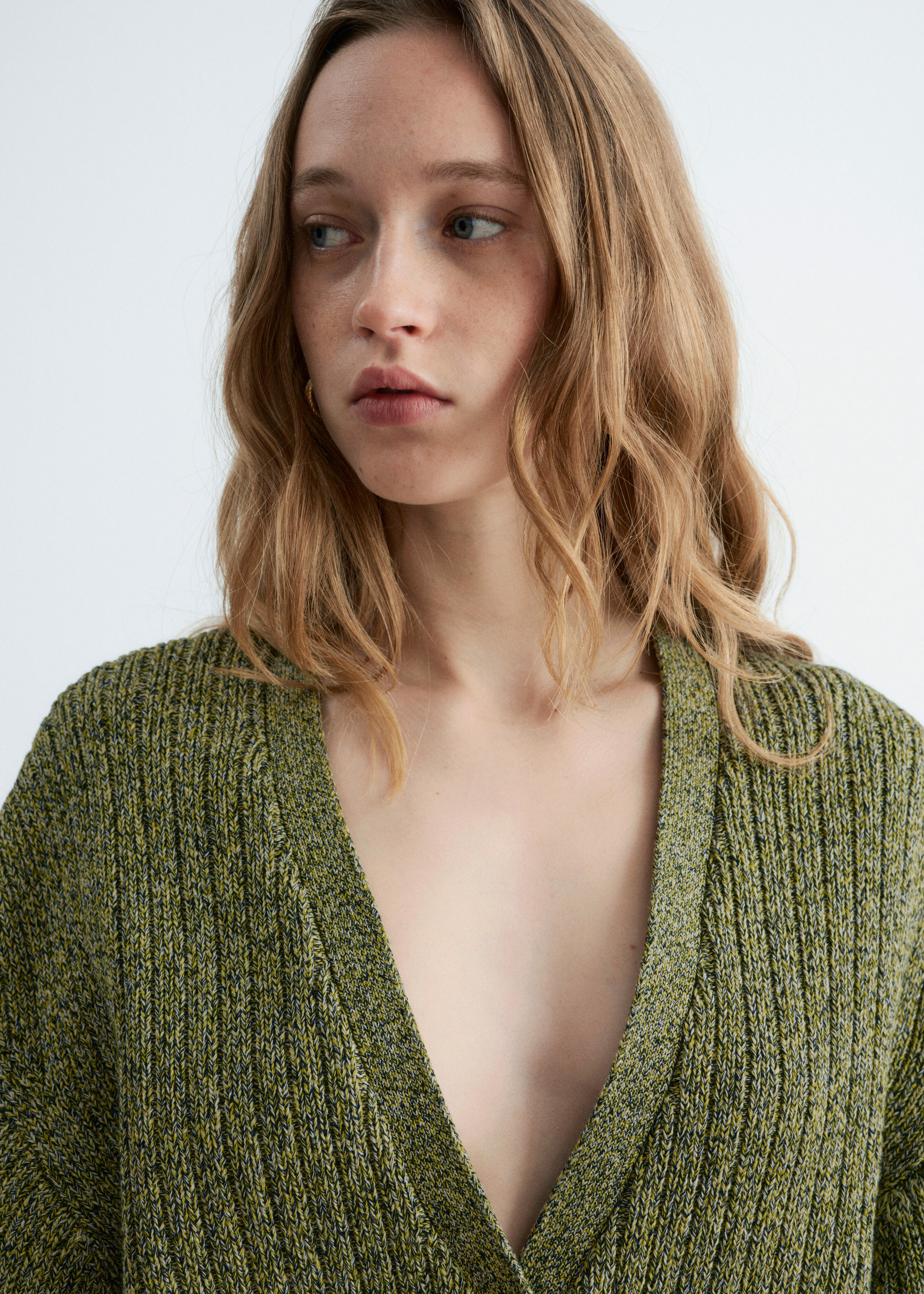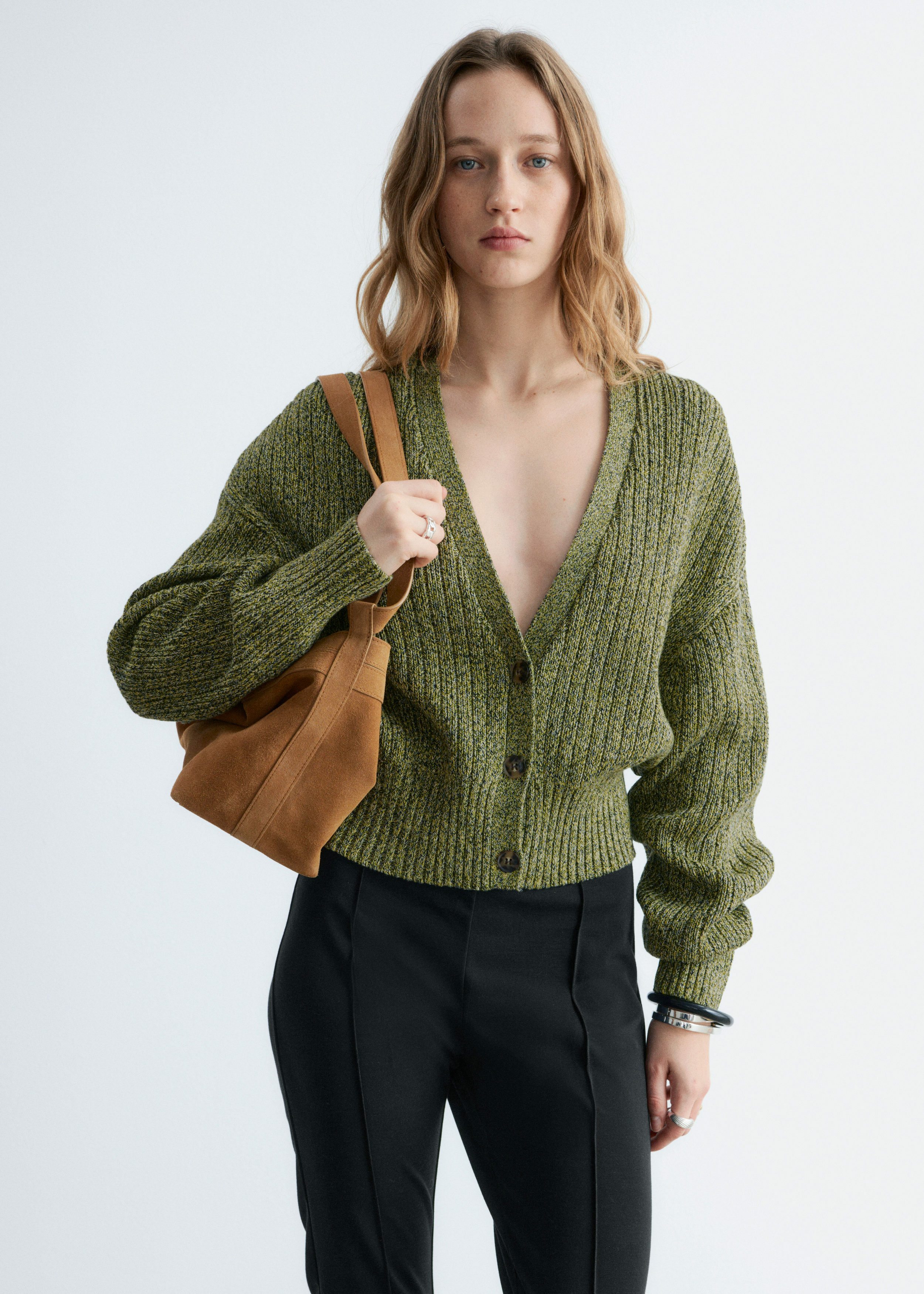 100% 코튼 소재의 립 니트 가디건이에요. 여유로운 크롭 실루엣과 강조된 허리라인이 특징이랍니다. 드롭 숄더와 살짝 둥글린 V 넥으로 부드럽고 느긋한 무드의 쉐입을 연출해 주어요. 티셔츠나 탱크 탑 위에 레이어링해 보세요.