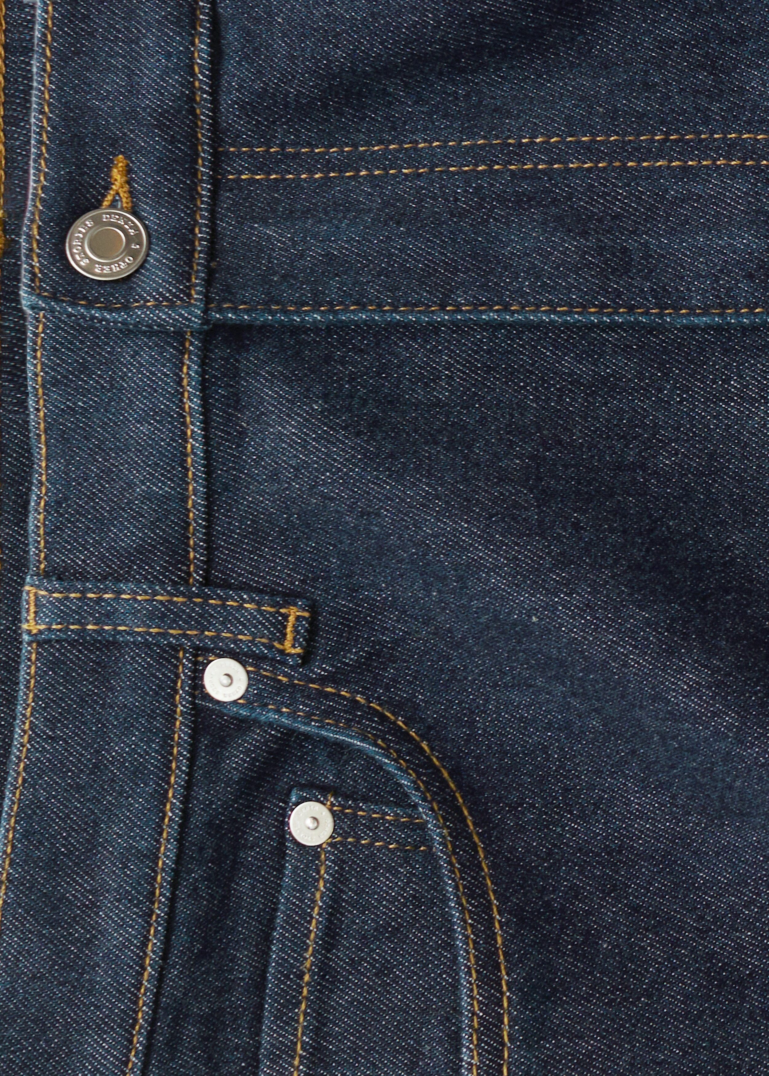하이 웨이스트의 데님 진이에요. 너비감 있는 롱 레그와 클래식한 5 포켓 디자인이 특징이랍니다.