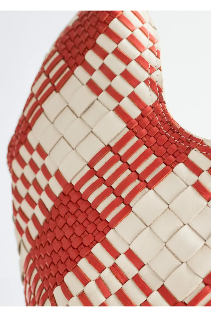 브레이드 가죽으로 아름답게 제작된 가방이에요. 루즈한 쉐입과 곡선진 상단 입구, 그리고 편안한 그립감을 위한 가죽 바인딩이 특징이에요. 가죽 마감 및 코튼 안감이 자리해 있으며, 포켓이 없는 깔끔한 디자인으로 일상 필수품을 수납하기에 좋답니다.