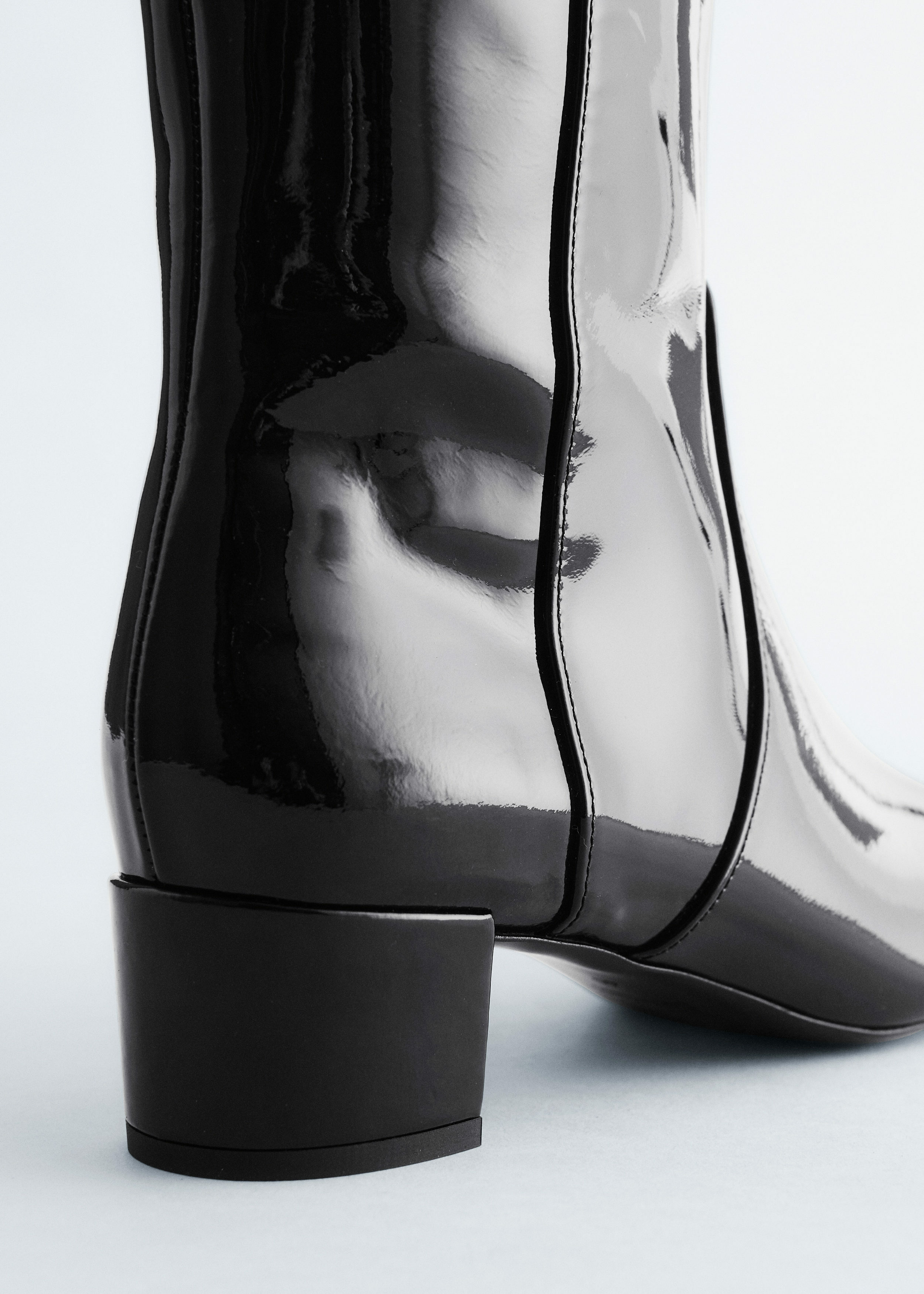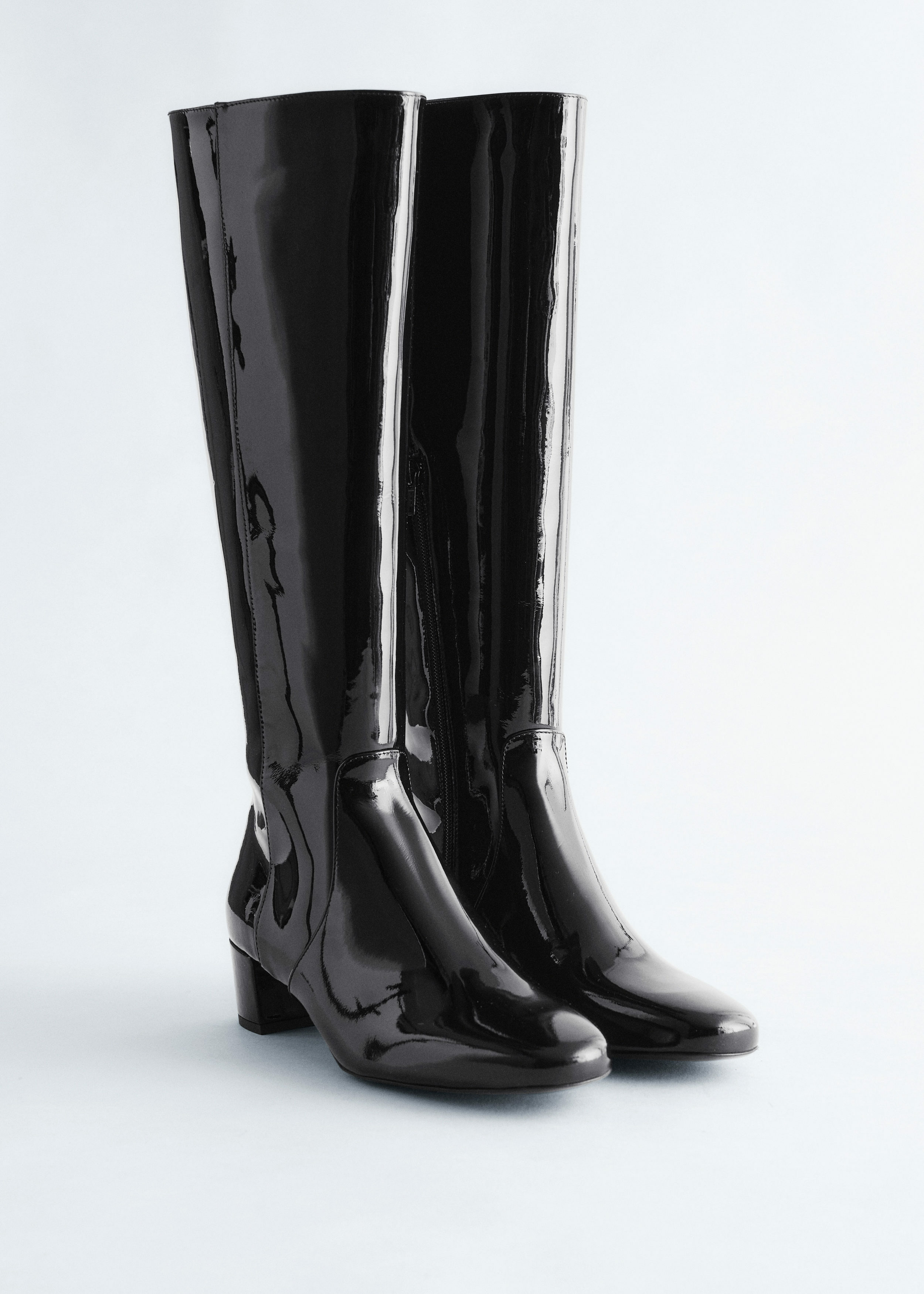 포르투갈에서 부드러운 가죽으로 제작된 니 부츠예요. 핏 되는 섀프트, 아몬드 쉐입의 앞코, 블록 힐이 특징이랍니다. 측면부 지퍼로 신고 벗기 더없이 편안해요.
