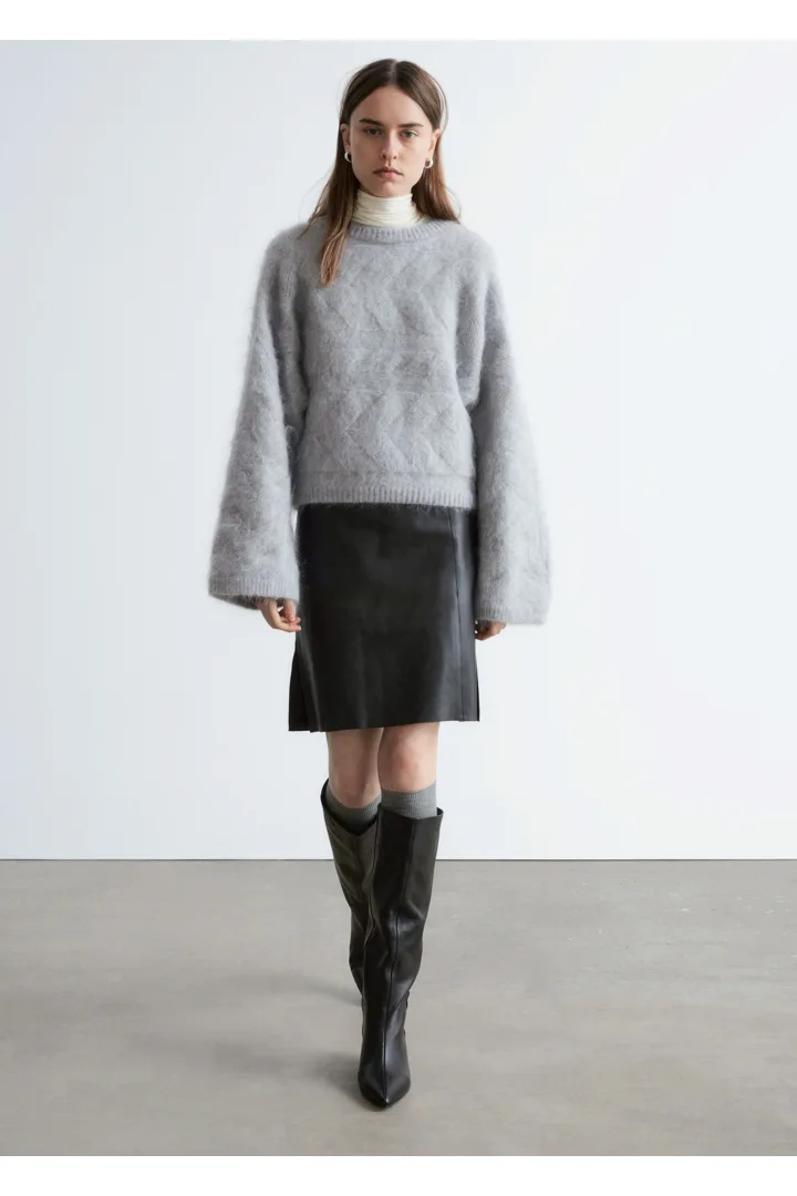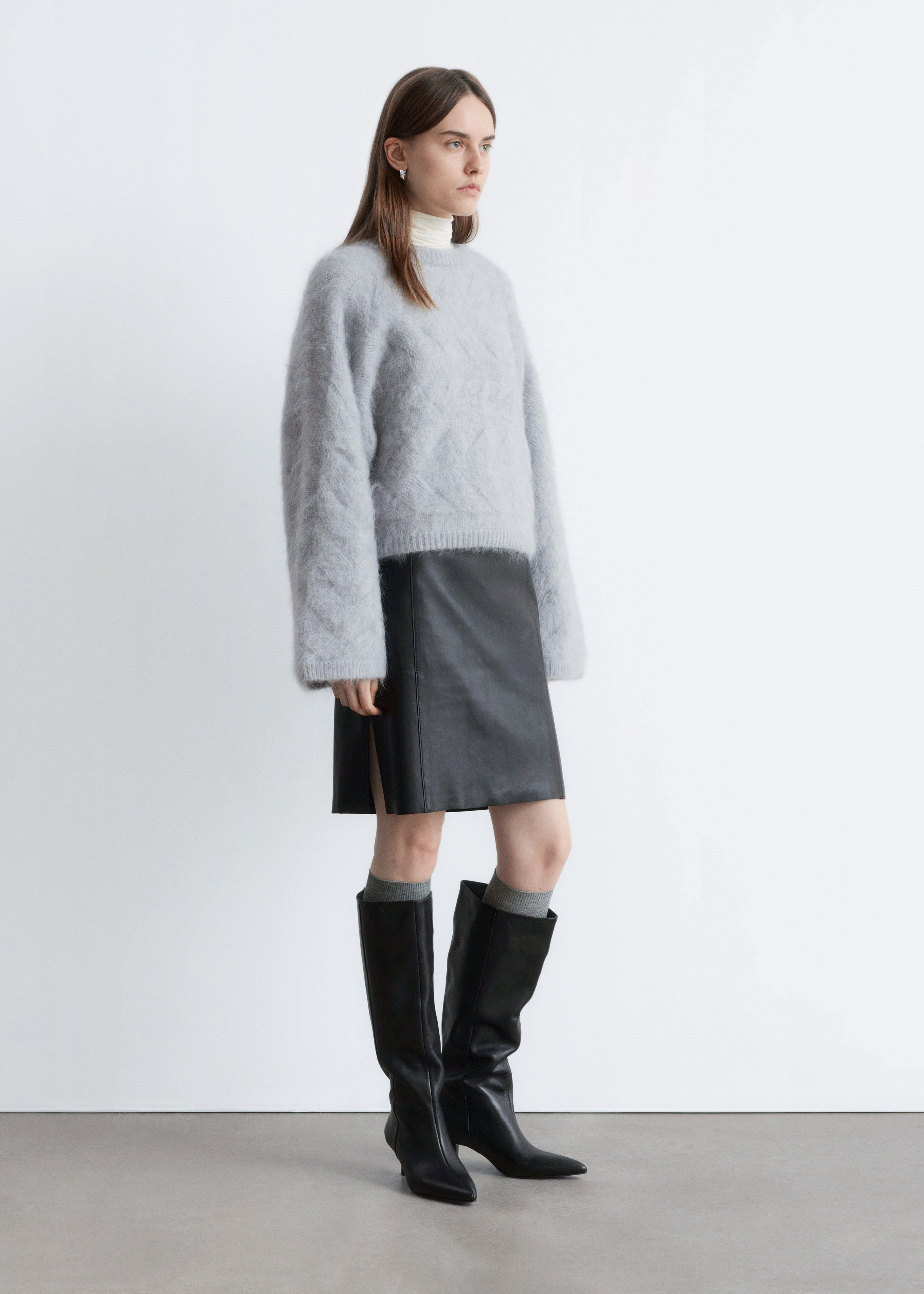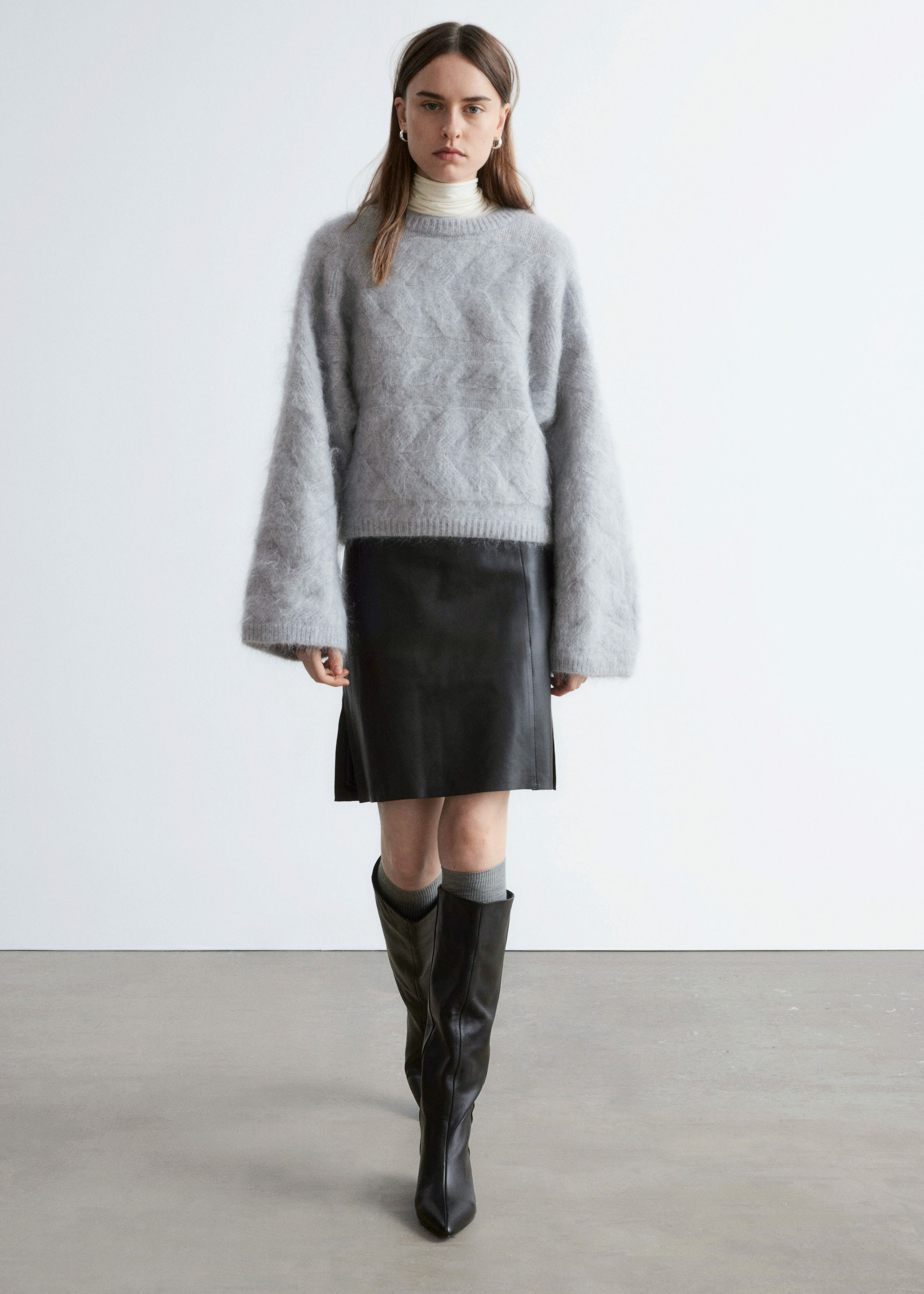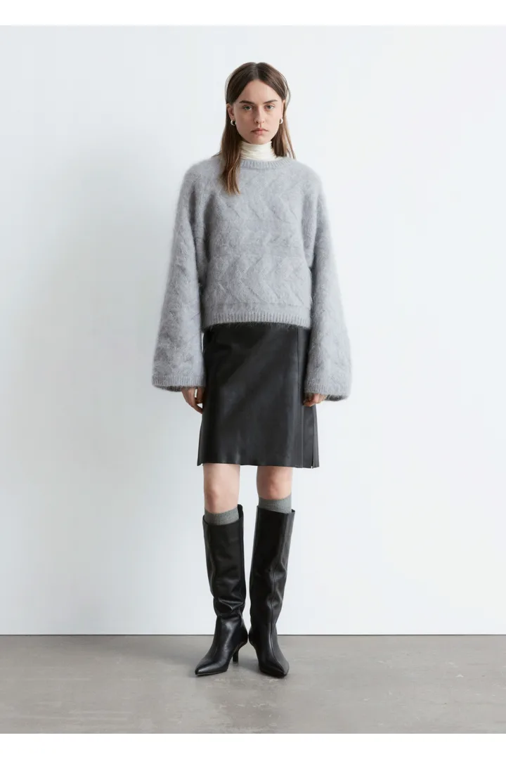 모헤어 블렌드 케이블 니트 스웨터