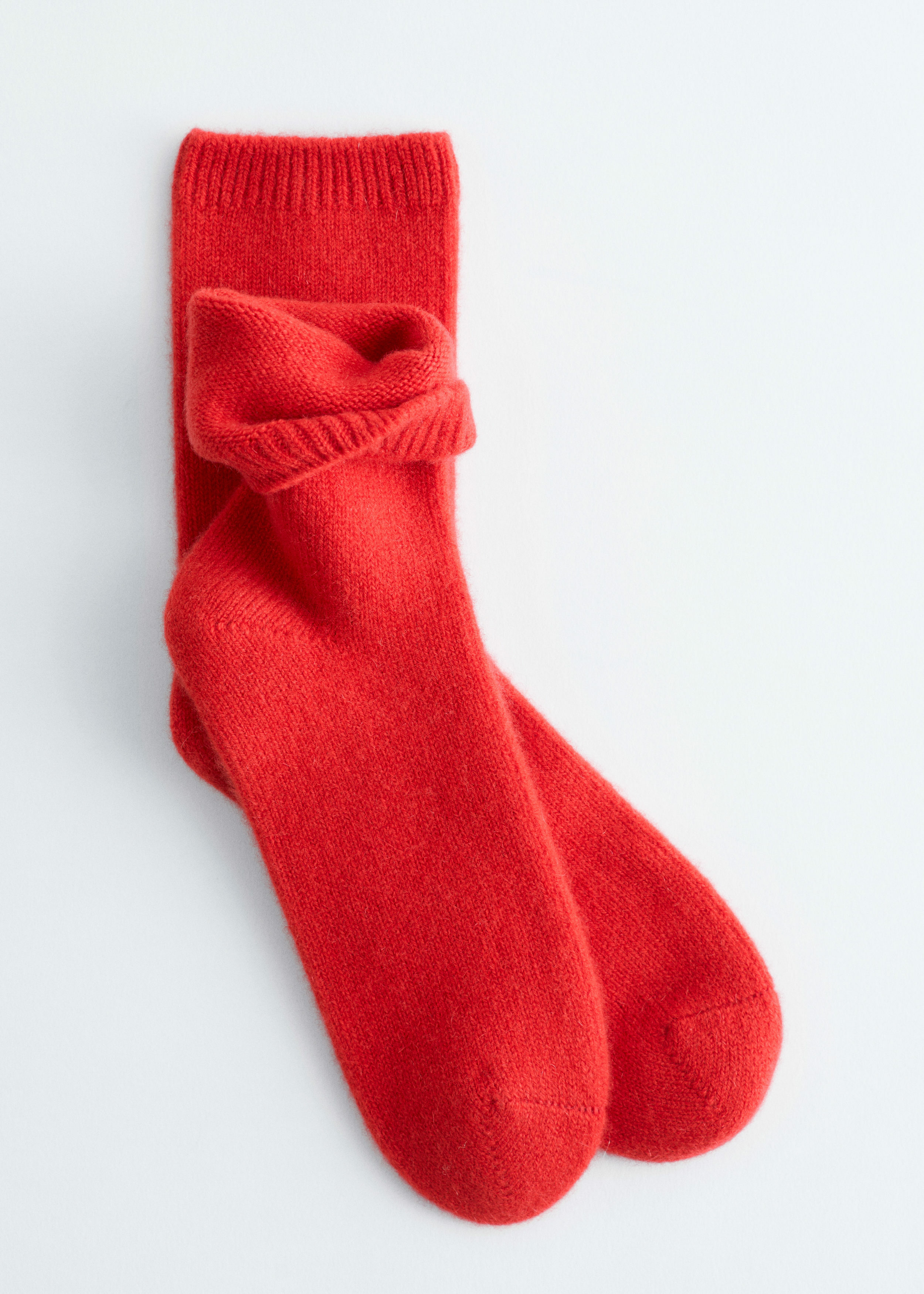 캐시미어 소재의 앵클 삭스예요. 립 커프스가 자리해 있어요.