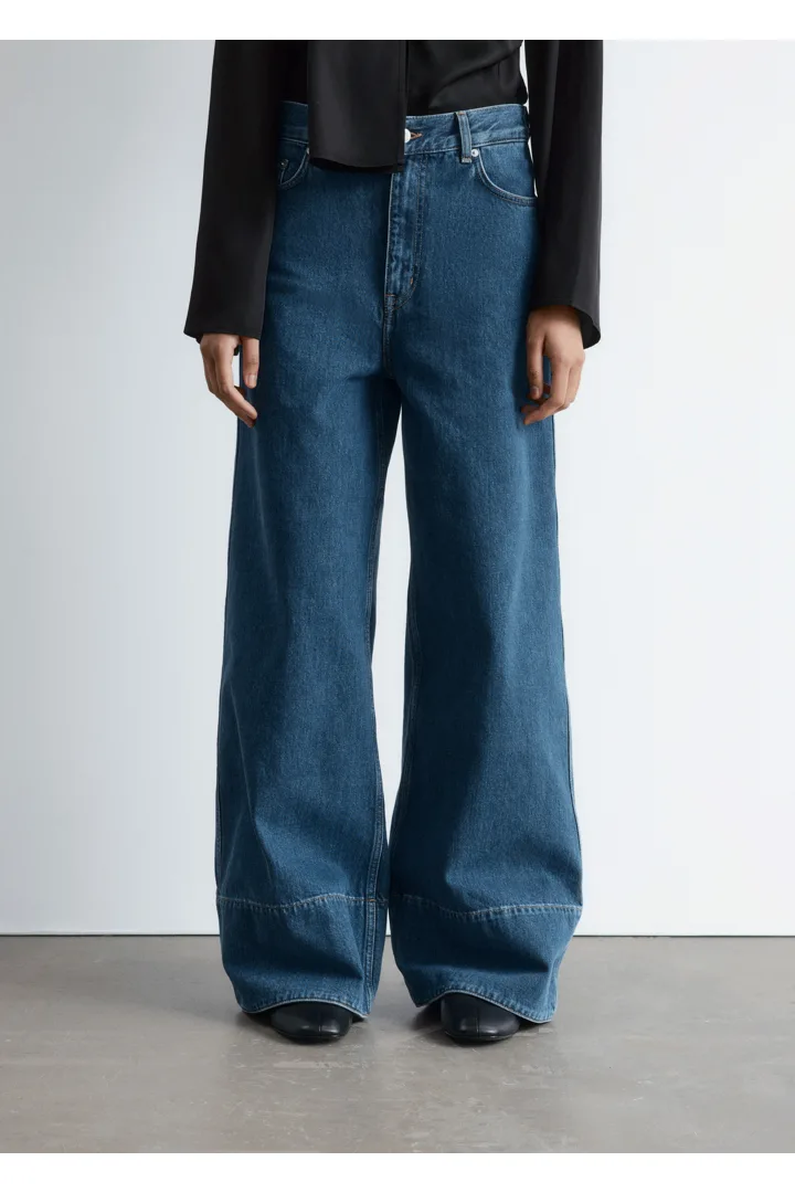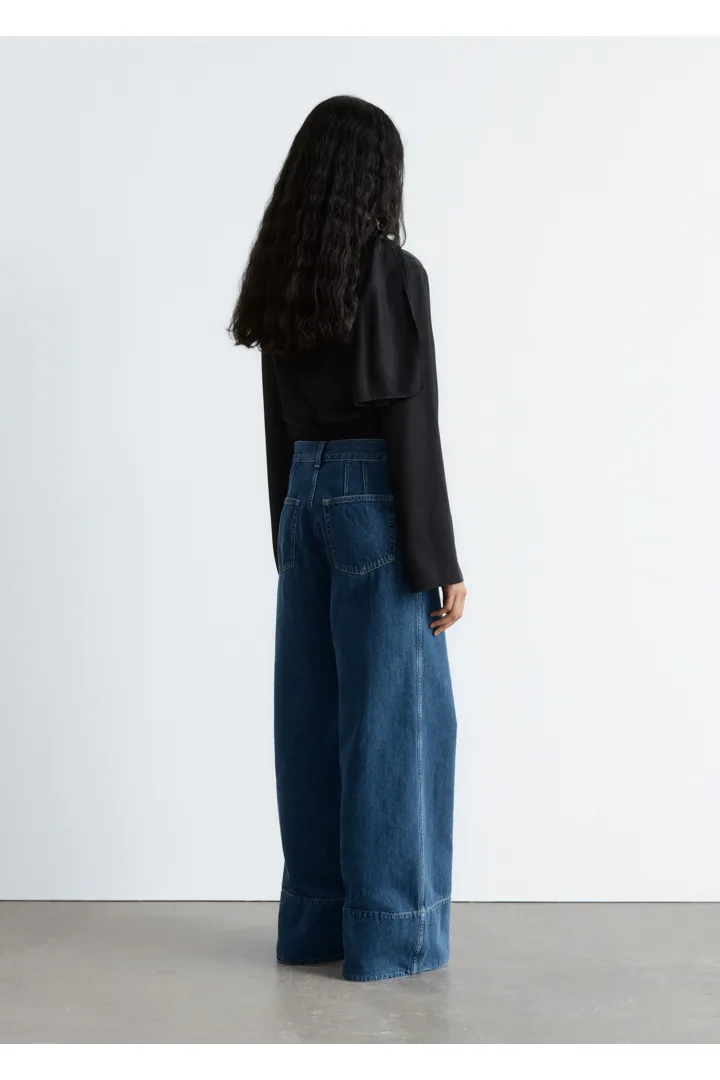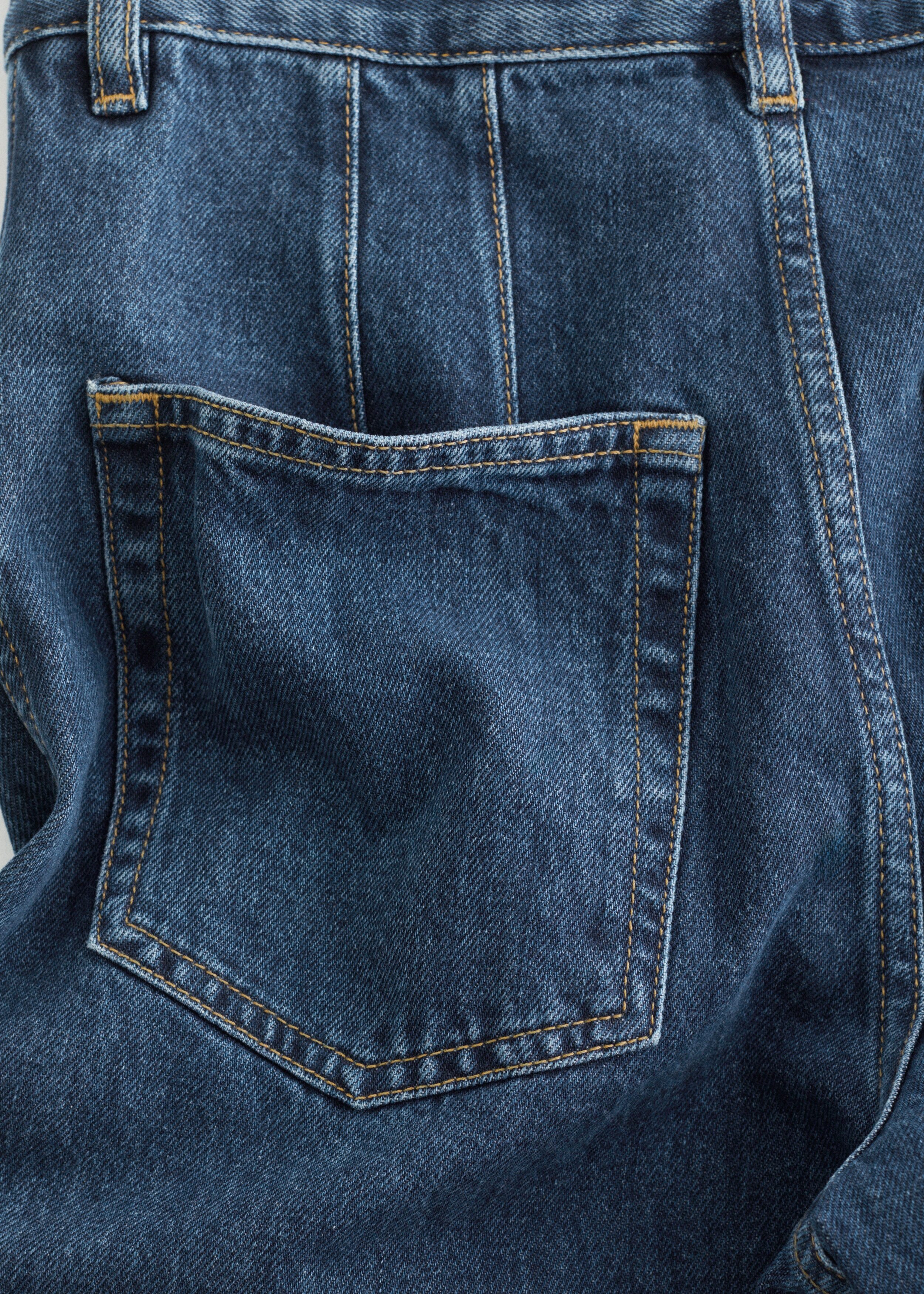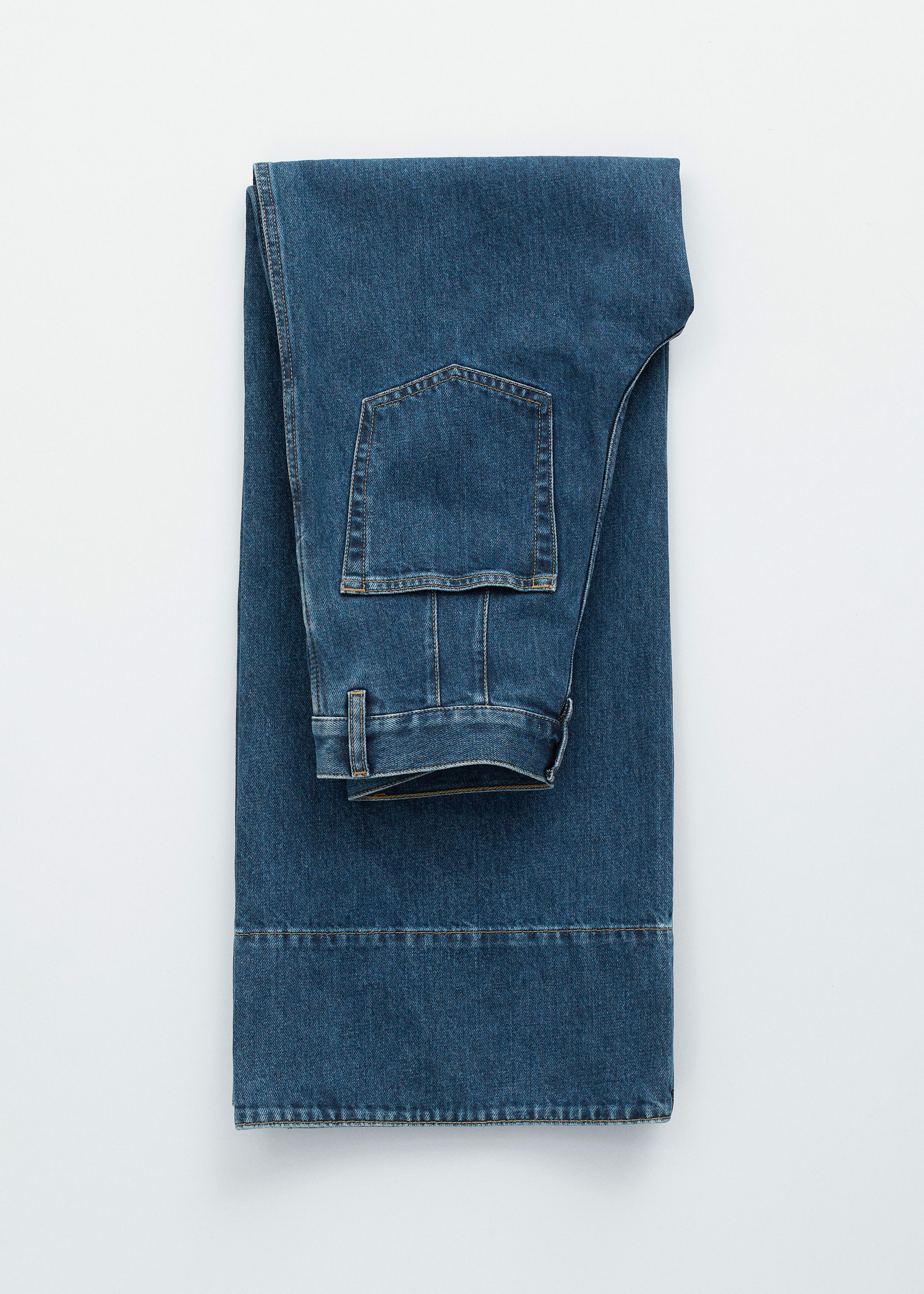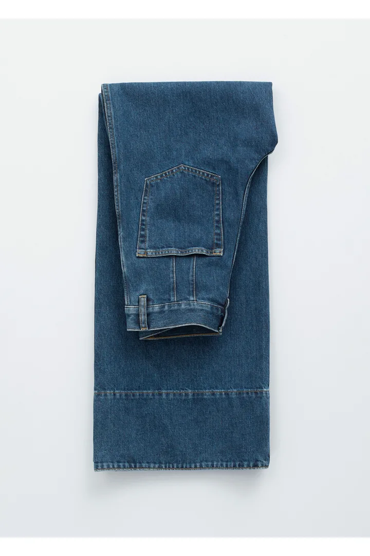 하이 웨이스트, 와이드 레그, 클래식한 5 포켓 마감이 특징인 데님 진이에요. 힘 있는 소재감으로 표현된 70년대 무드의 스타일이 돋보이며, 탑스티치가 장식된 와이드 헴라인이 멋스러움을 더한답니다.