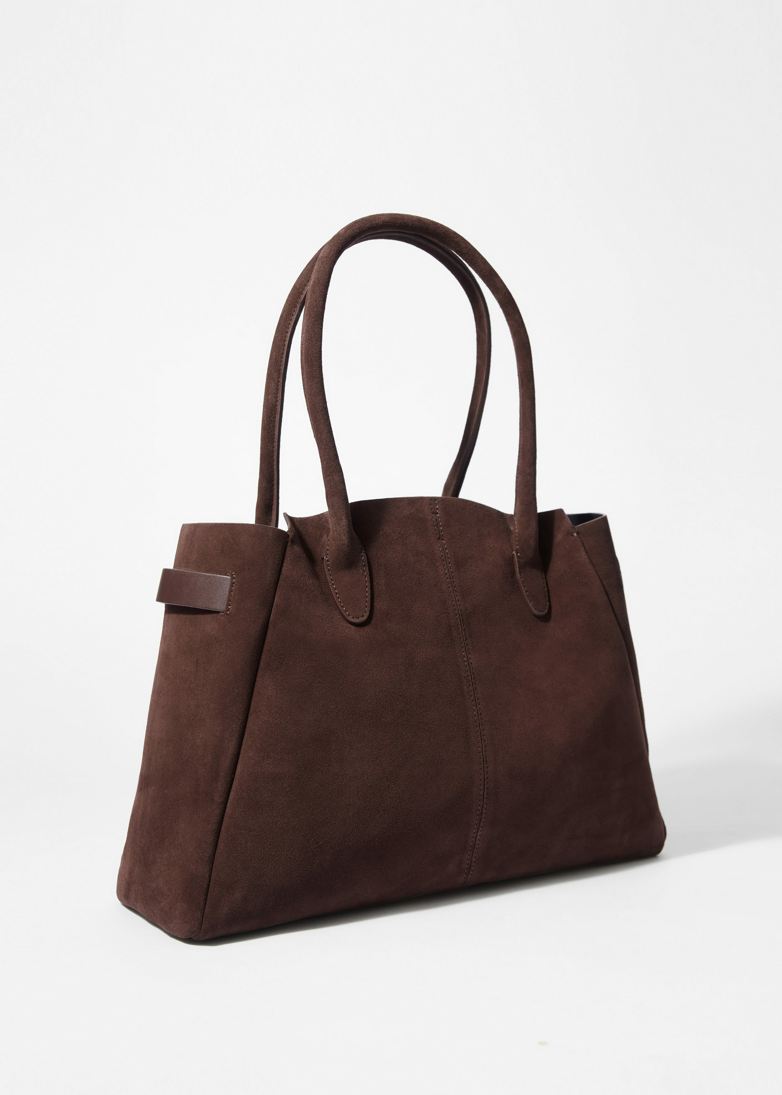 활용성이 뛰어난 넉넉한 토트 백이에요. 서로 다른 길이감의 핸들 2쌍으로 두 가지 스타일로 연출이 가능하답니다. 섬세한 타이로 입구를 안전하게 여밀 수 있으며, 작은 소지품 수납을 위한 이너 포켓이 자리해 있어요.