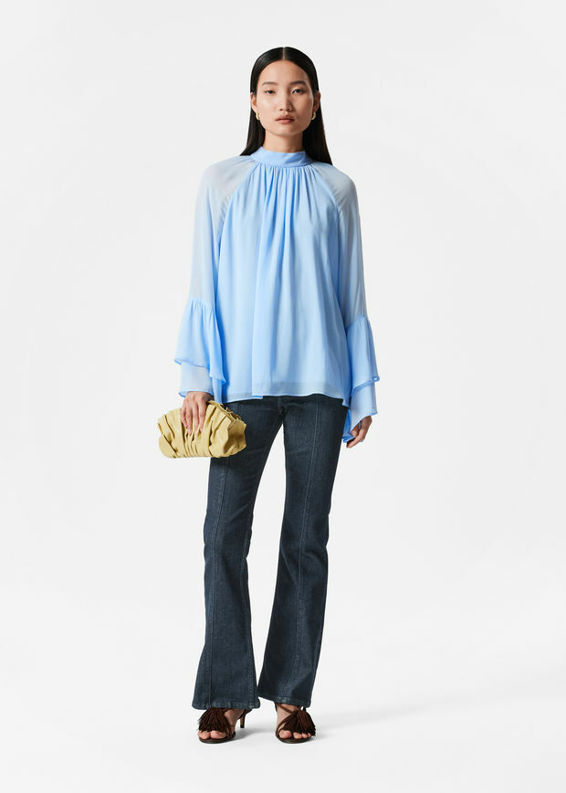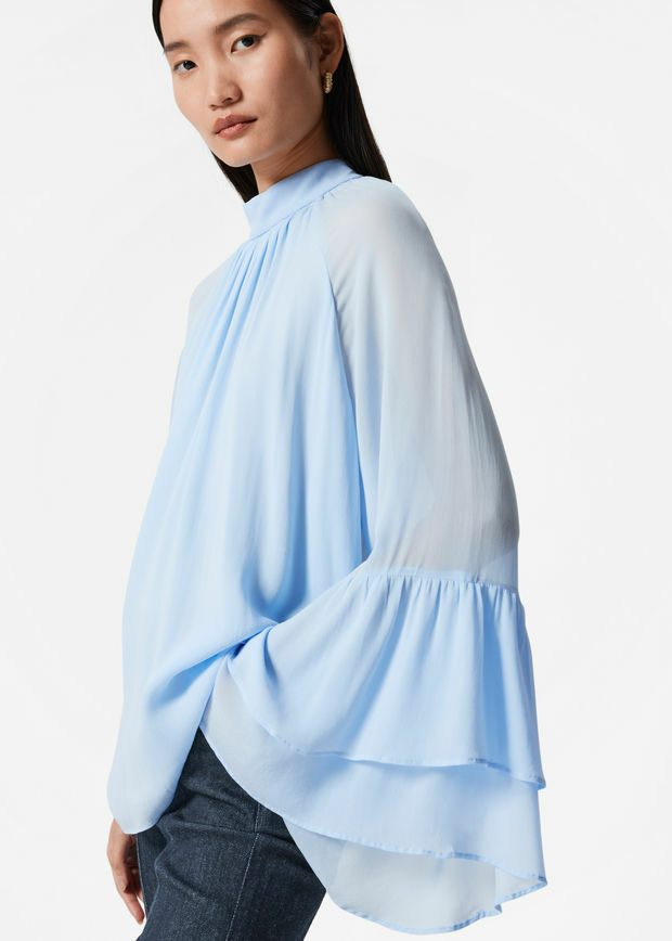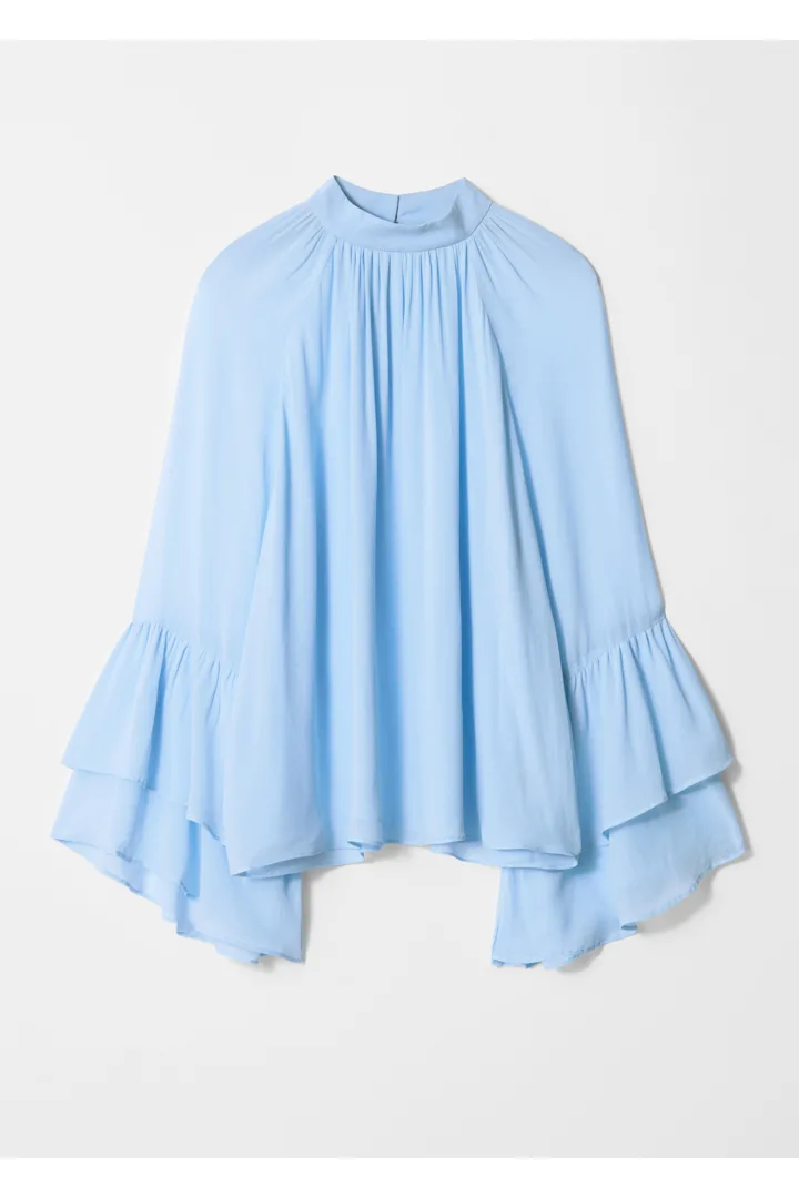 플라운스 스탠드 카라 블라우스