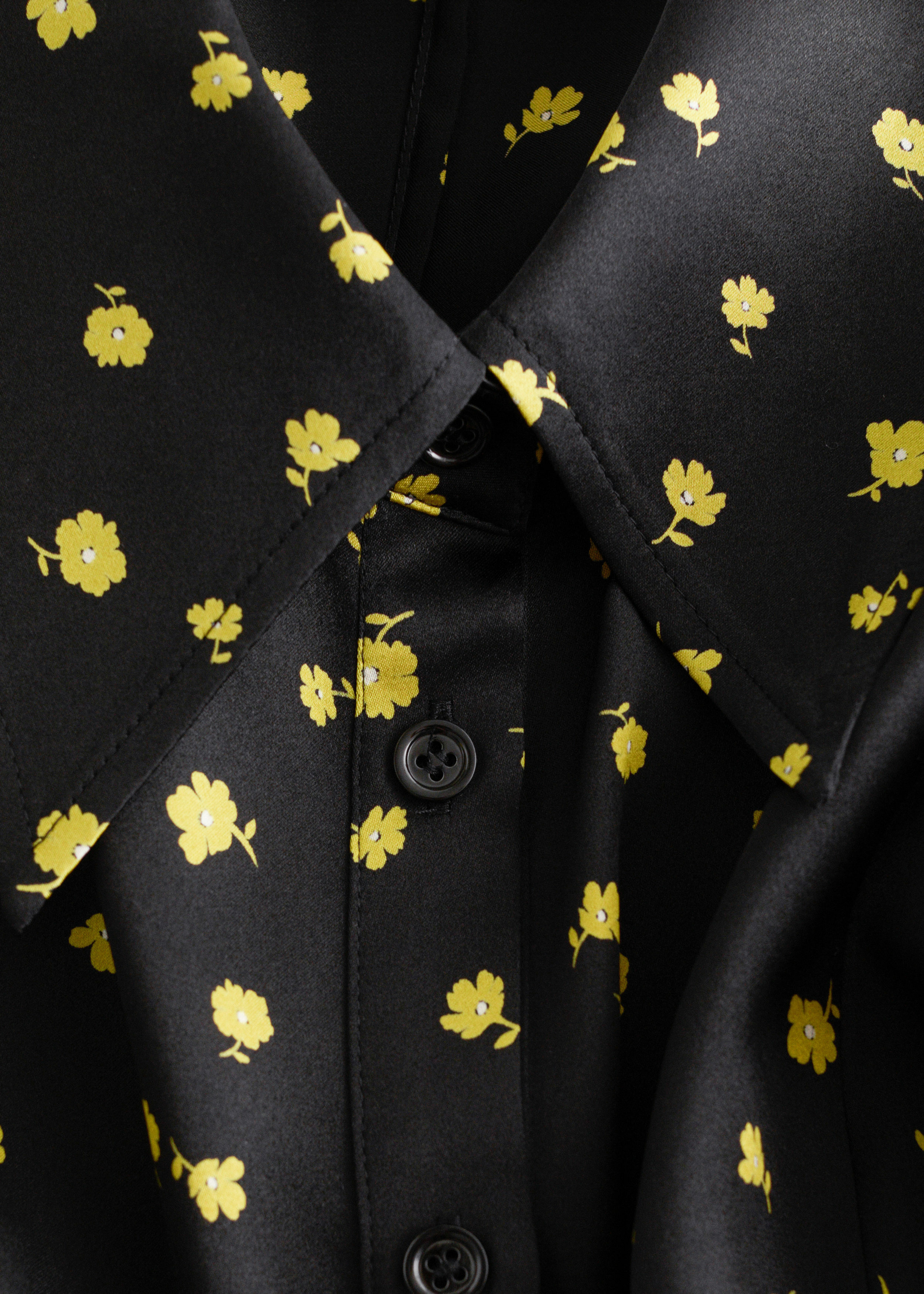 롱 슬리브의 실크 셔츠예요. 포인트 턴 다운 카라, 버튼 커프스, 다트가 자리한 테이퍼드 허리라인, 앞면의 플래킷과 단추가 특징이에요.