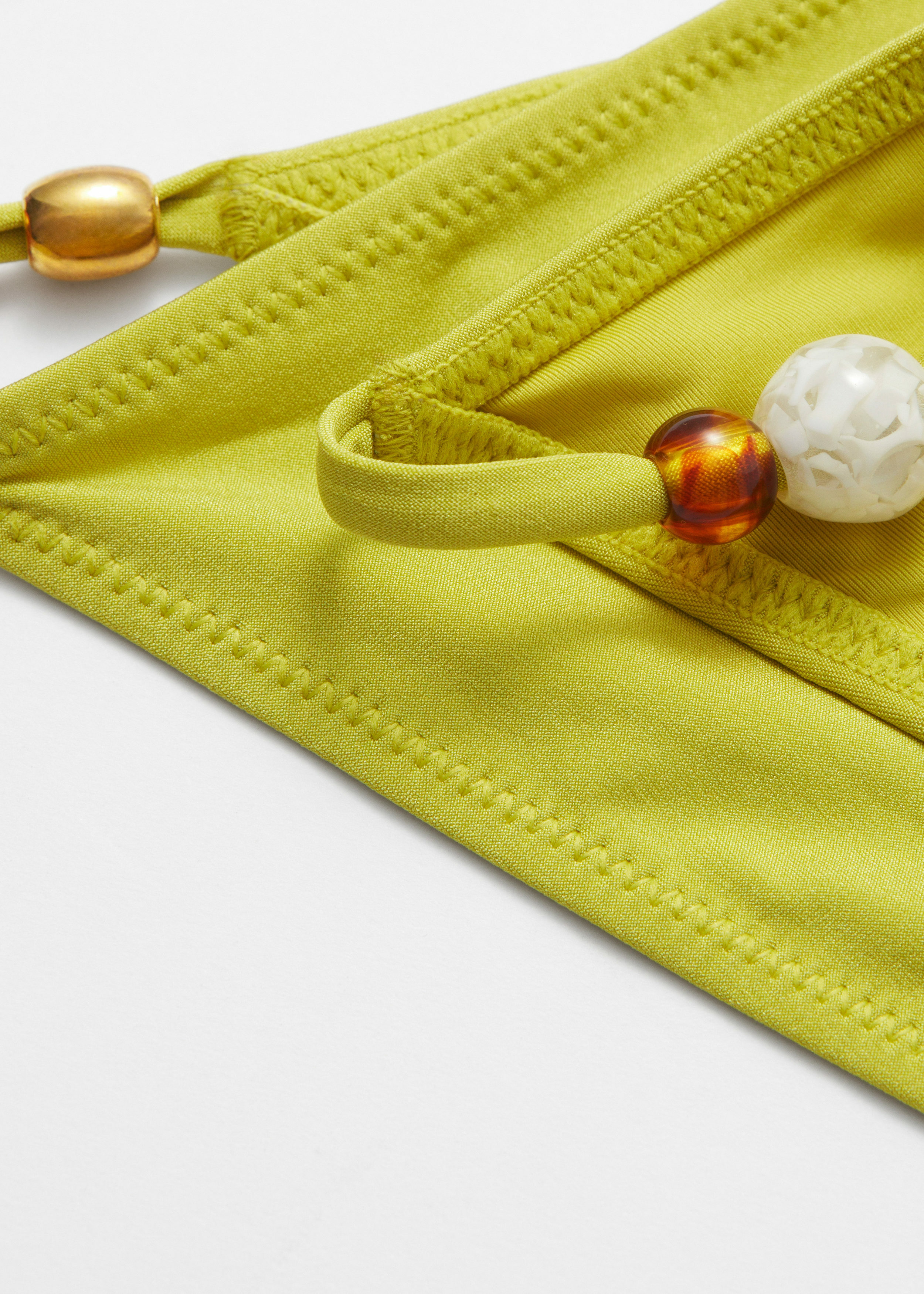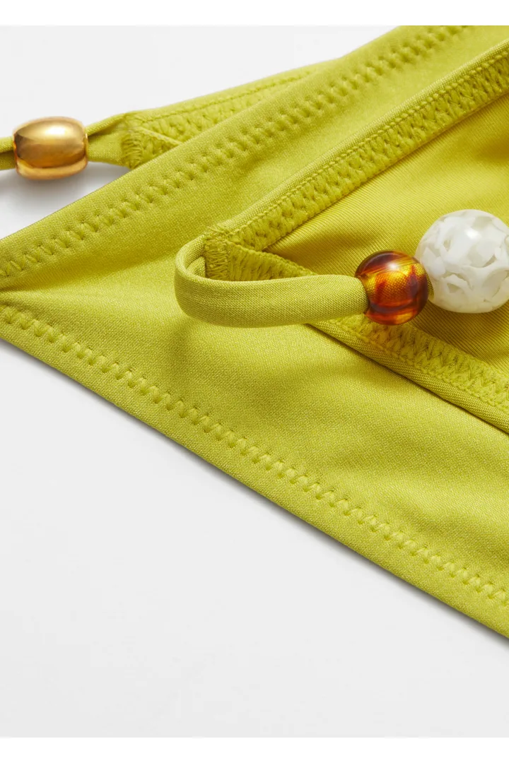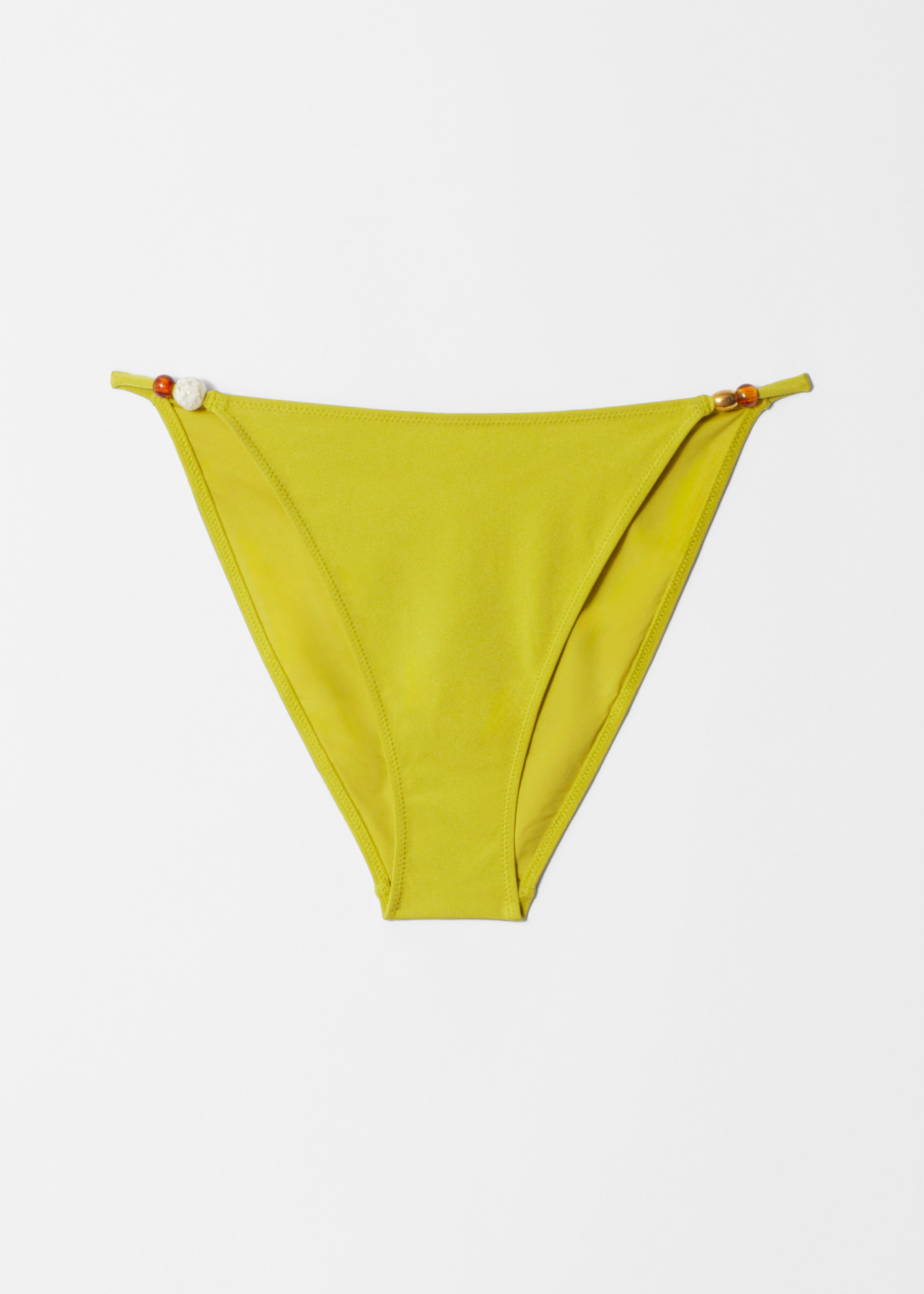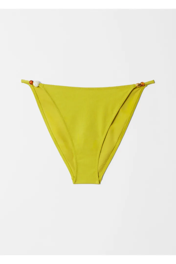 신축성 좋은 저지 소재로 탄생한 비키니 브리프예요. 레귤러 웨이스트, 그리고 양쪽 힙의 장식 비즈가 특징이에요.