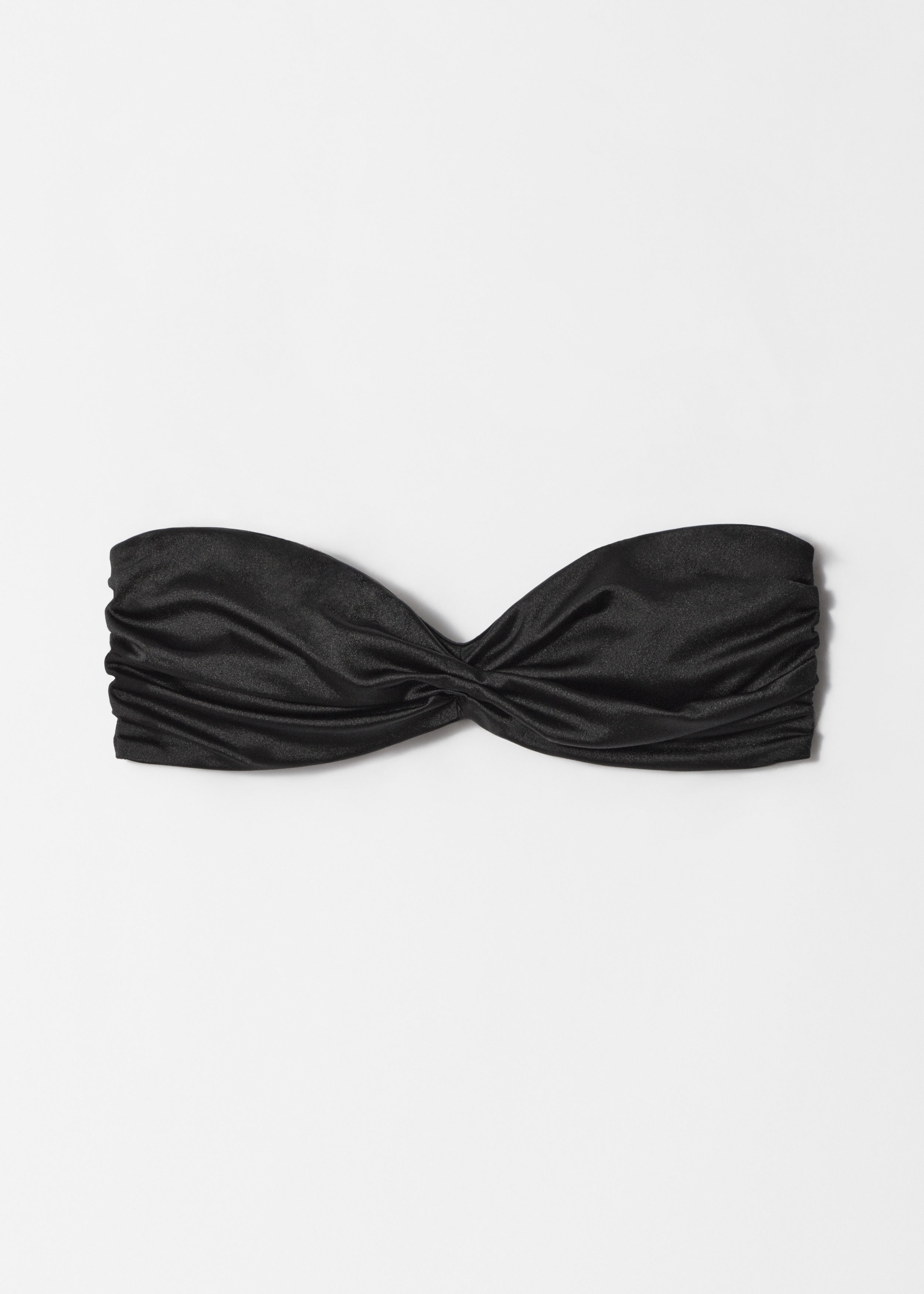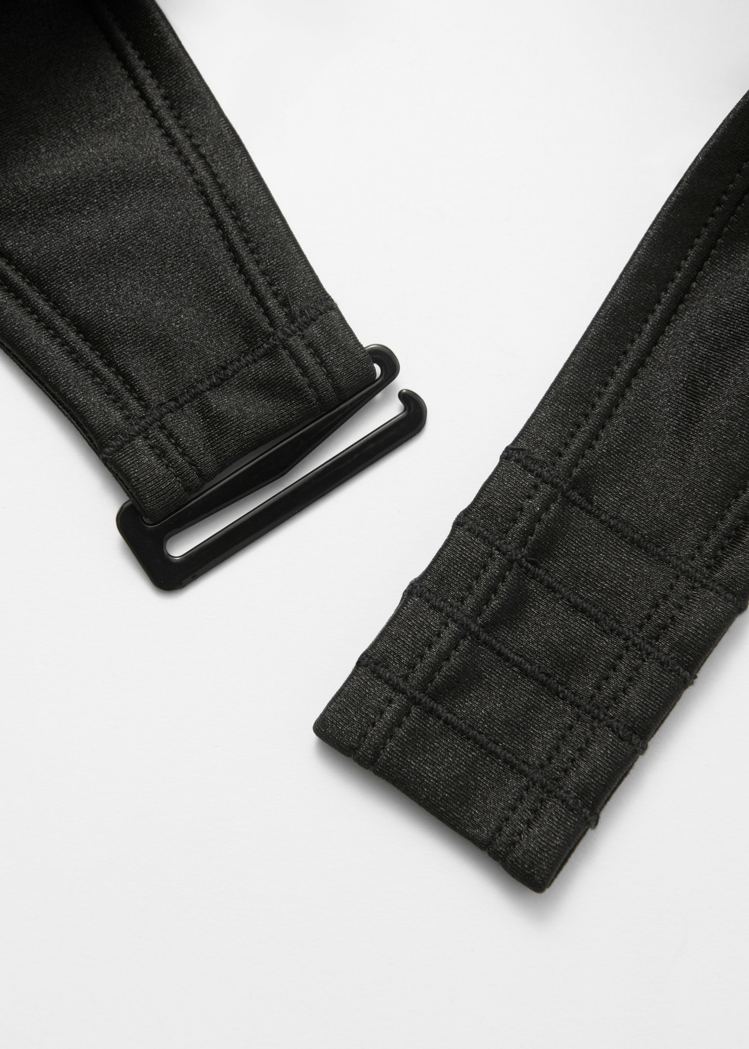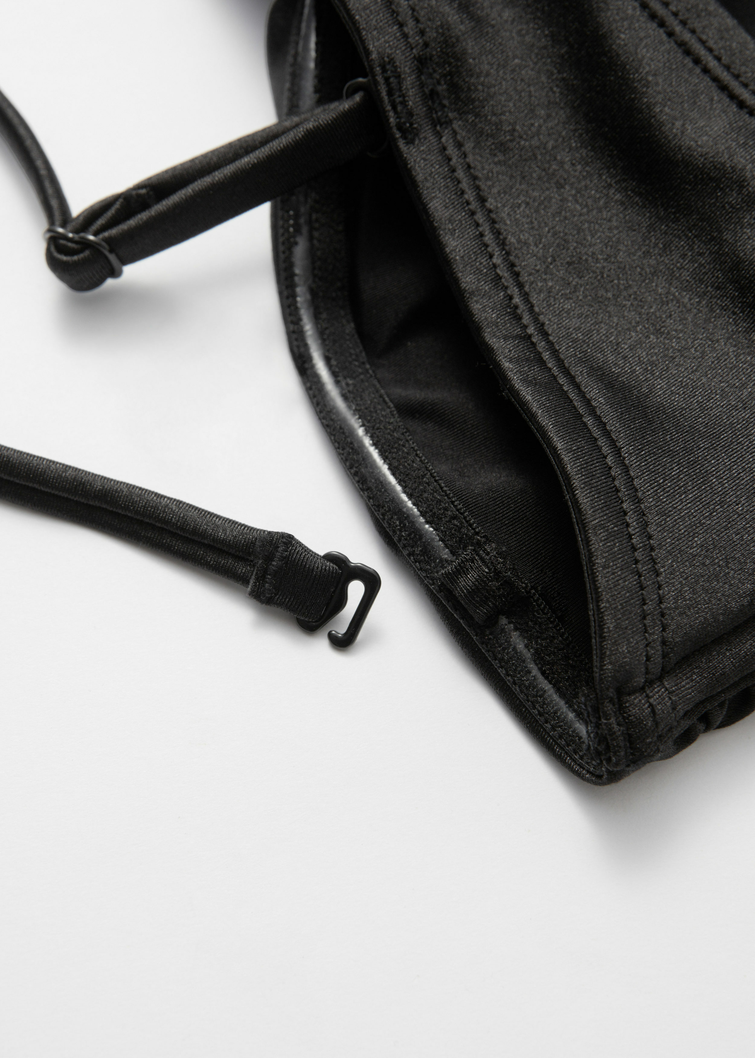 광택감이 도는 트리코트 소재로 탄생한 비키니 탑이에요. 장식 주름이 돋보이며, 가벼운 패드와 뒷면의 조절형 후크 클로저가 자리해 있어요. 조절 & 탈착형 스트랩을 제거해 방도 룩을 연출해도 멋스럽답니다.