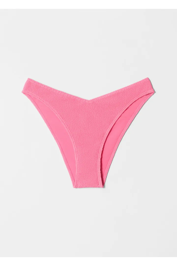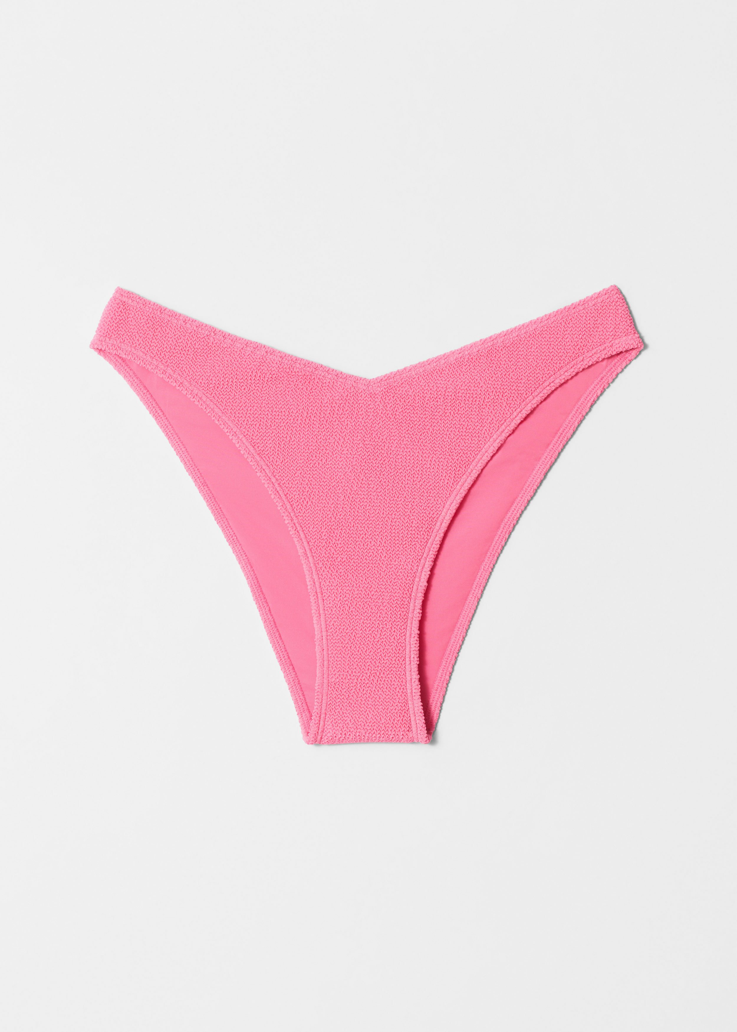 로우 웨이스트의 비키니 브리프예요. 텍스처 마감이 시선을 사로잡는답니다.