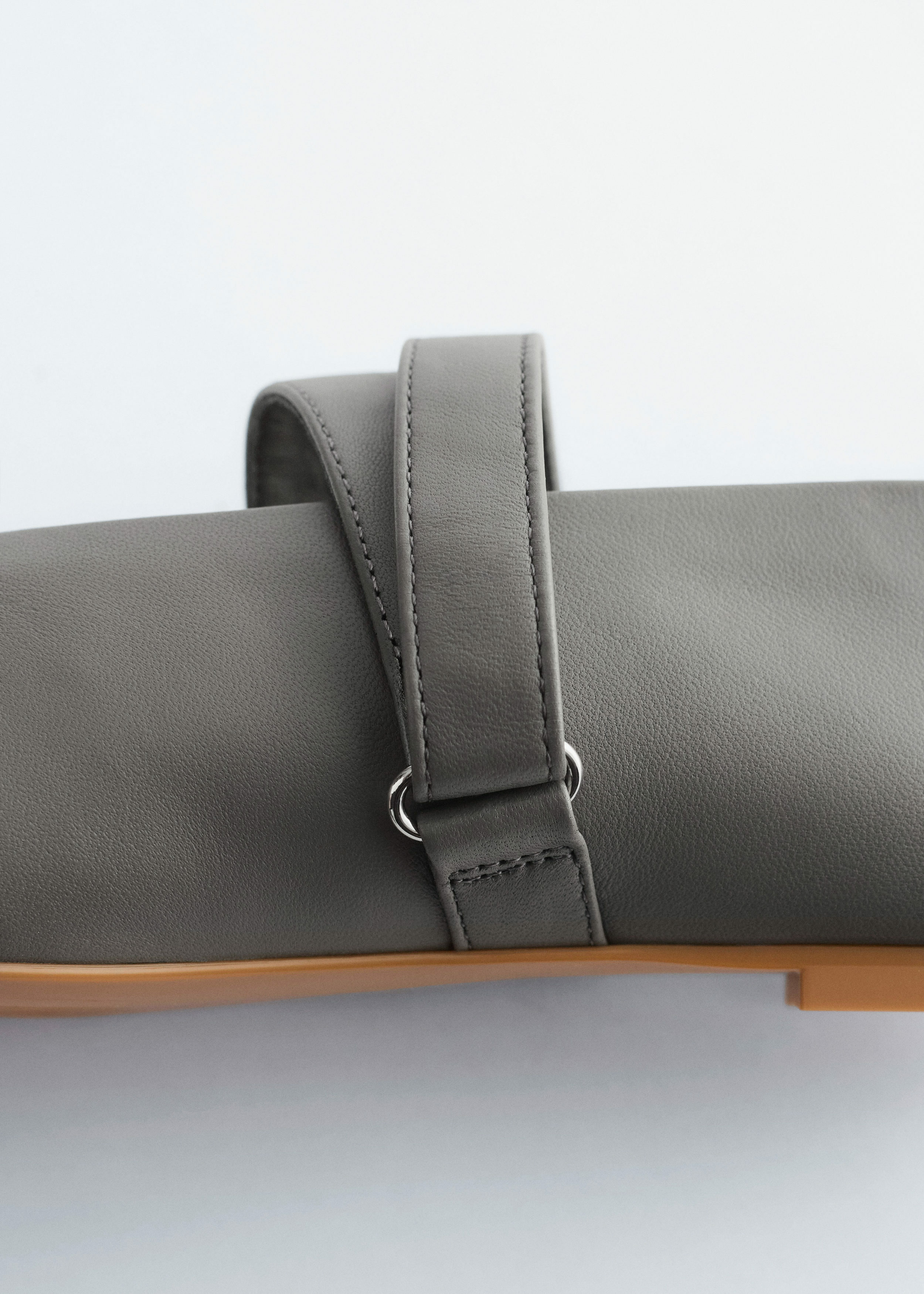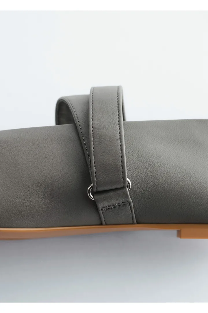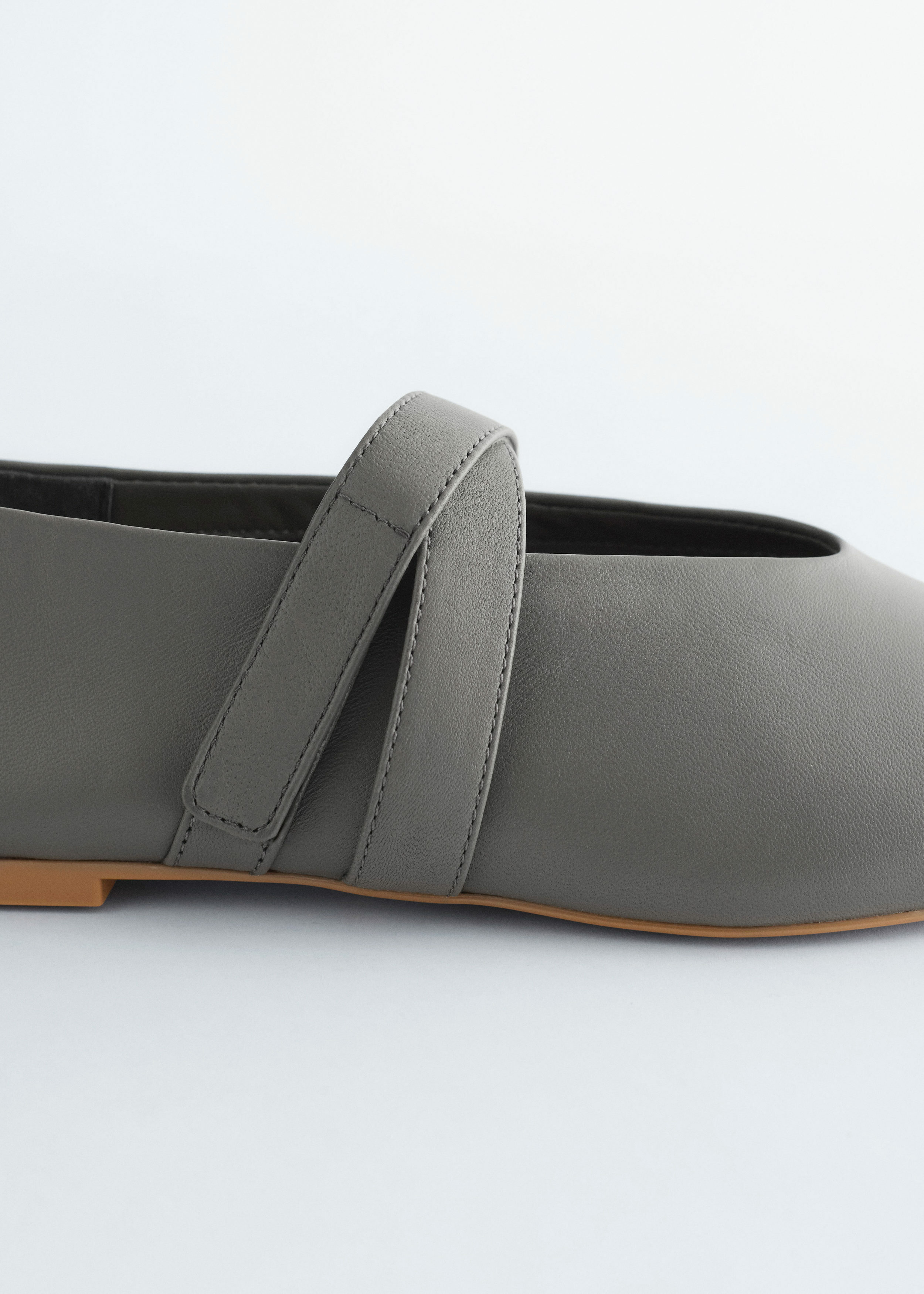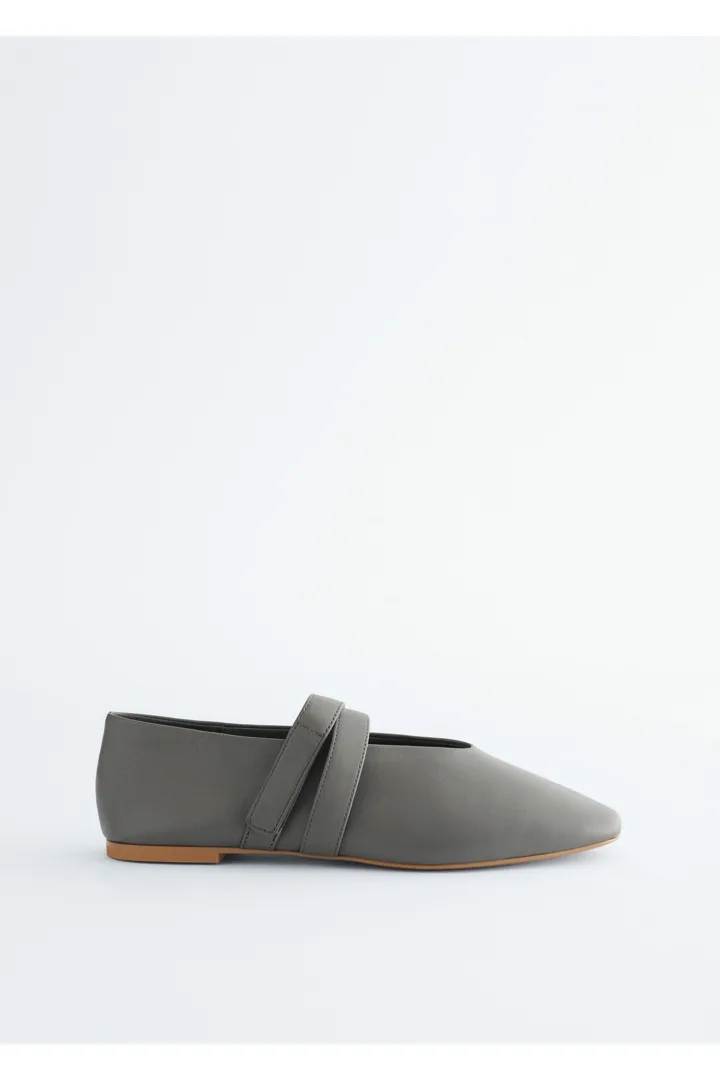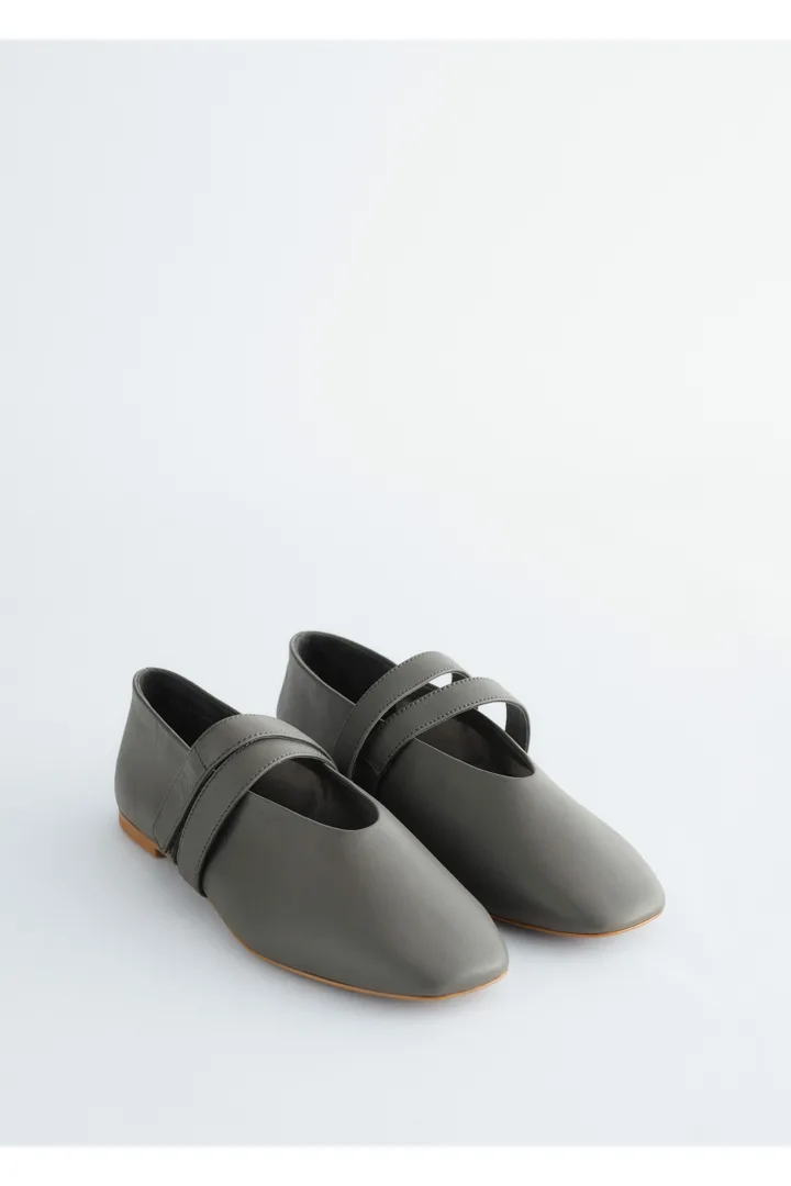 매끄러운 가죽 소재로 탄생한 발레리나 플랫이에요. 미니멀한 실루엣이 돋보이는 제품으로, 소프트 스퀘어 앞코, 그리고 벨크로로 고정하는 크로스 스트랩이 특징이랍니다.
