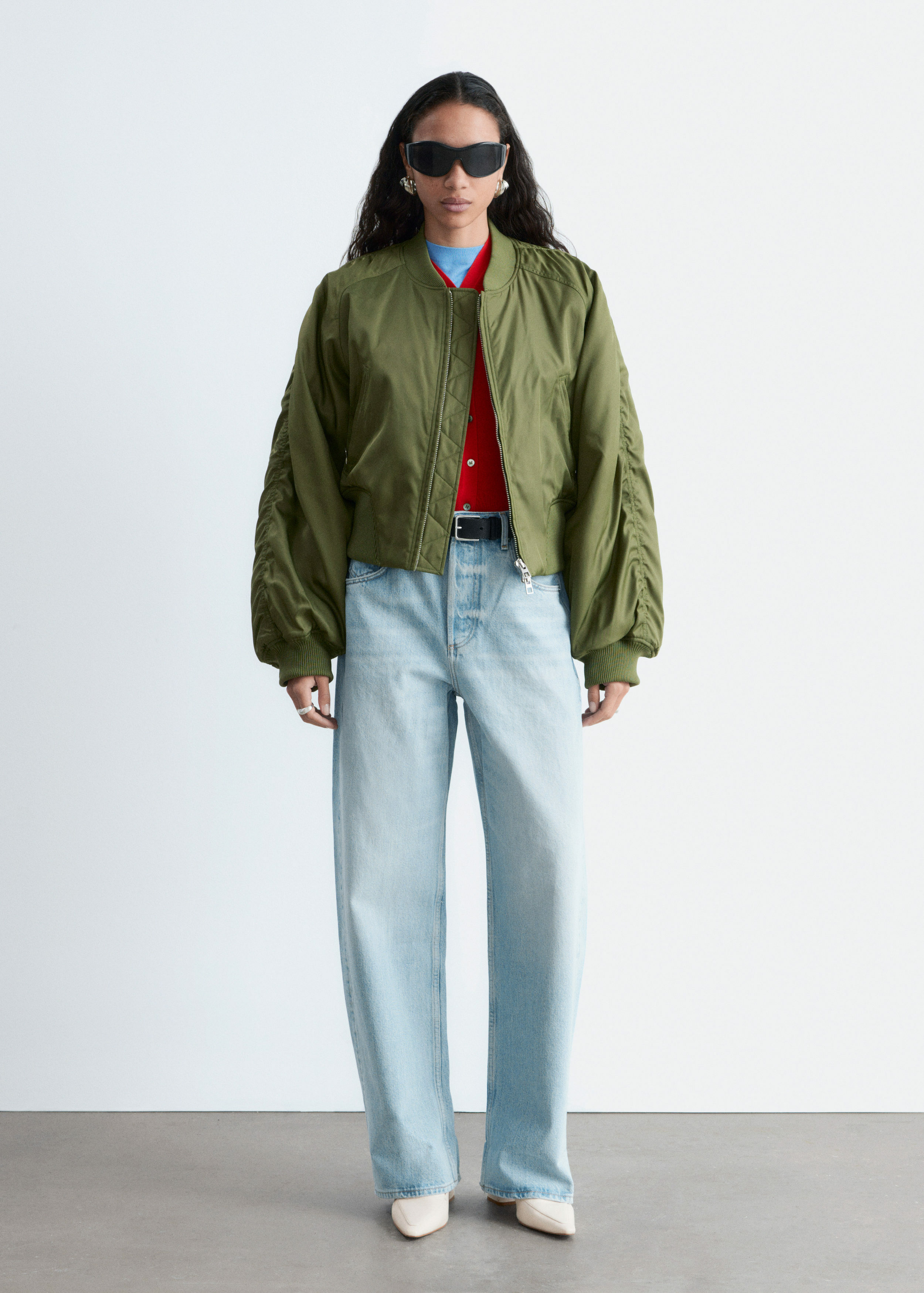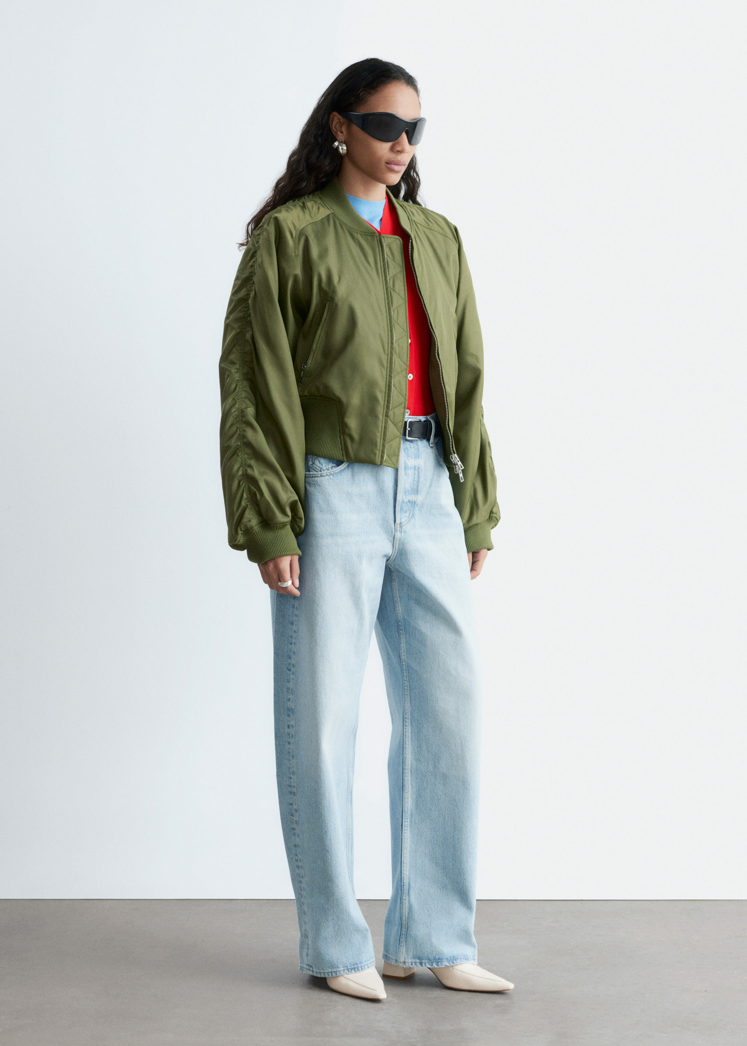 클래식한 5 포켓 디자인의 진이에요. 배럴 쉐입의 엑스트라 롱 레그는 헴라인을 위로 접거나 내려 연출할 수 있답니다.