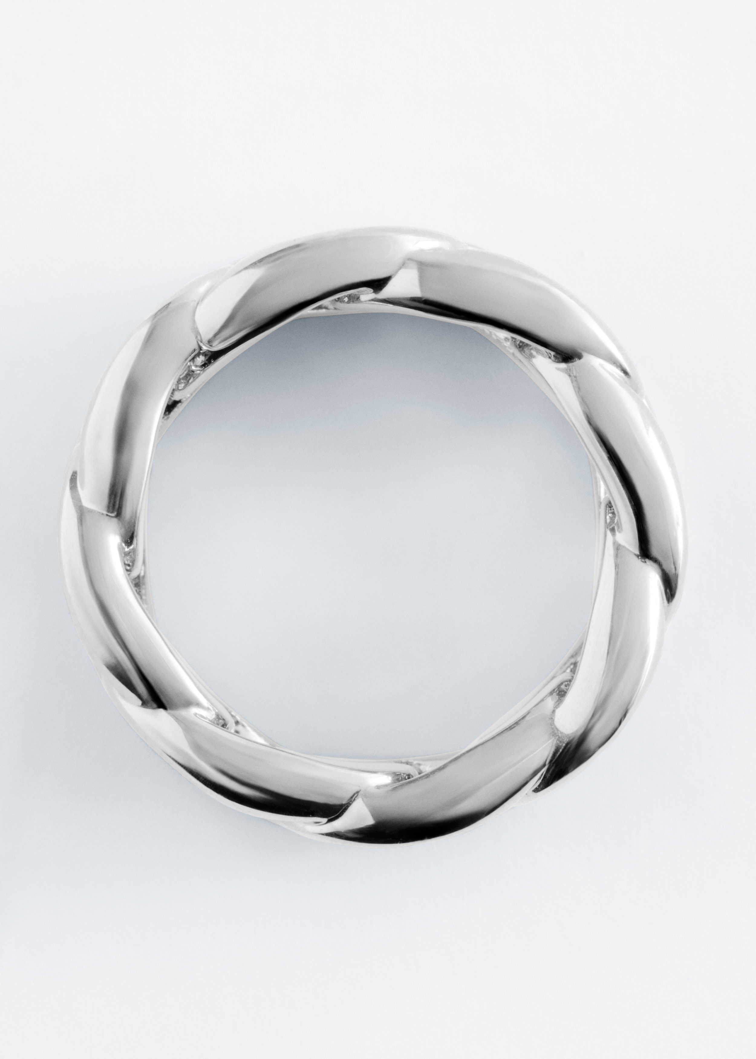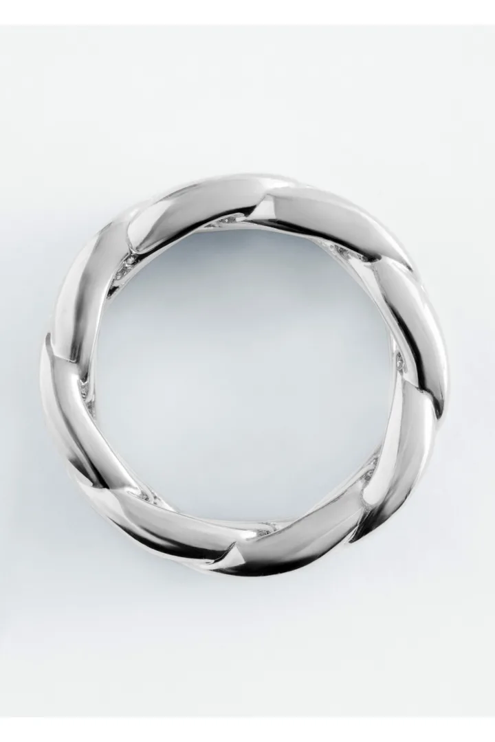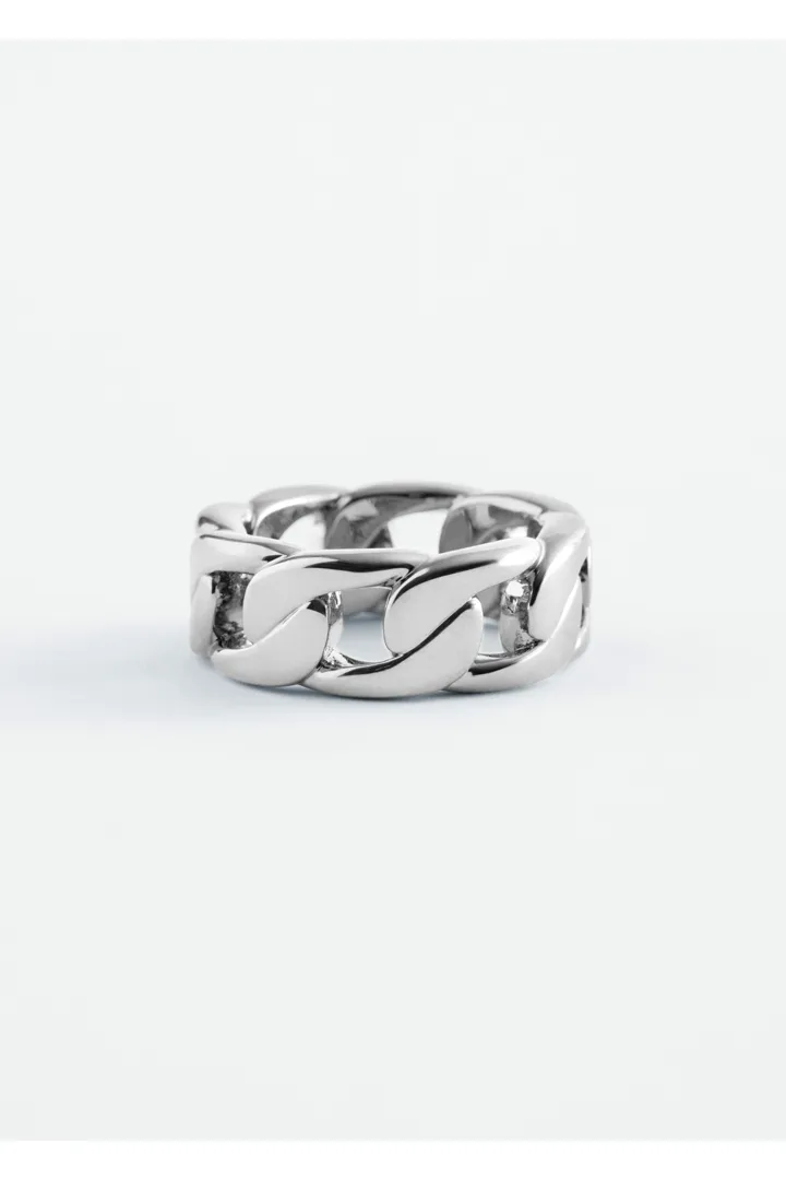 유광 브라스 소재로 탄생한 청키 링이에요. 연결된 체인 디자인이 특징으로, 매일의 스타일링에 모던한 분위기를 더해준답니다. 단독으로 연출하거나, 다른 링과 레이어링해 보세요.