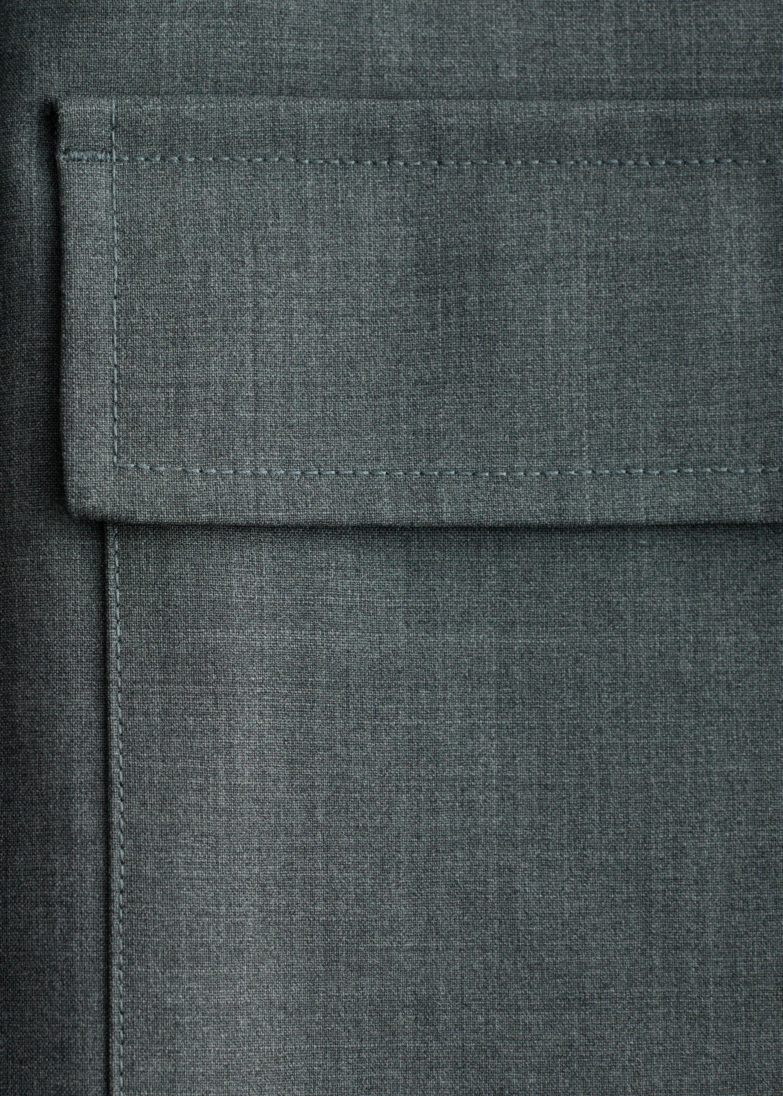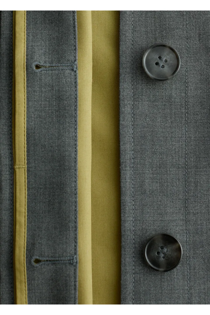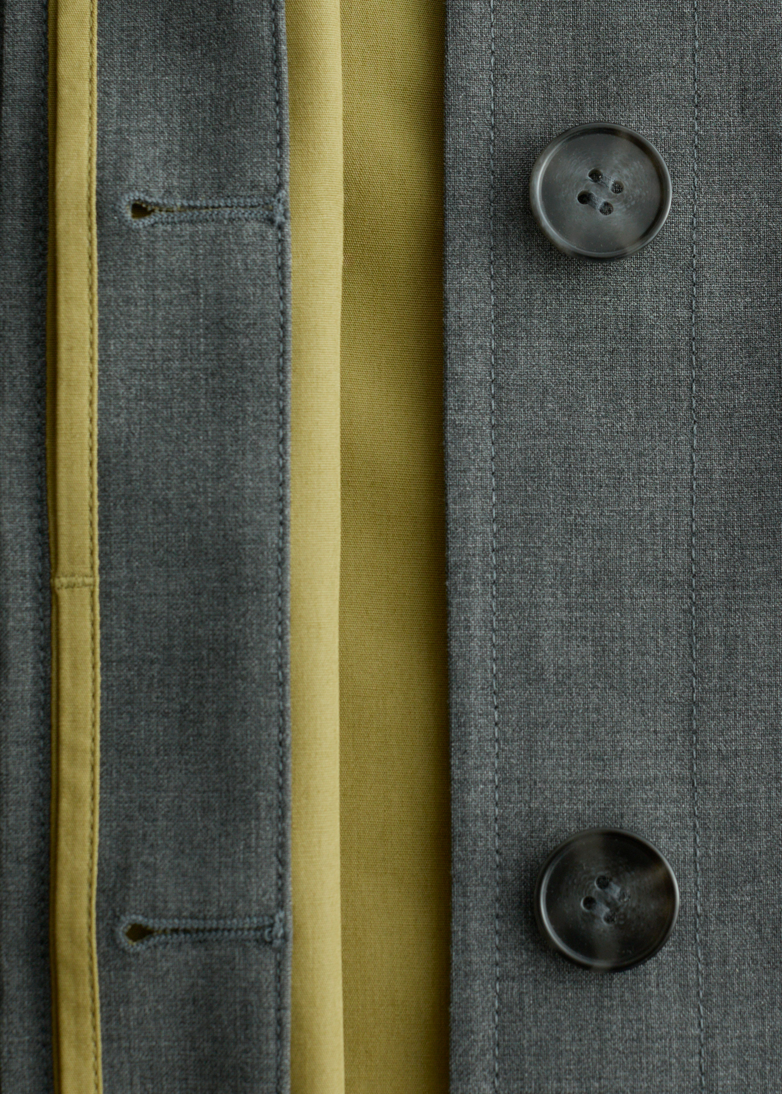 울-코튼 혼방 소재로 탄생한 자켓이에요. 크롭 & 박시 실루엣이 멋스러우며 클래식 카라, 컨실드 버튼 플래킷, 2개의 플랩 포켓, 탑스티치 솔기가 자리해 있어요. 대비적인 톤의 안감이 전체 룩을 완성한답니다.