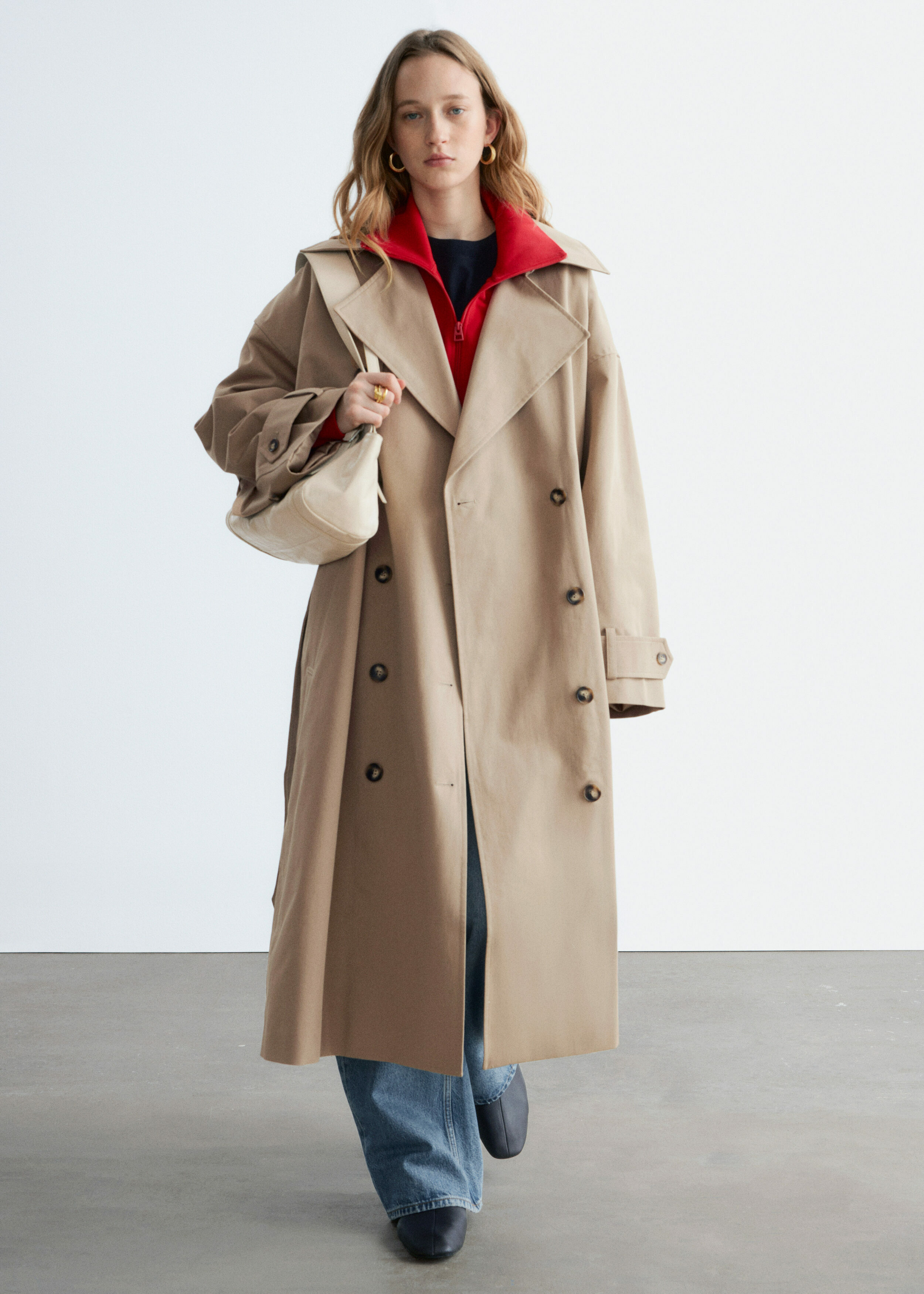간절기 스타일링의 에센셜 아이템, 트렌치 코트를 만나보세요. 100% 코튼 소재로 탄생했으며, 볼륨감 있는 더블 브레스티드 실루엣이 멋스럽답니다. 허리를 강조하는 패브릭 버클 벨트, 뒷면의 타임리스한 요크, 밑단의 오픈 트임이 자리해 있어요. 부드러운 테일러링 피스와 함께 느긋한 이지 룩을 연출해 보세요.