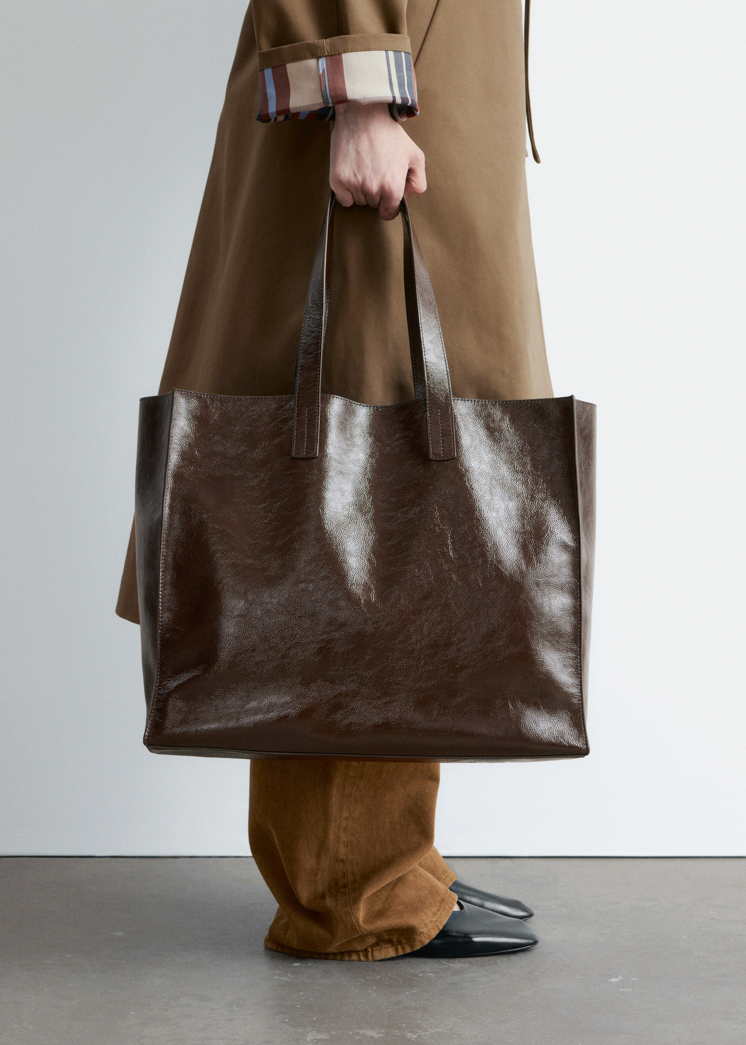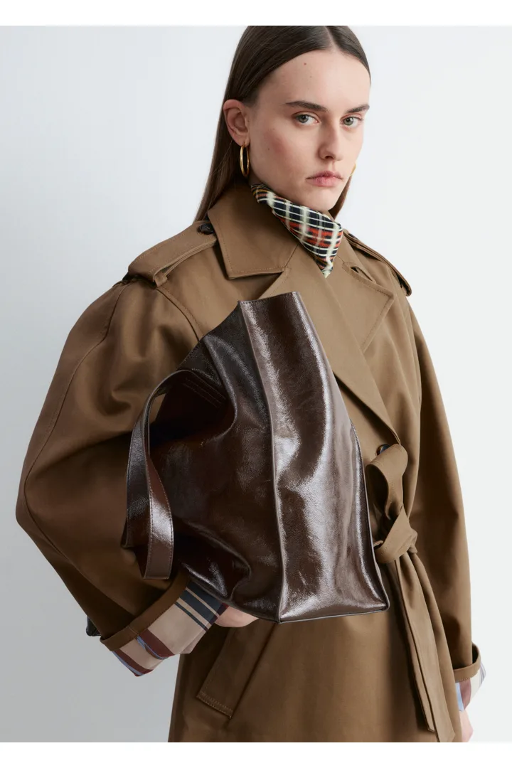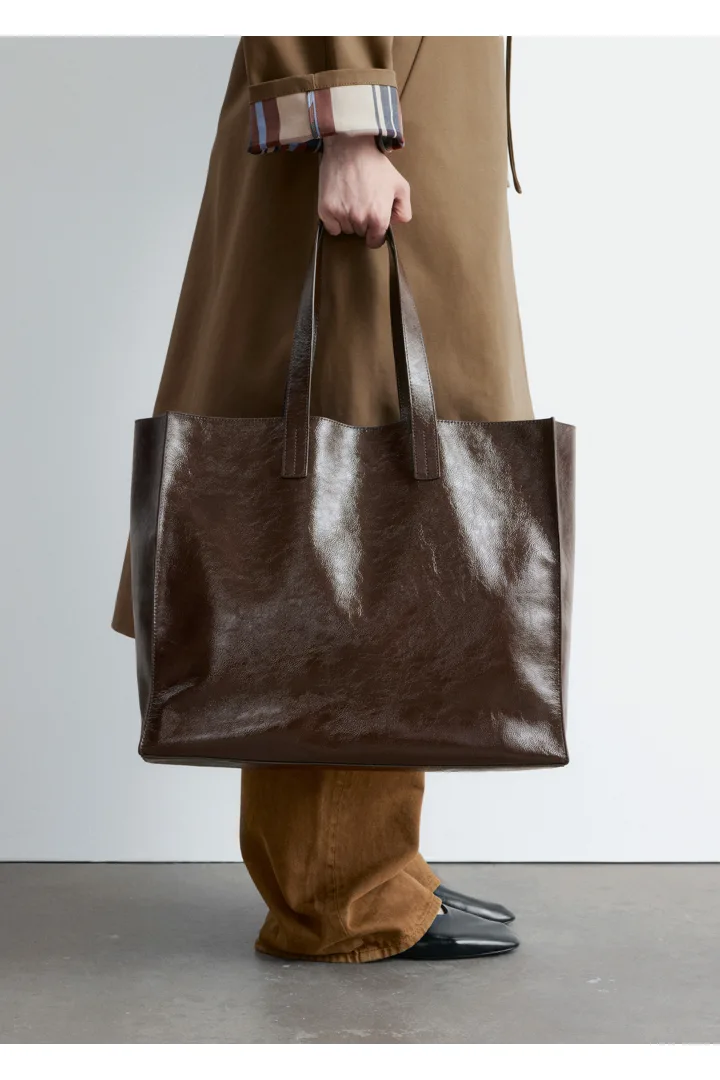 부드러운 가죽 소재와 넉넉한 쉐입으로 탄생한 토트 백이에요. 클래식한 미니멀 실루엣, 상단 핸들, 이너 포켓이 특징이랍니다.