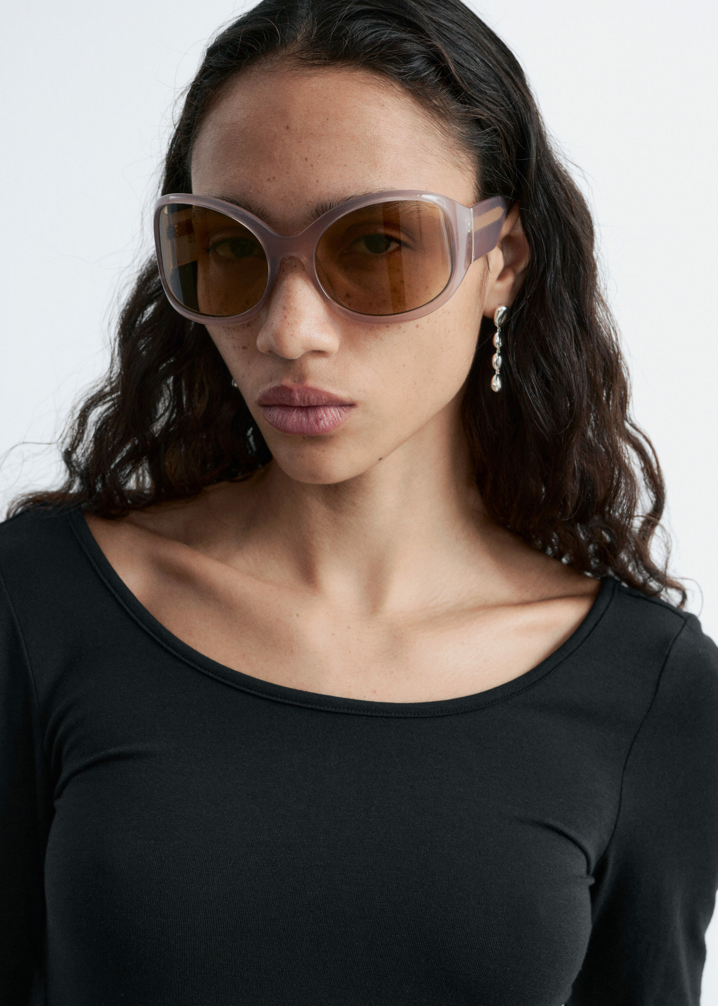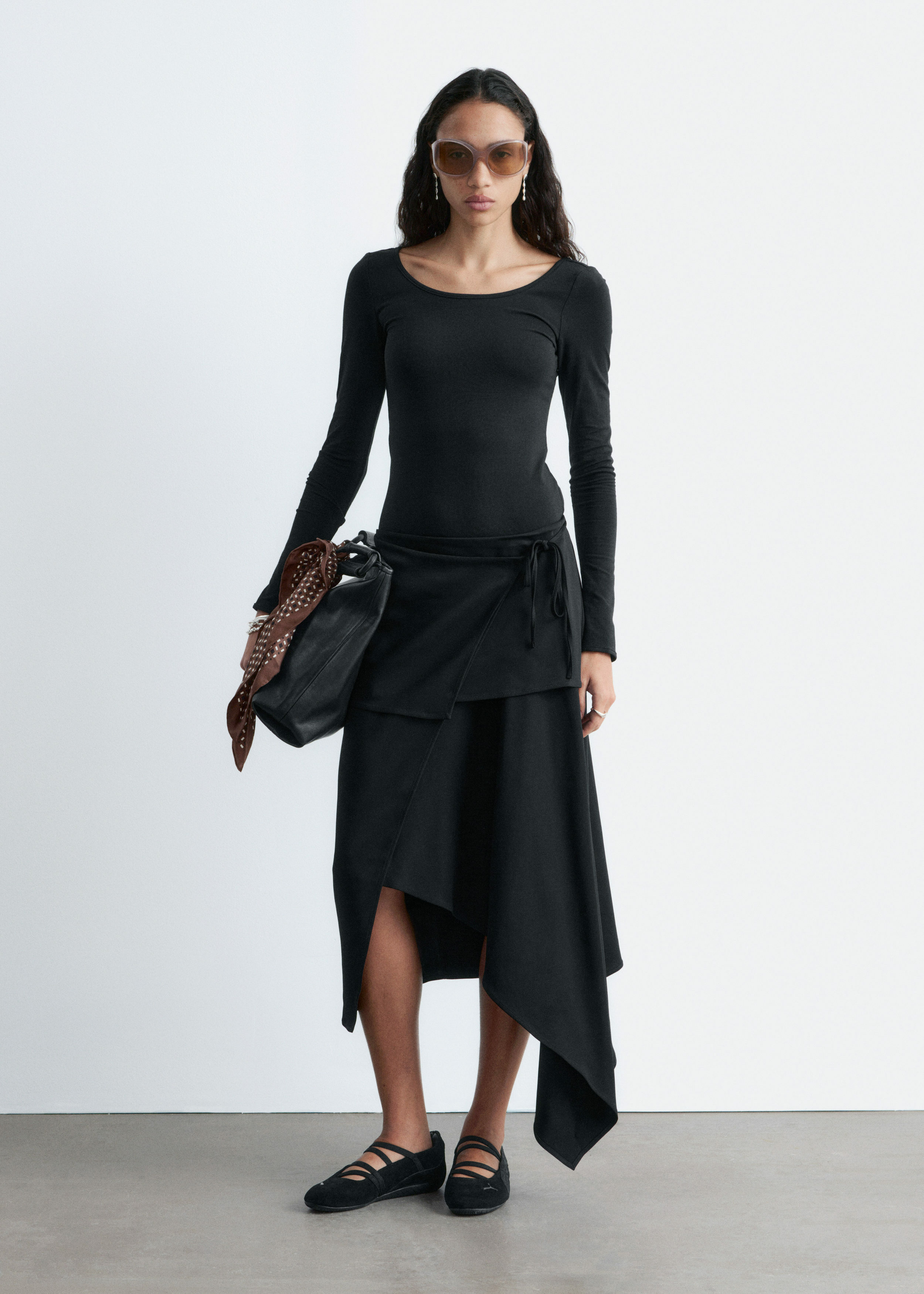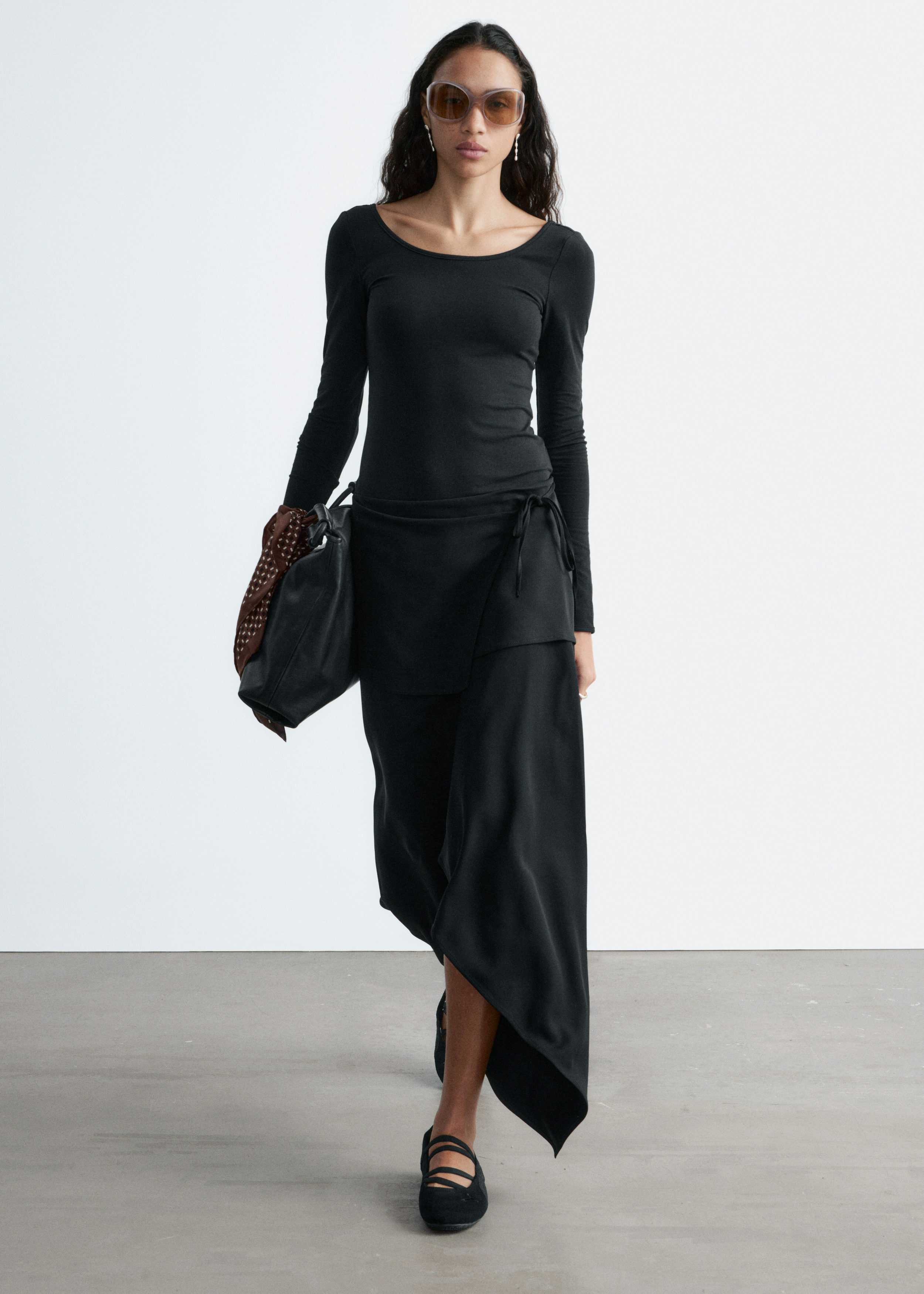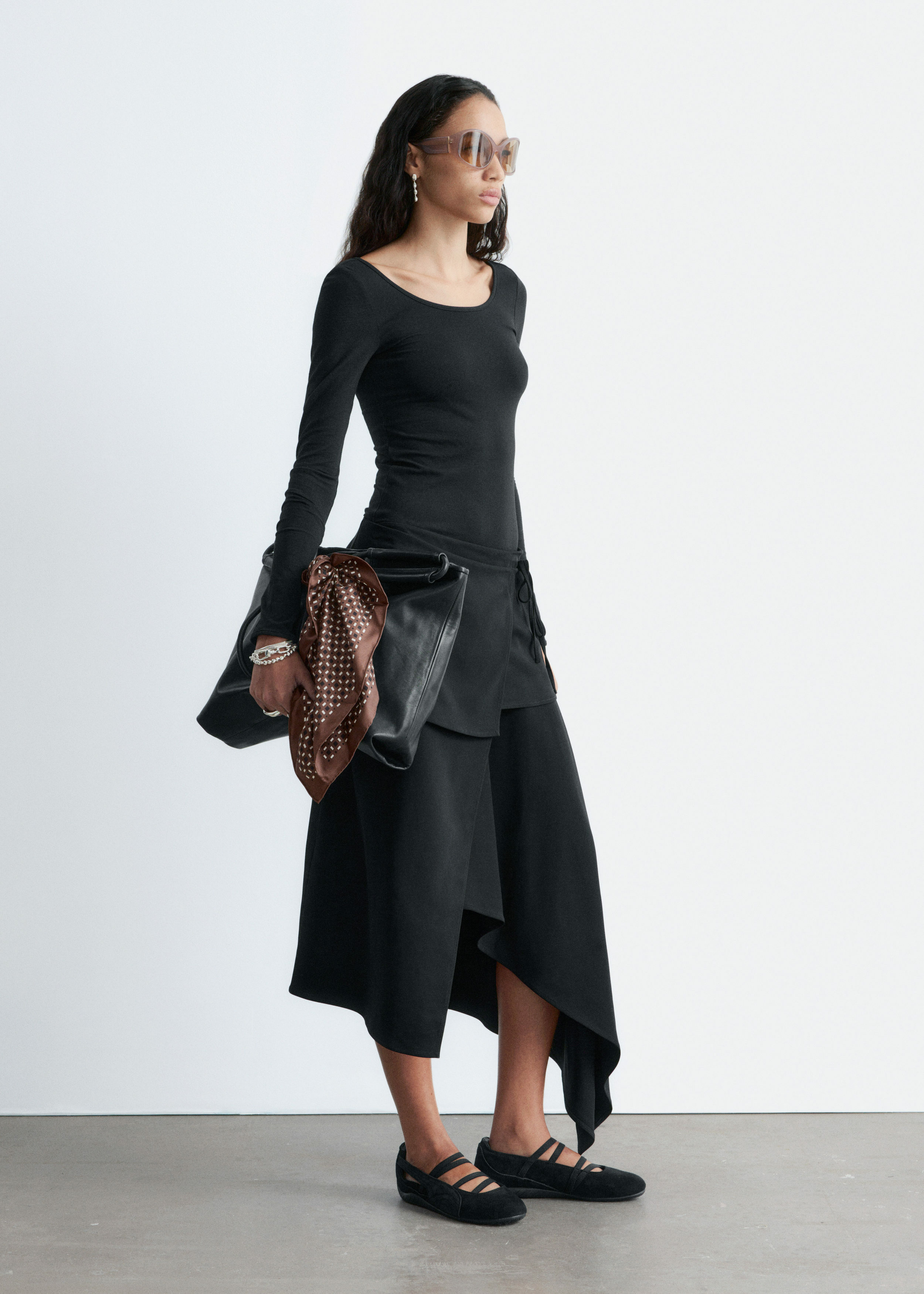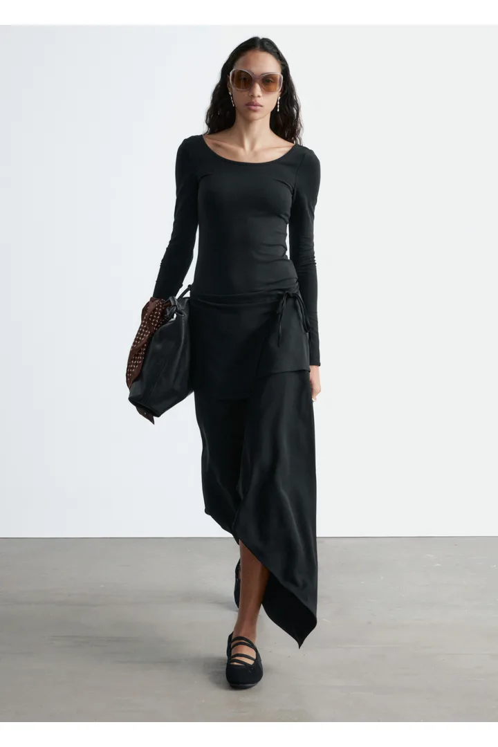 부드럽고 신축성 좋은 저지 소재의 롱 슬리브 탑이에요. 앞면과 뒷면의 깊게 파인 네크라인이 시선을 사로잡는답니다.