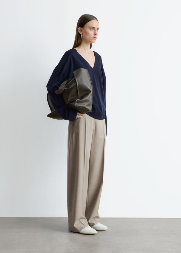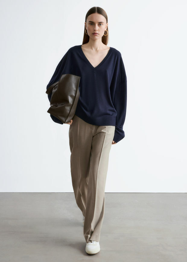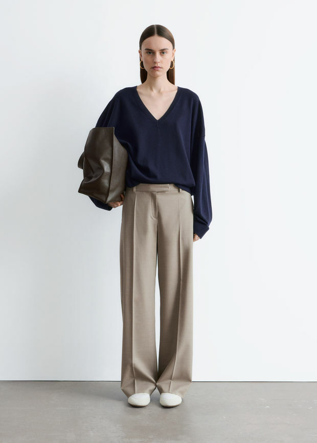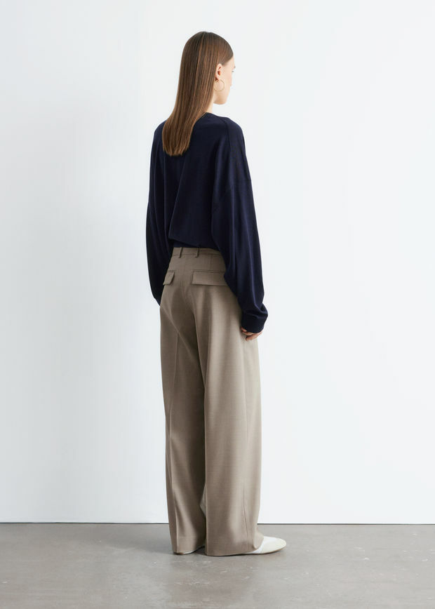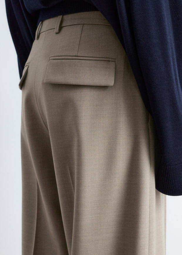 메리노 울 & 코튼 혼방 소재의 테일러드 트라우저예요. 깔끔한 프레스 크리스가 자리한 스트레이트 컷 레그가 돋보이는 제품으로 측면 솔기의 사선 포켓, 뒷면의 플랩 웰트 포켓, 컨실드 지퍼 플라이와 깔끔한 단추가 자리해 있어요.