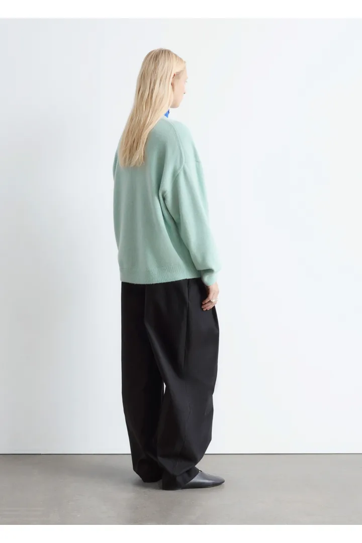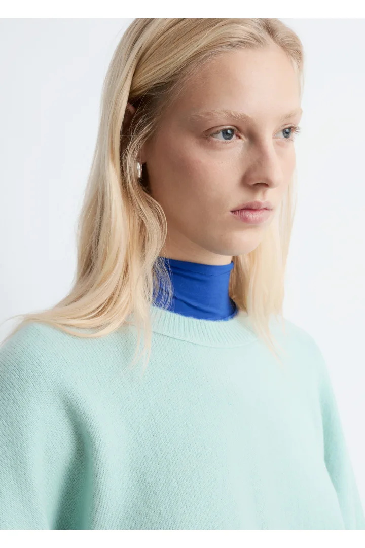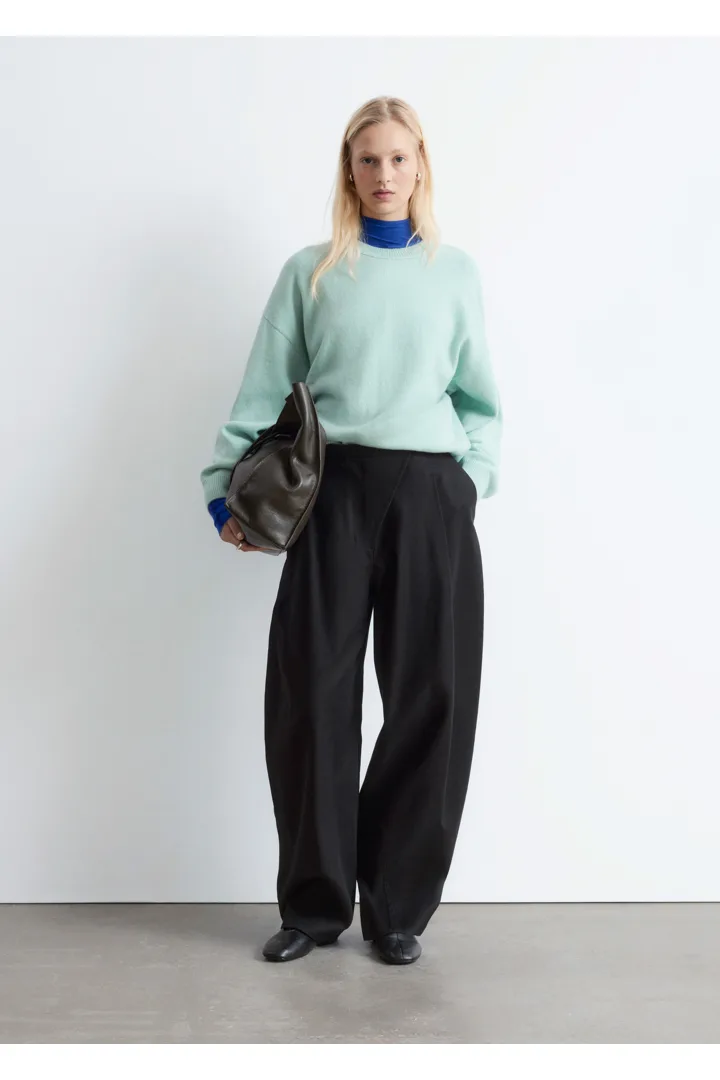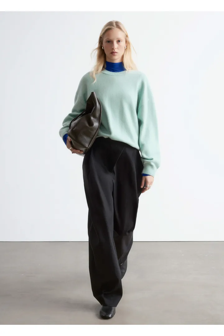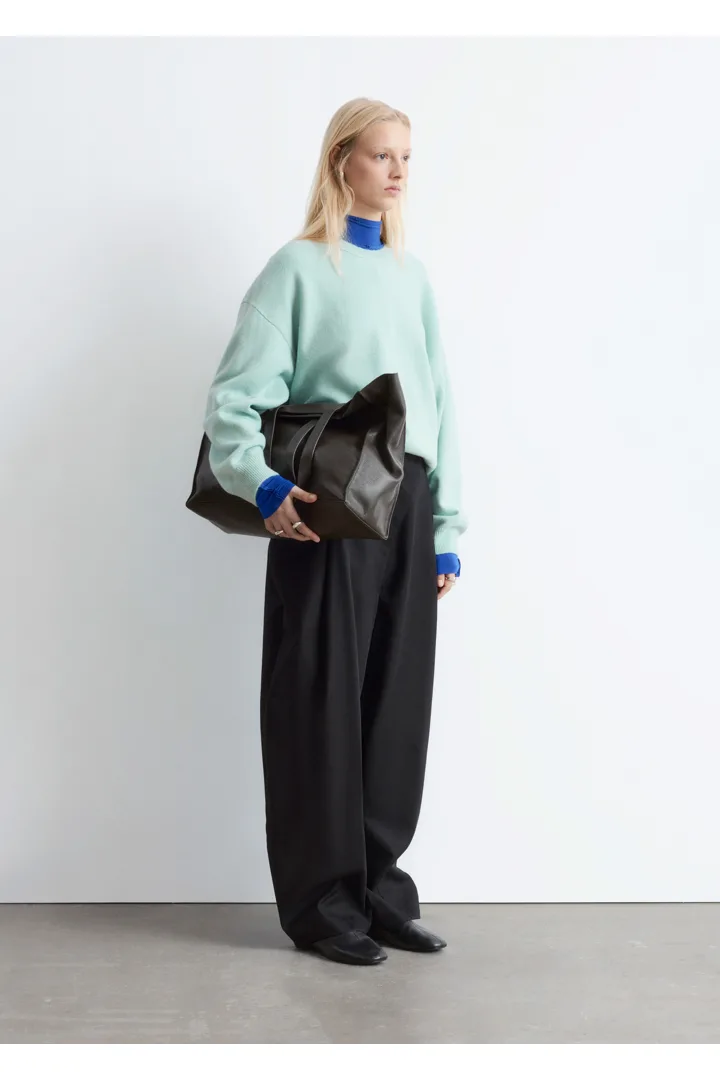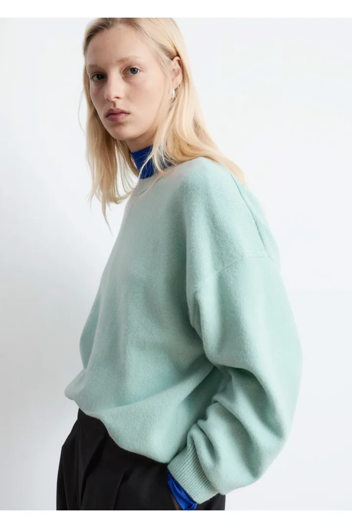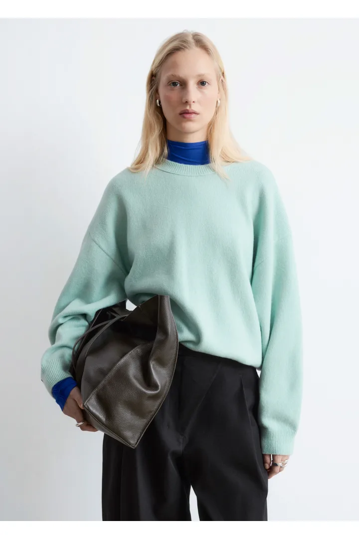 울 & 코튼 혼방 니트로 탄생한 스웨터예요. 오버사이즈 실루엣이 멋스러운 아이템으로 링크 스티치로 둘러 장식된 립 트리밍의 라운드 네크라인, 드롭 숄더, 롱 슬리브가 특징이랍니다. 커프스와 헴라인에 립 디테일이 자리해 있으며, 뒷면의 살짝 더 긴 헴라인으로 여유로운 쉐입을 연출해주어요. 넉넉한 핏이 특징인 제품으로, 몸에 더 맞게 정돈된 실루엣으로 연출하시려면 한 사이즈 작게 주문하시는 것을 추천드립니다.