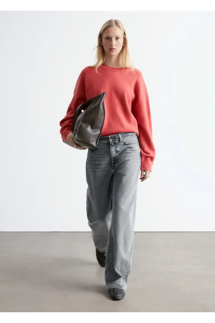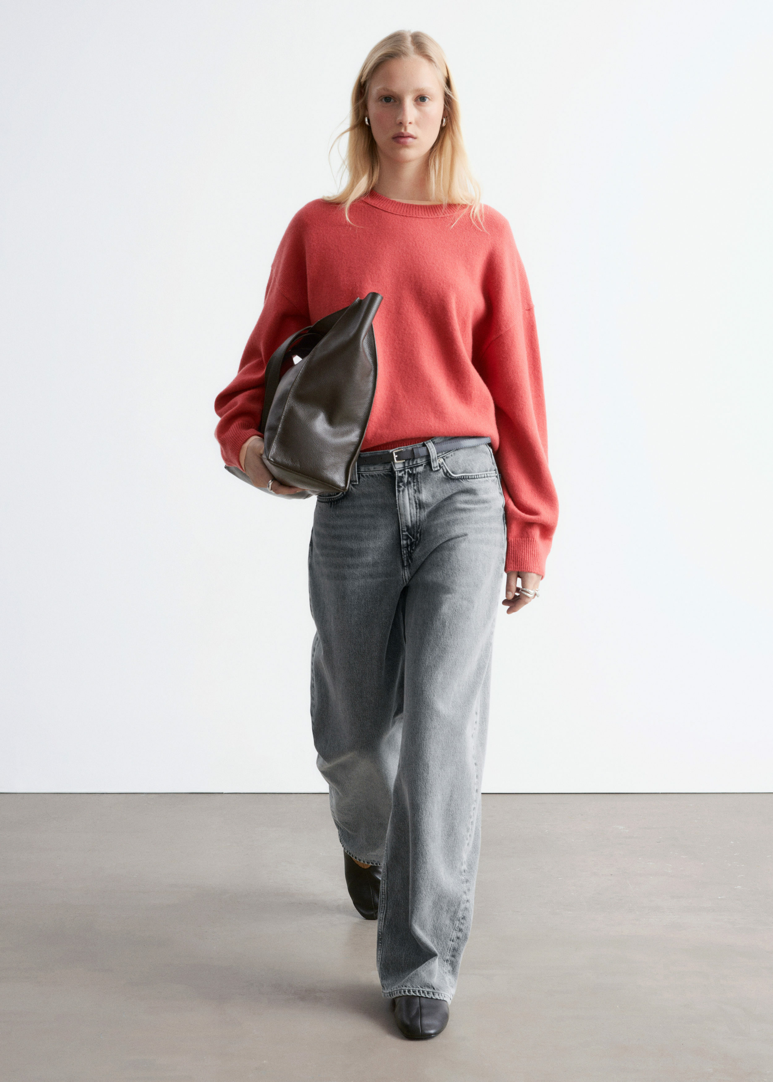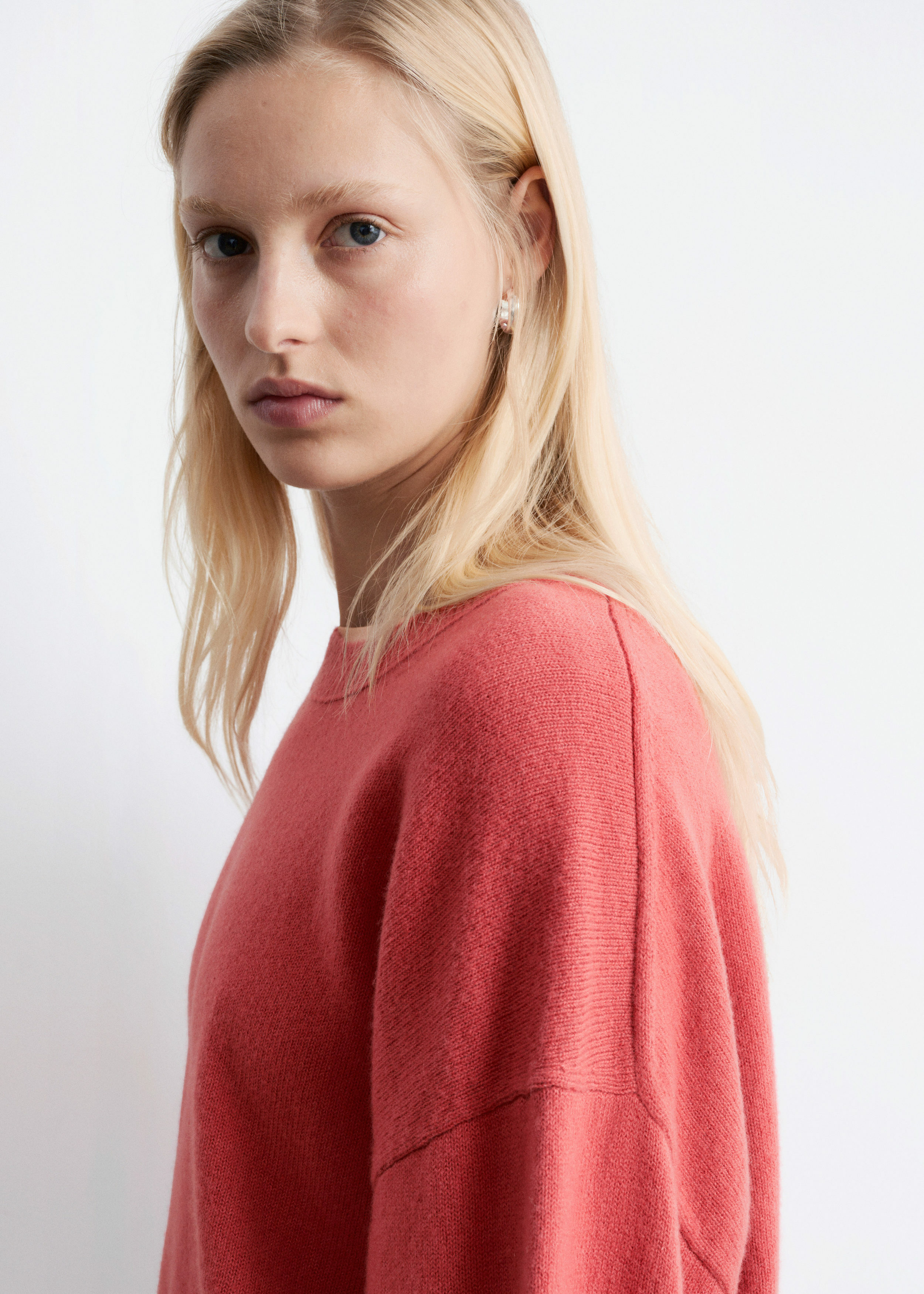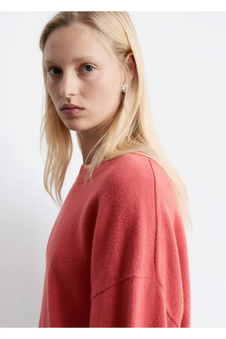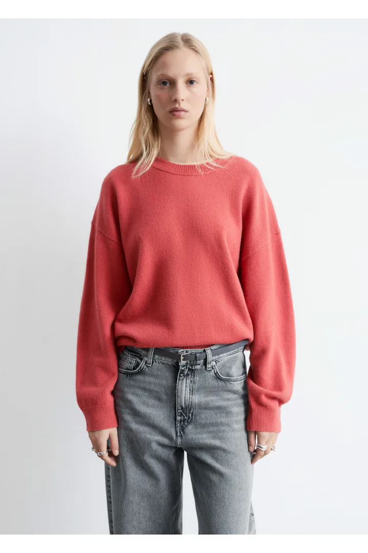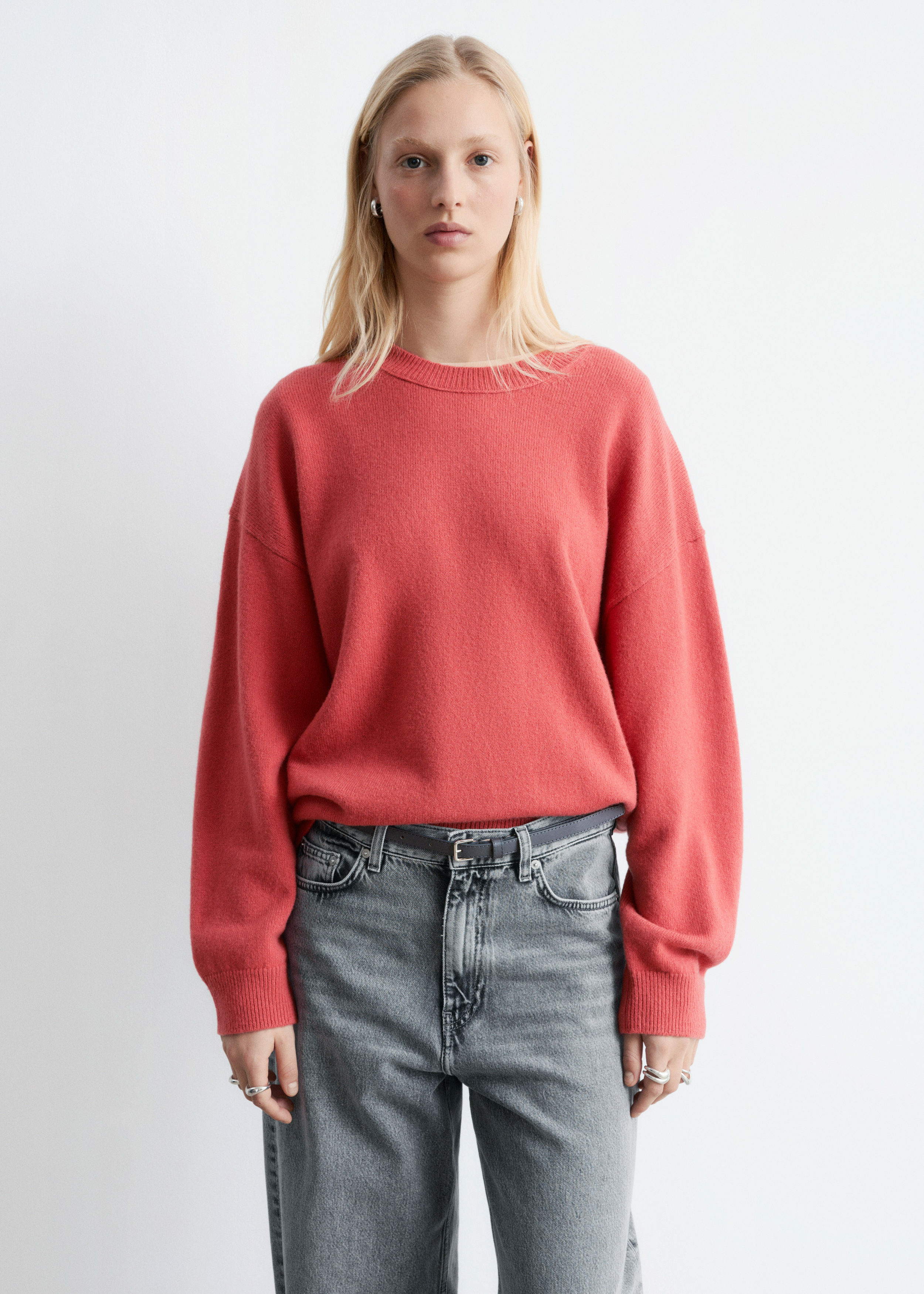 울 & 코튼 혼방 니트로 탄생한 스웨터예요. 오버사이즈 실루엣이 멋스러운 아이템으로 링크 스티치로 둘러 장식된 립 트리밍의 라운드 네크라인, 드롭 숄더, 롱 슬리브가 특징이랍니다. 커프스와 헴라인에 립 디테일이 자리해 있으며, 뒷면의 살짝 더 긴 헴라인으로 여유로운 쉐입을 연출해주어요. 넉넉한 핏이 특징인 제품으로, 몸에 더 맞게 정돈된 실루엣으로 연출하시려면 한 사이즈 작게 주문하시는 것을 추천드립니다.