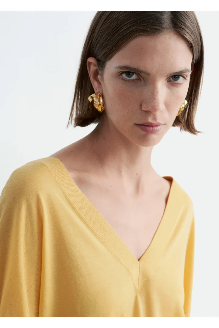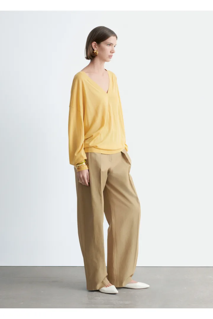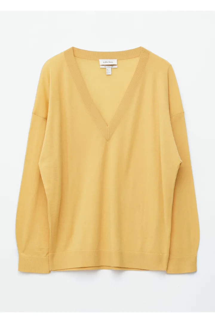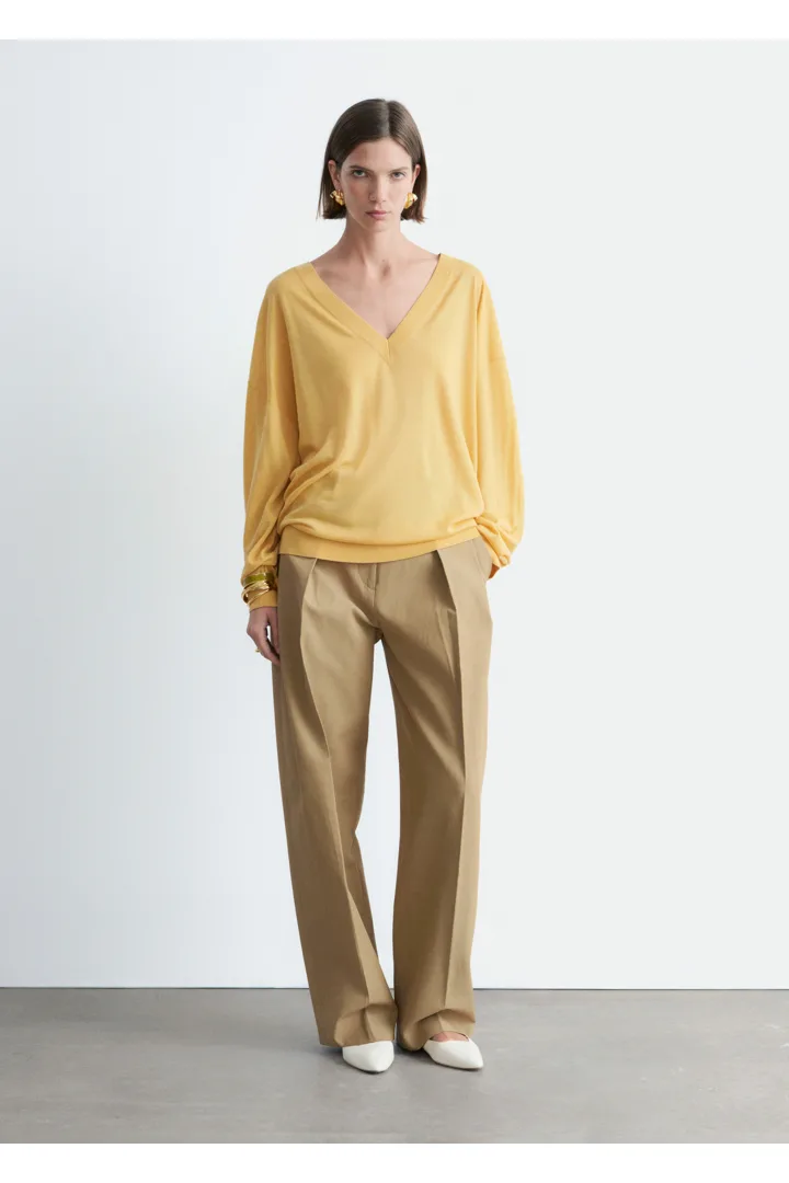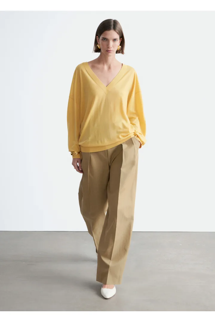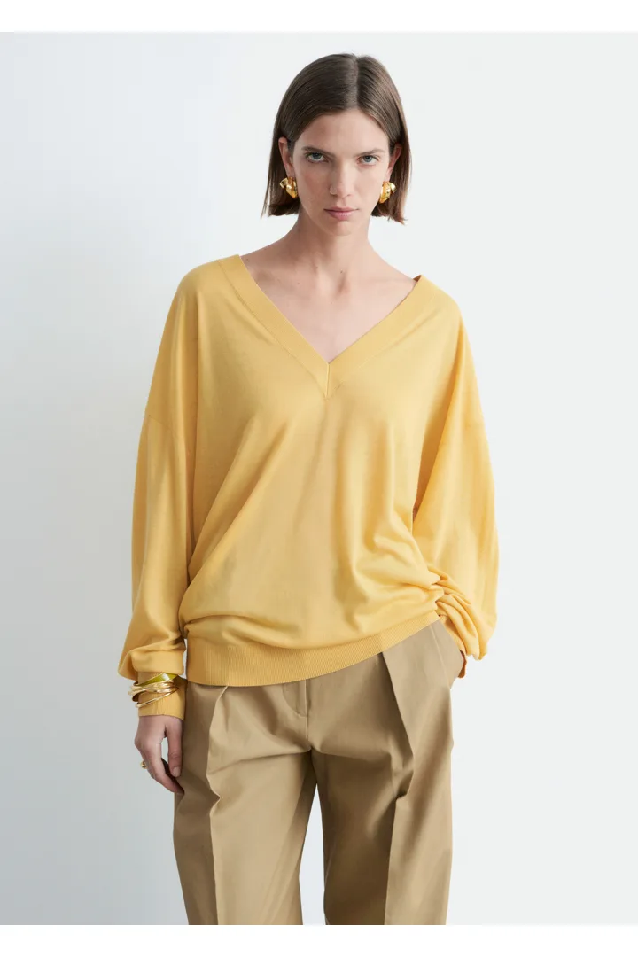 메리노 울 소재의 섬세한 니트 스웨터예요. 오버사이즈 실루엣, V 네크라인, 셋백 숄더, 은은한 립 트리밍이 특징이랍니다. 단독으로 연출하거나, 셔츠 및 탑 위에 레이어링해 보세요.