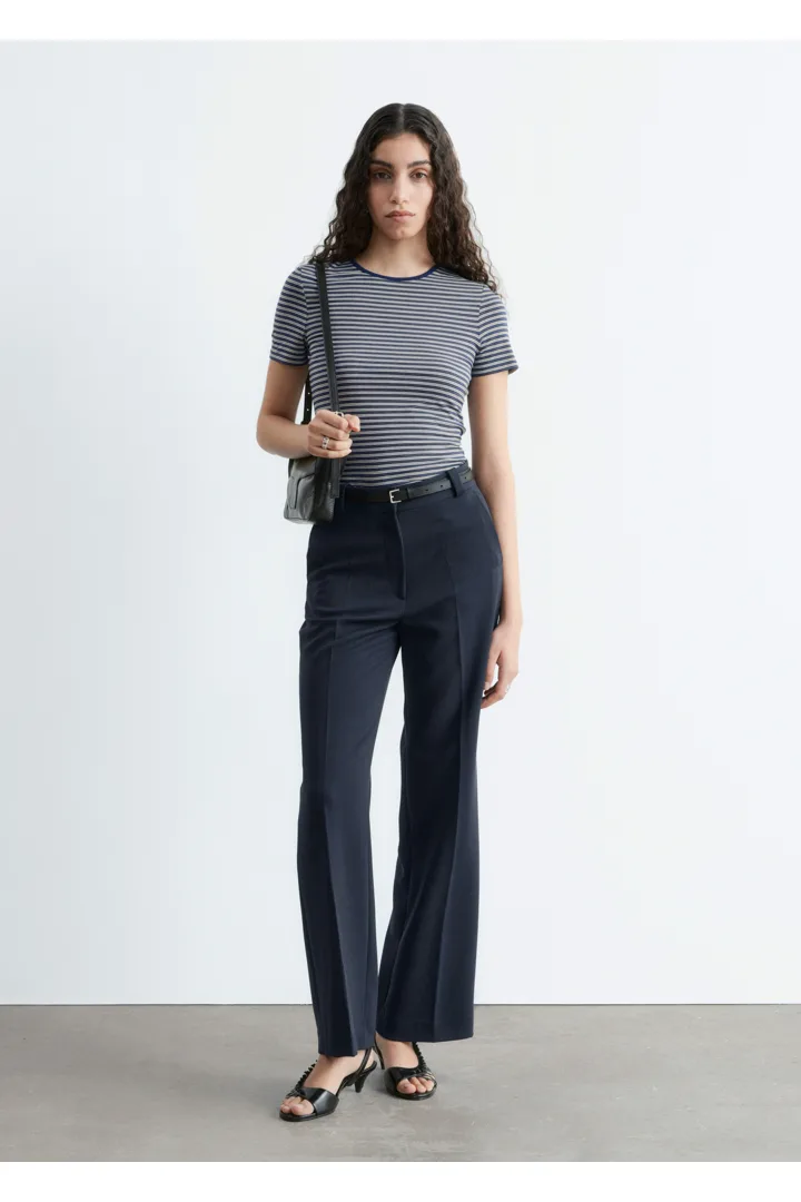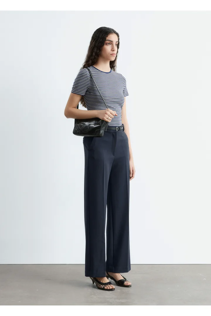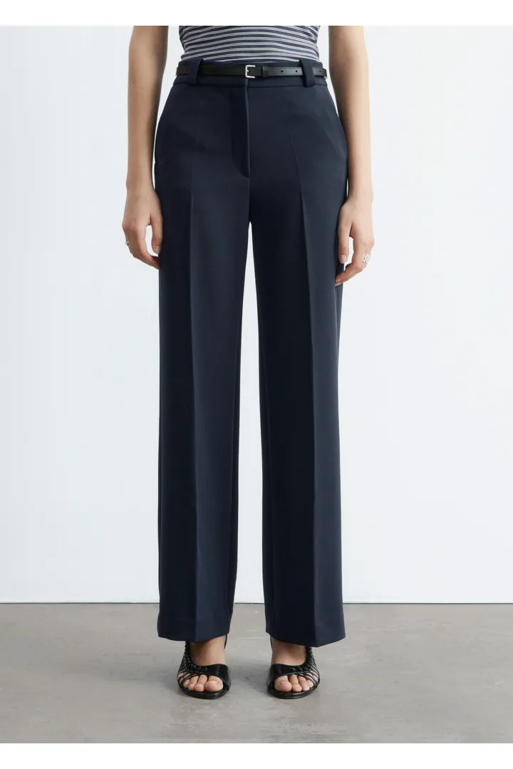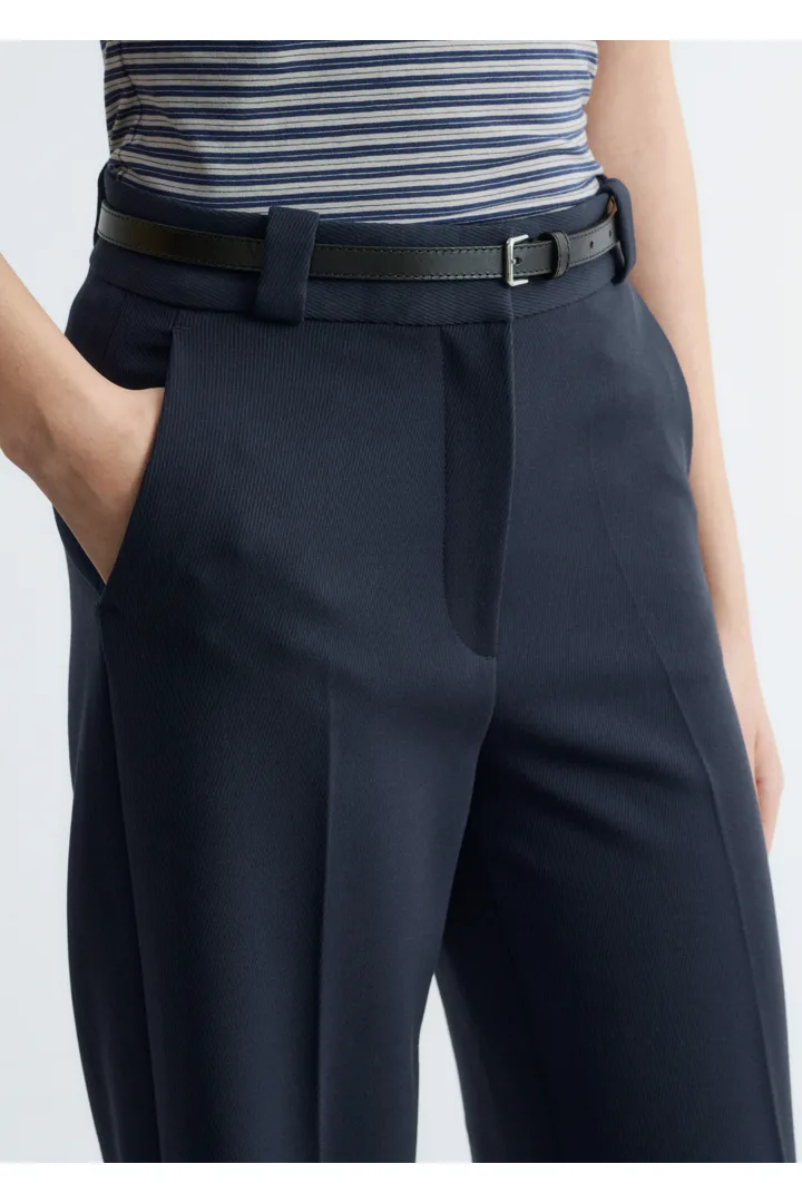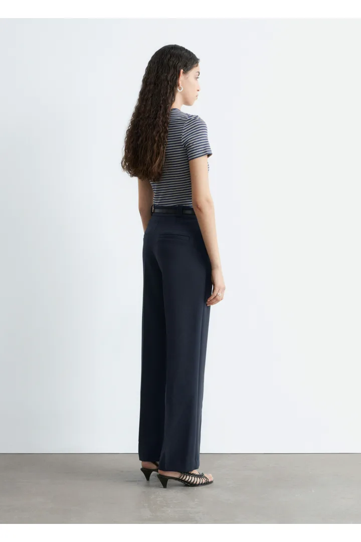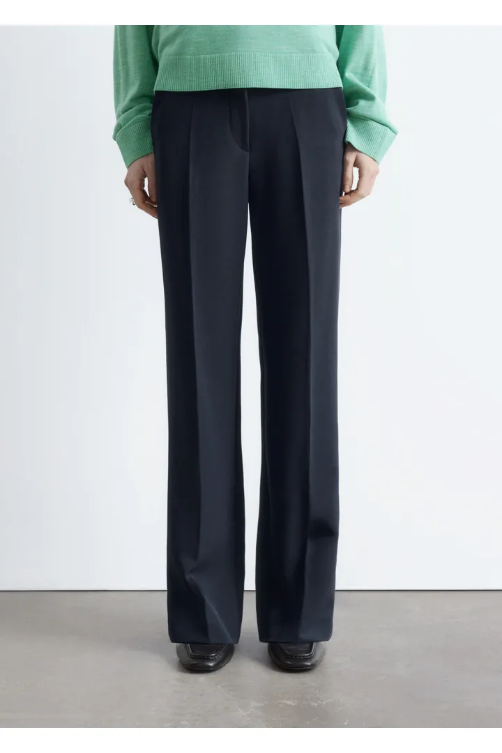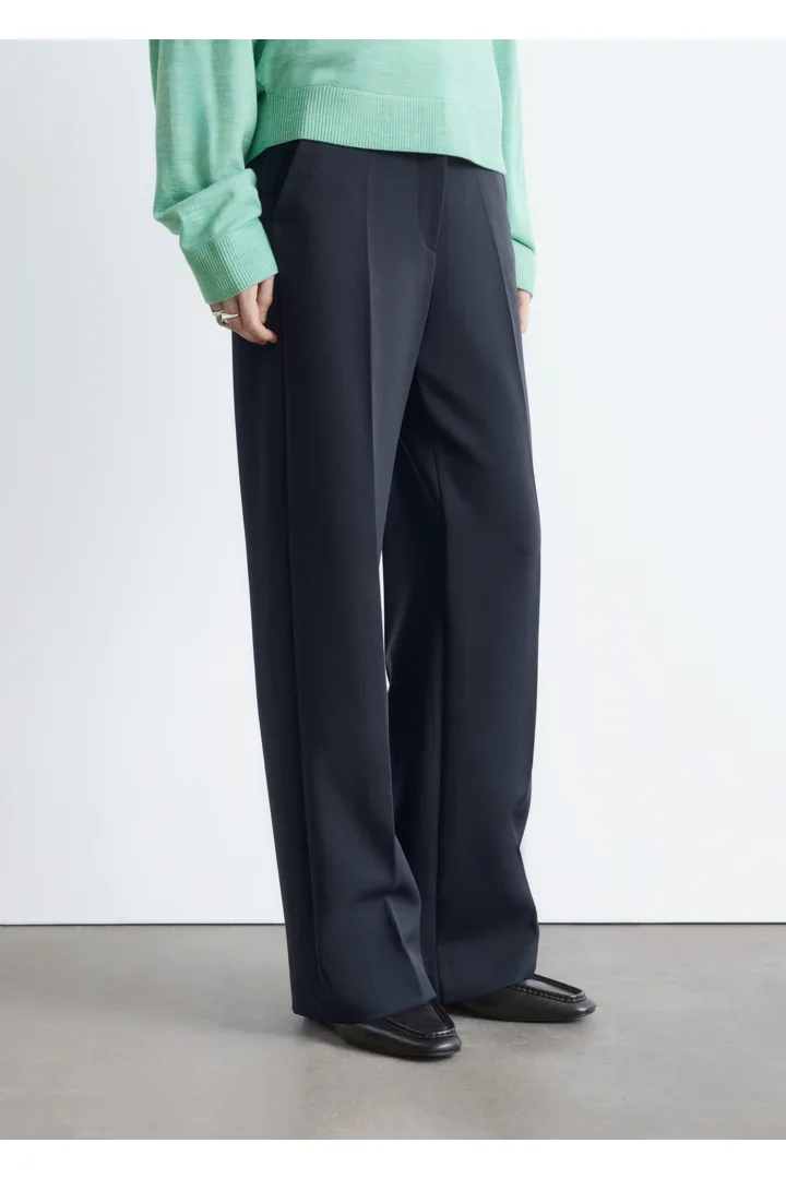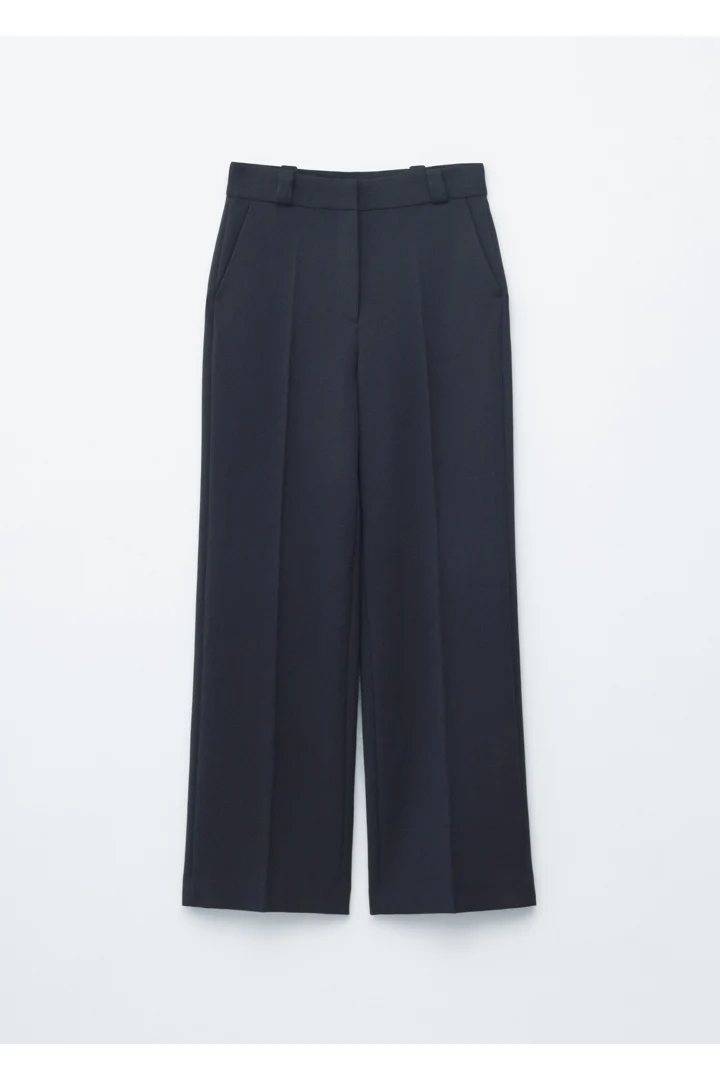 롱 스트레이트 레그가 돋보이는 트라우저예요. 깔끔한 프레스 크리스, 측면 솔기의 포켓, 뒷면에 2개의 웰트 포켓, 지퍼 플라이와 후크 앤 바 클로저가 자리해 있답니다.