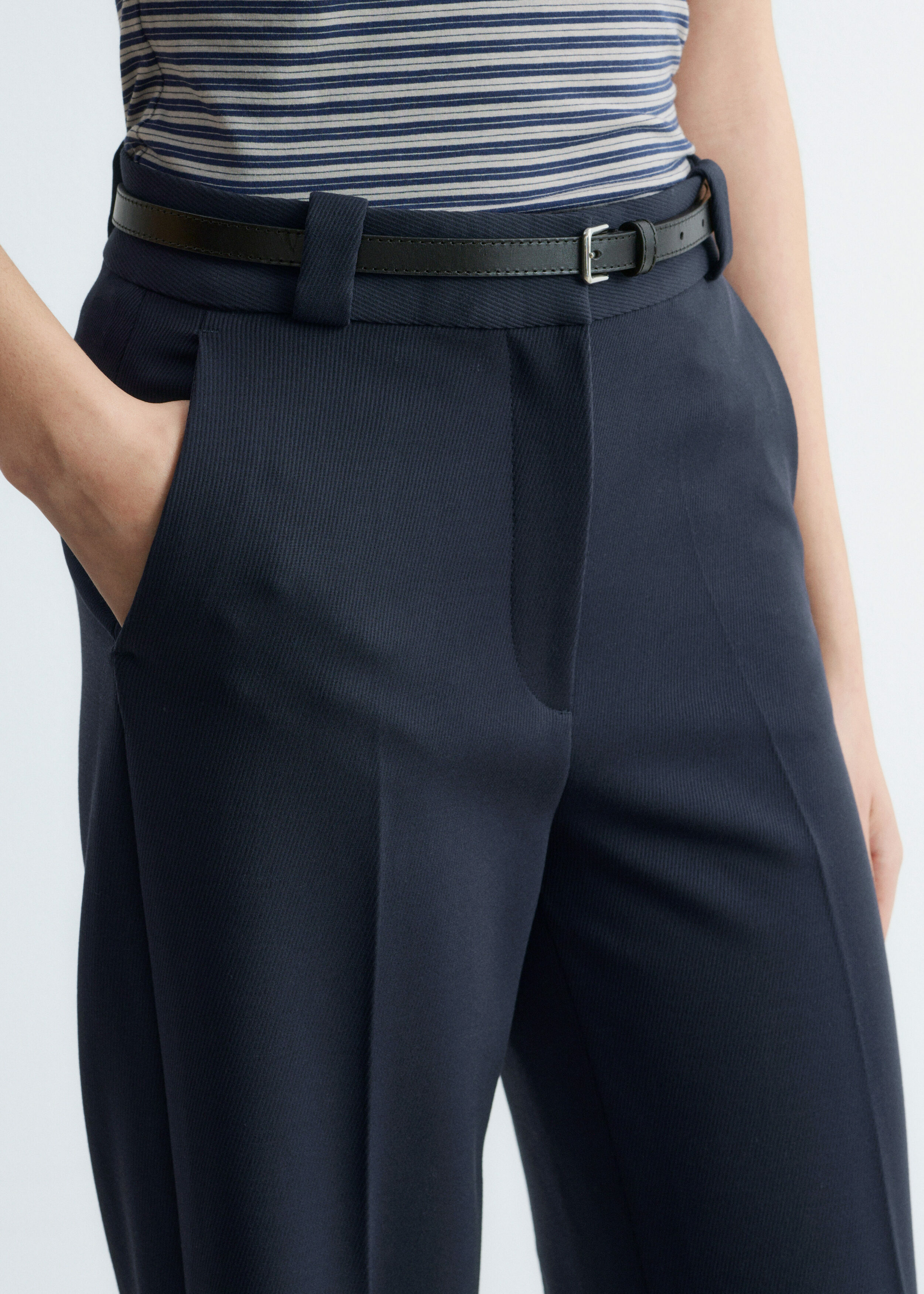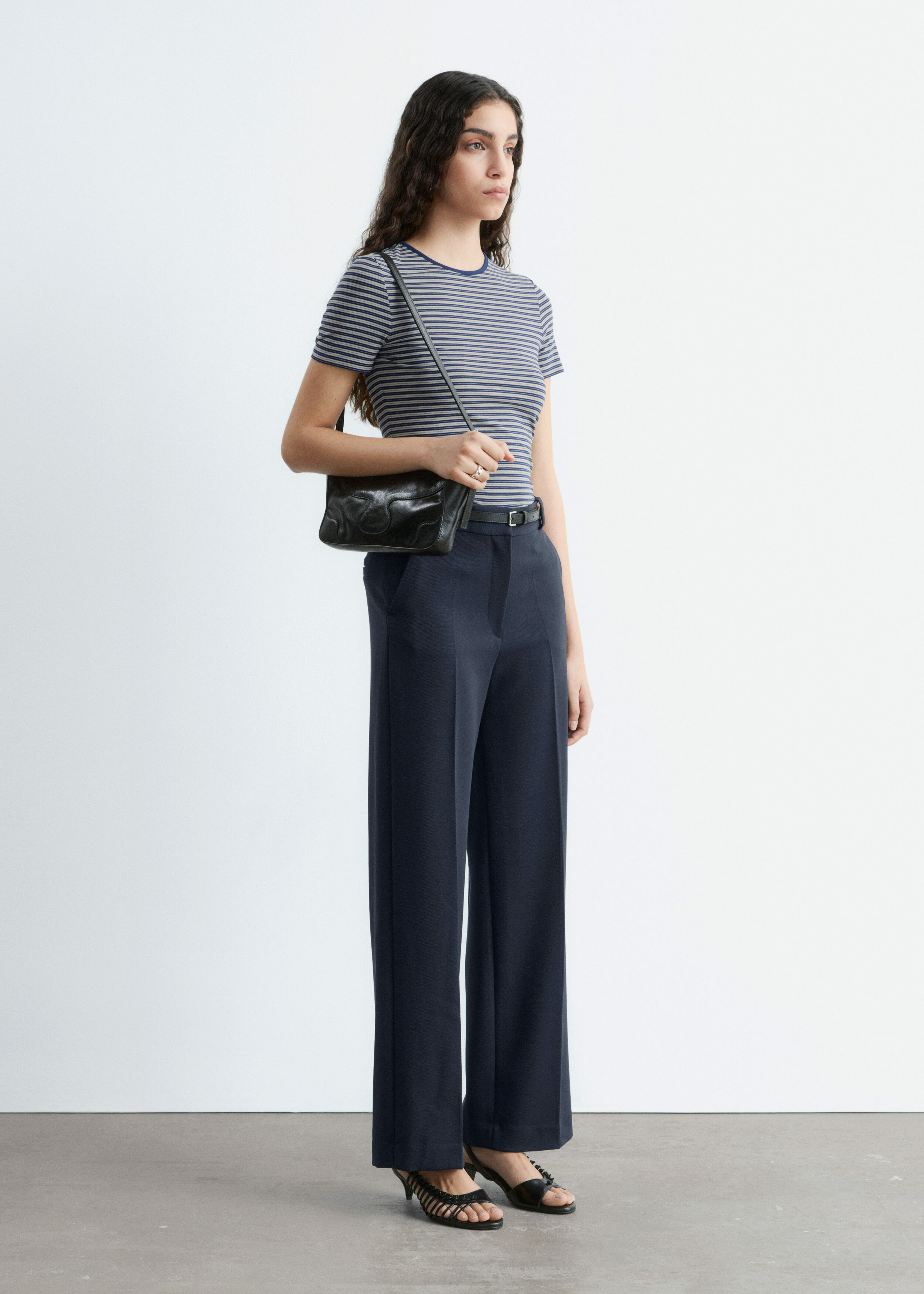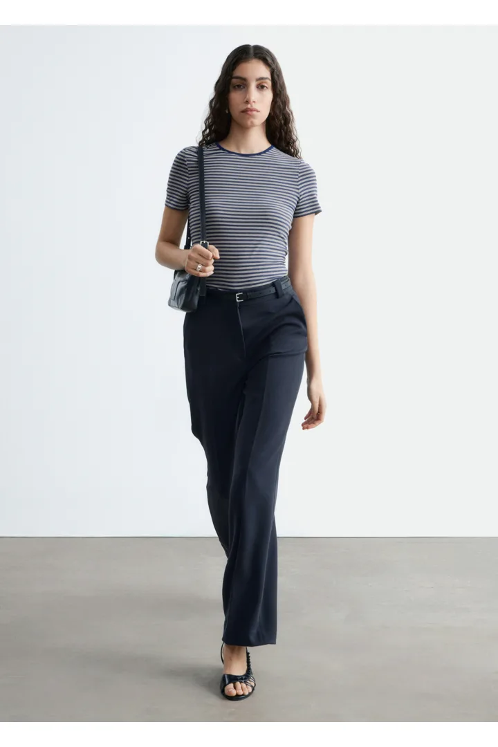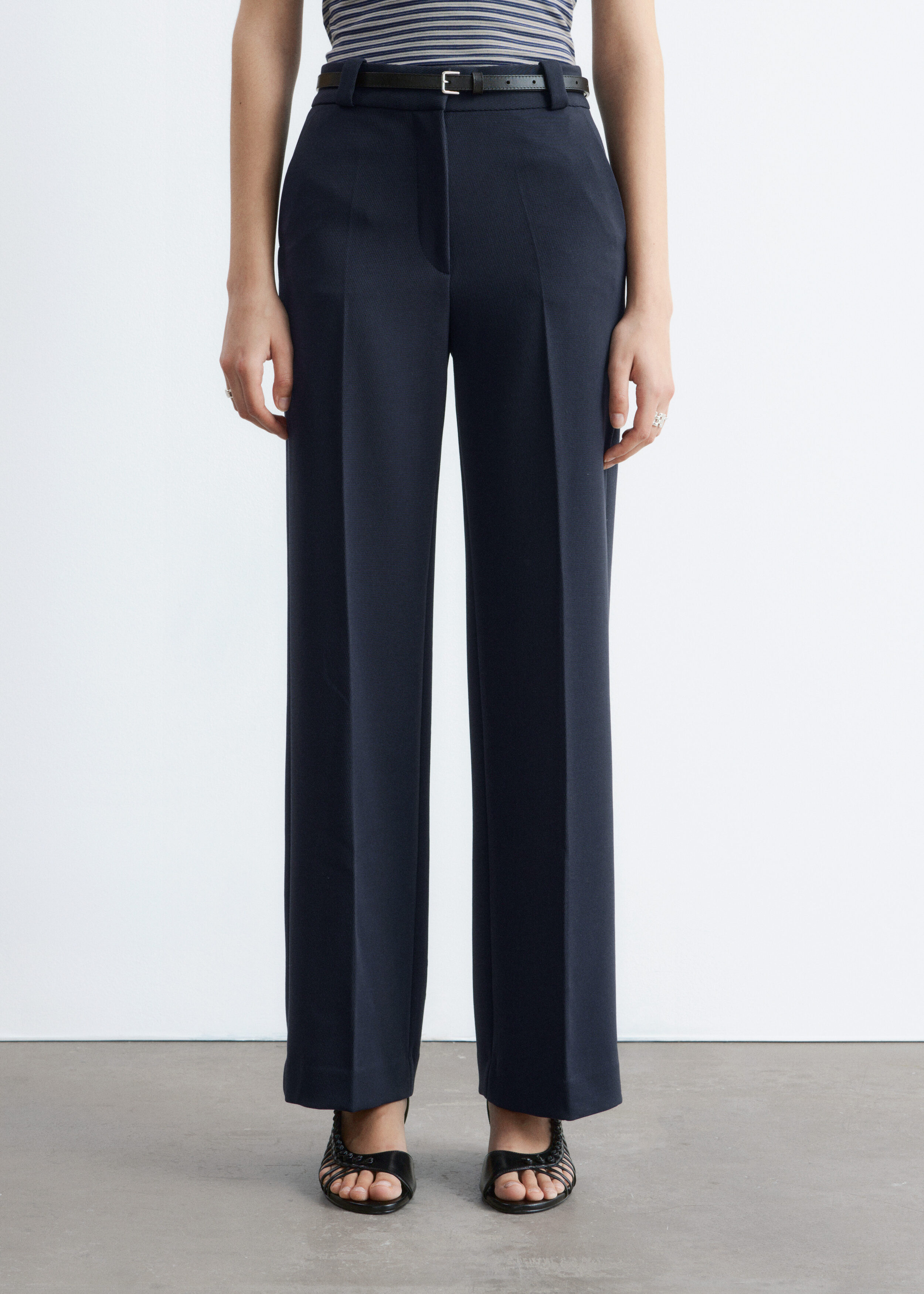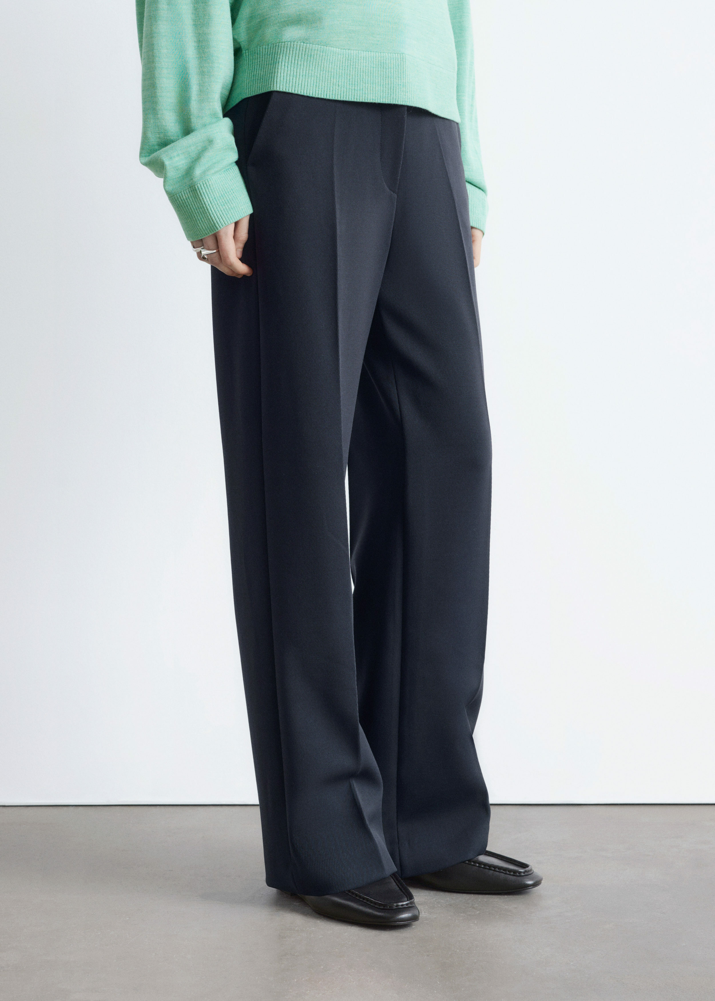 롱 스트레이트 레그가 돋보이는 트라우저예요. 깔끔한 프레스 크리스, 측면 솔기의 포켓, 뒷면에 2개의 웰트 포켓, 지퍼 플라이와 후크 앤 바 클로저가 자리해 있답니다.