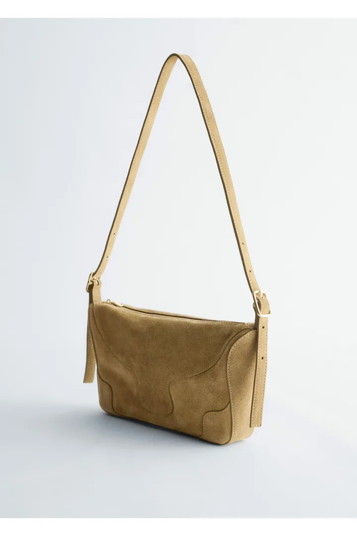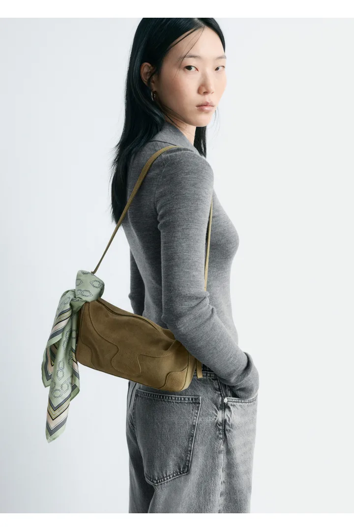 직사각 쉐입이 돋보이는 크로스바디 백이에요. 곡선진 탑스티치 솔기, 조절 가능한 긴 버클 숄더 스트랩, 지퍼 클로저가 자리해 있답니다.