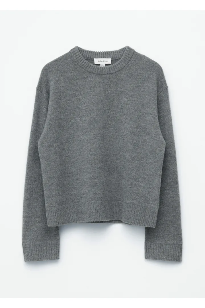 멀베리 실크 & 코튼 혼방 니트 소재의 스웨터예요. 살짝 탄탄한 텍스처가 특징이에요. 여유로운 실루엣과 클래식한 크루넥으로 레이어링하기에 좋답니다.