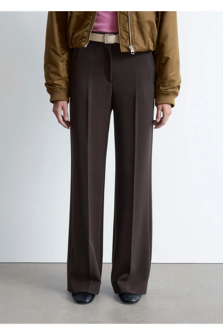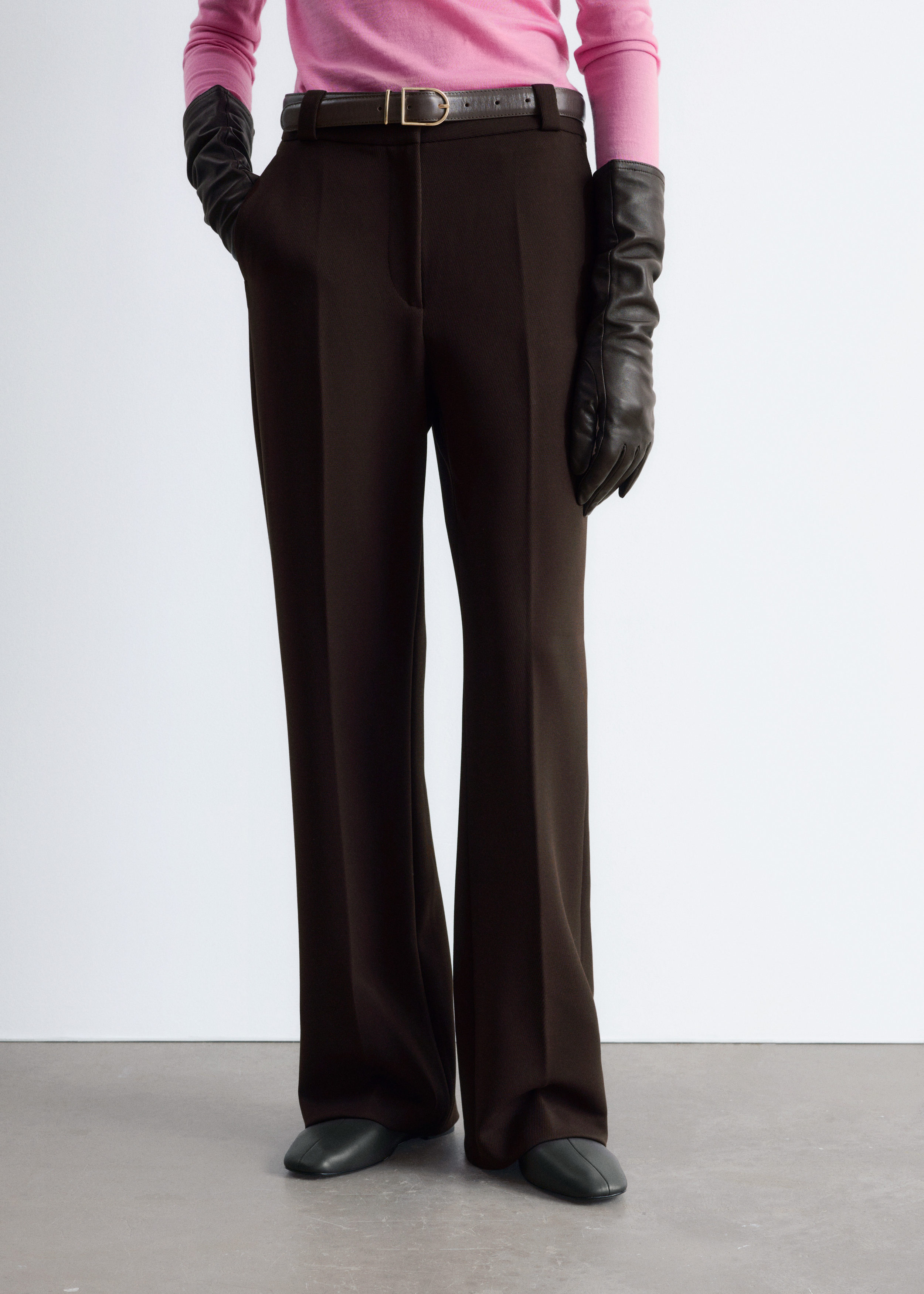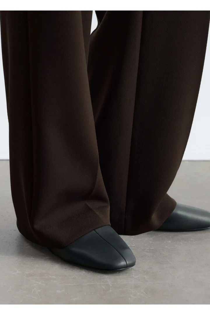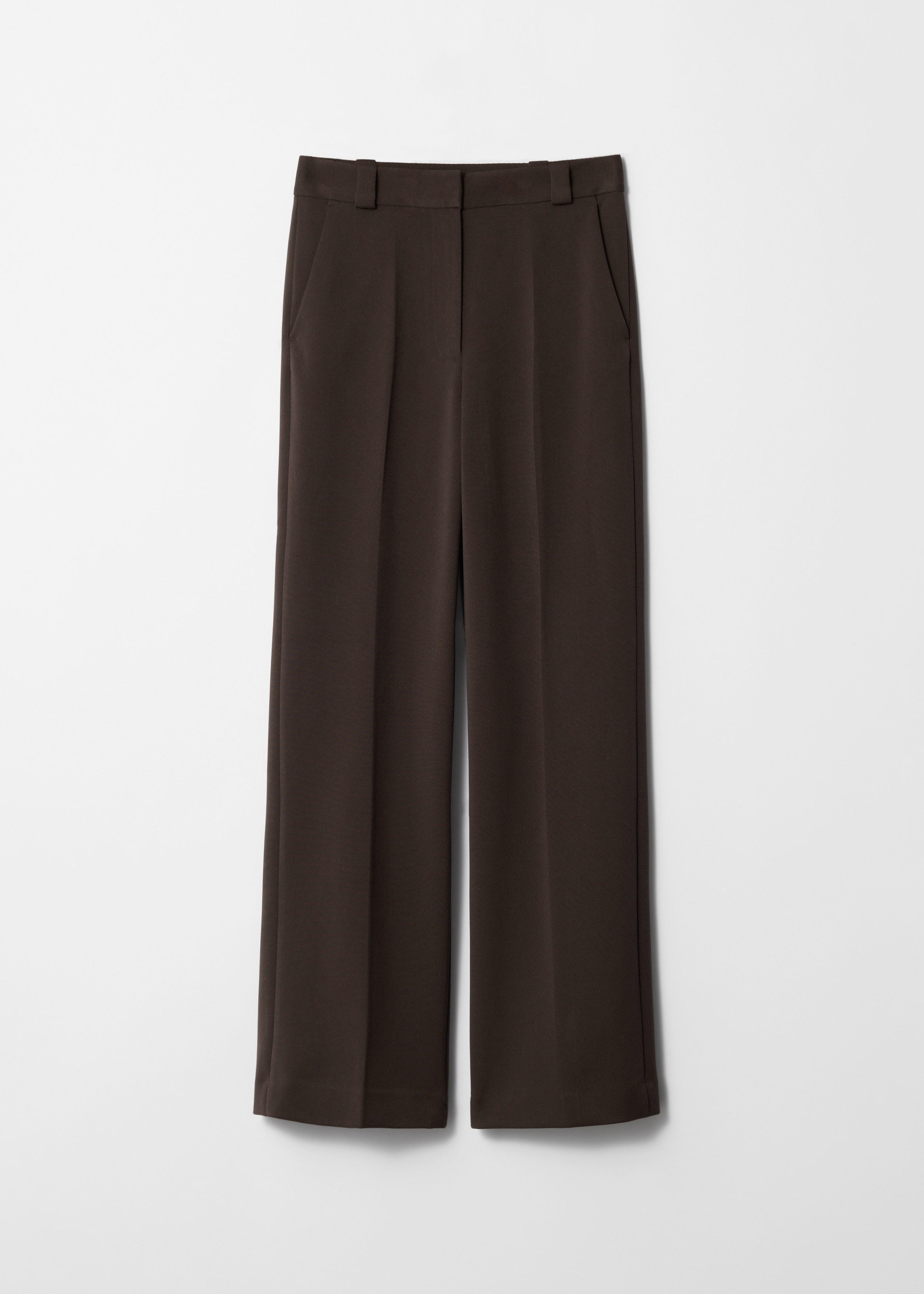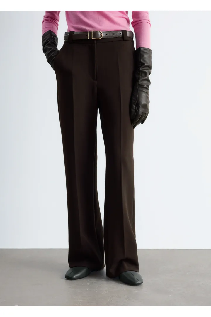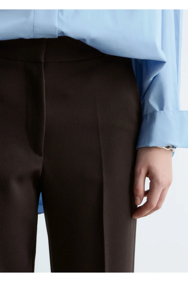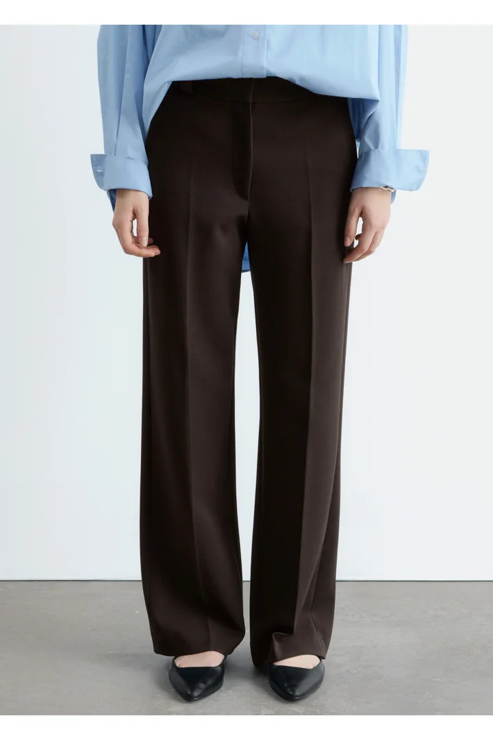 롱 스트레이트 레그가 돋보이는 트라우저예요. 깔끔한 프레스 크리스, 측면 솔기의 포켓, 뒷면에 2개의 웰트 포켓, 지퍼 플라이와 후크 앤 바 클로저가 자리해 있답니다.