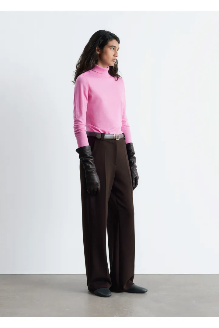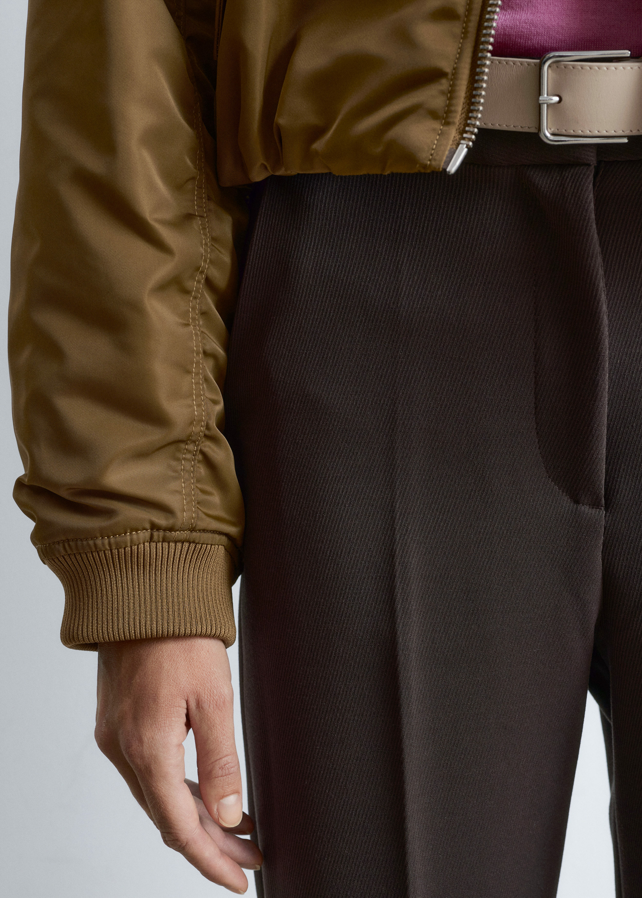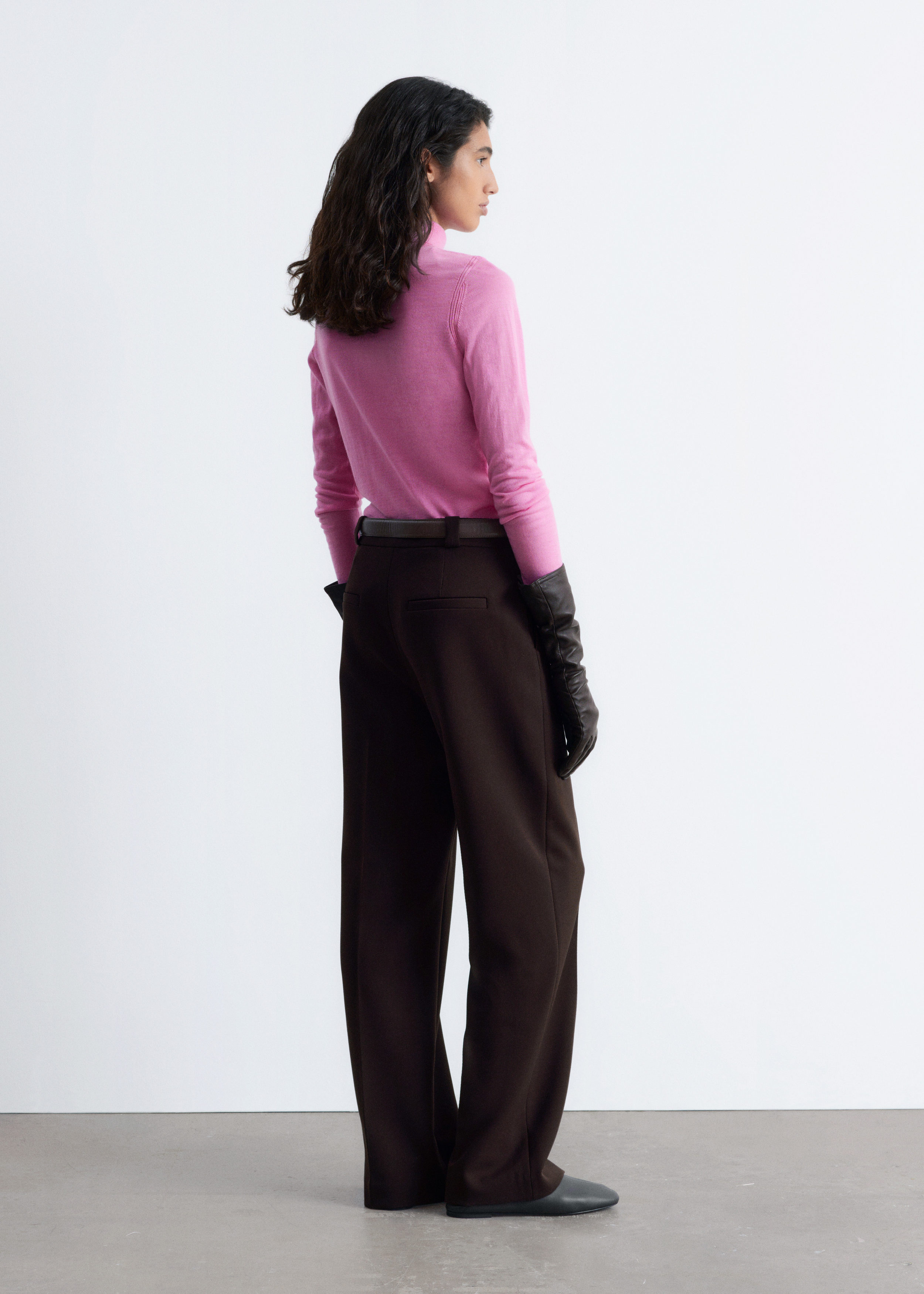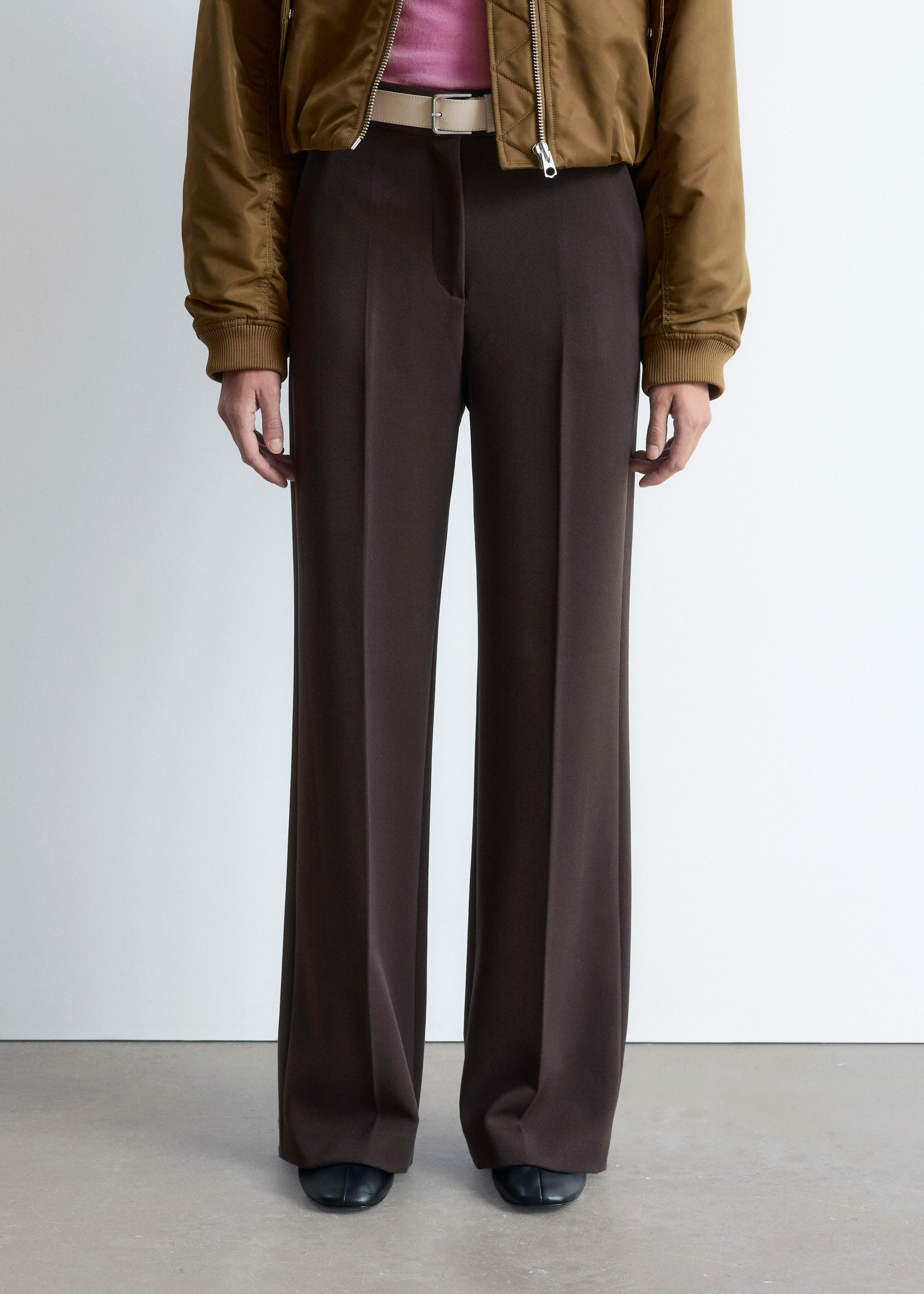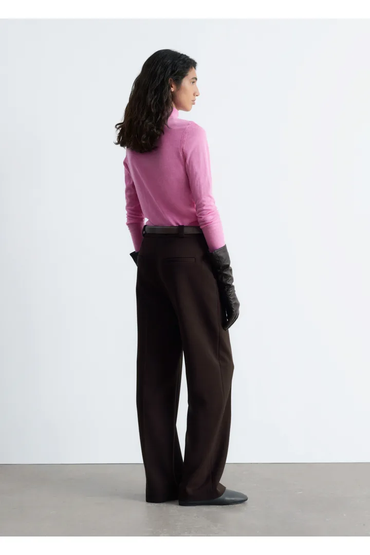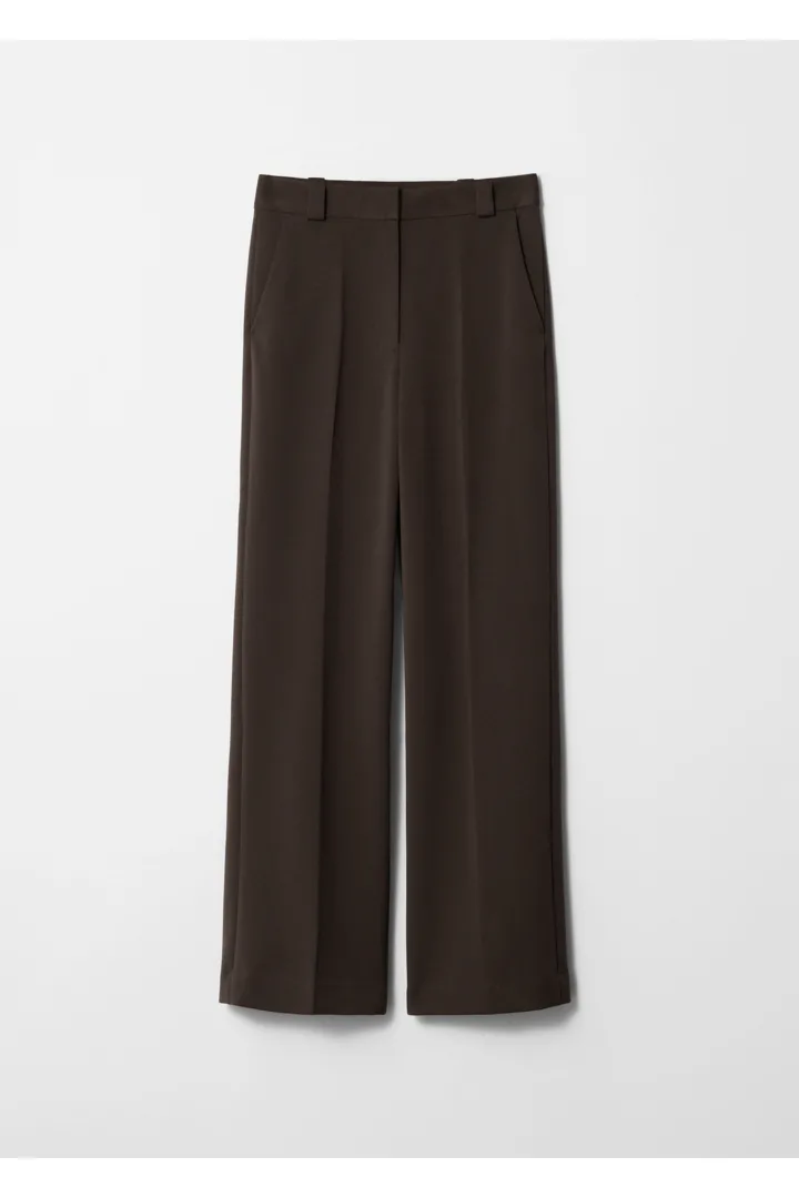 롱 스트레이트 레그가 돋보이는 트라우저예요. 깔끔한 프레스 크리스, 측면 솔기의 포켓, 뒷면에 2개의 웰트 포켓, 지퍼 플라이와 후크 앤 바 클로저가 자리해 있답니다.