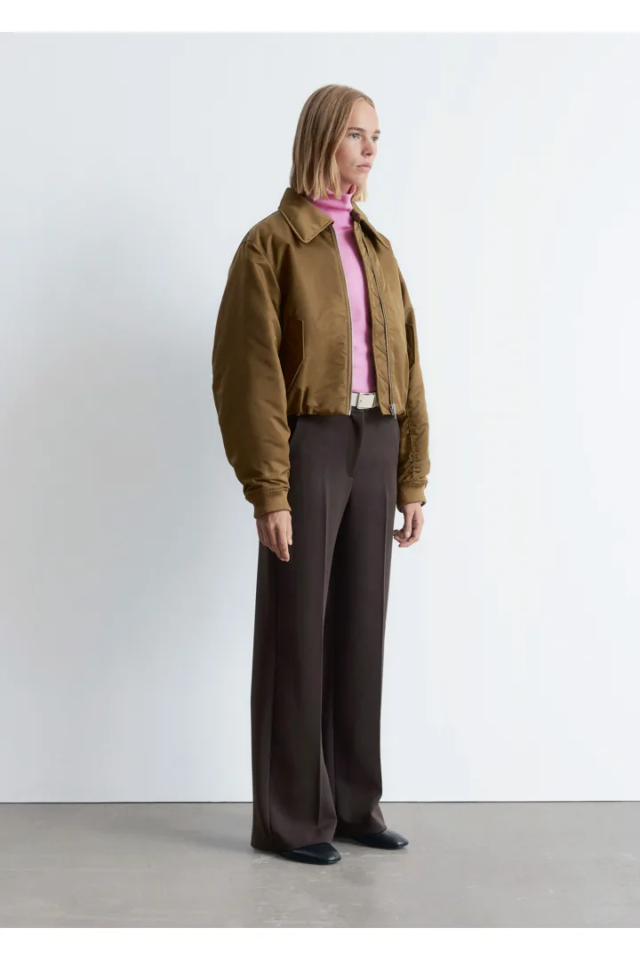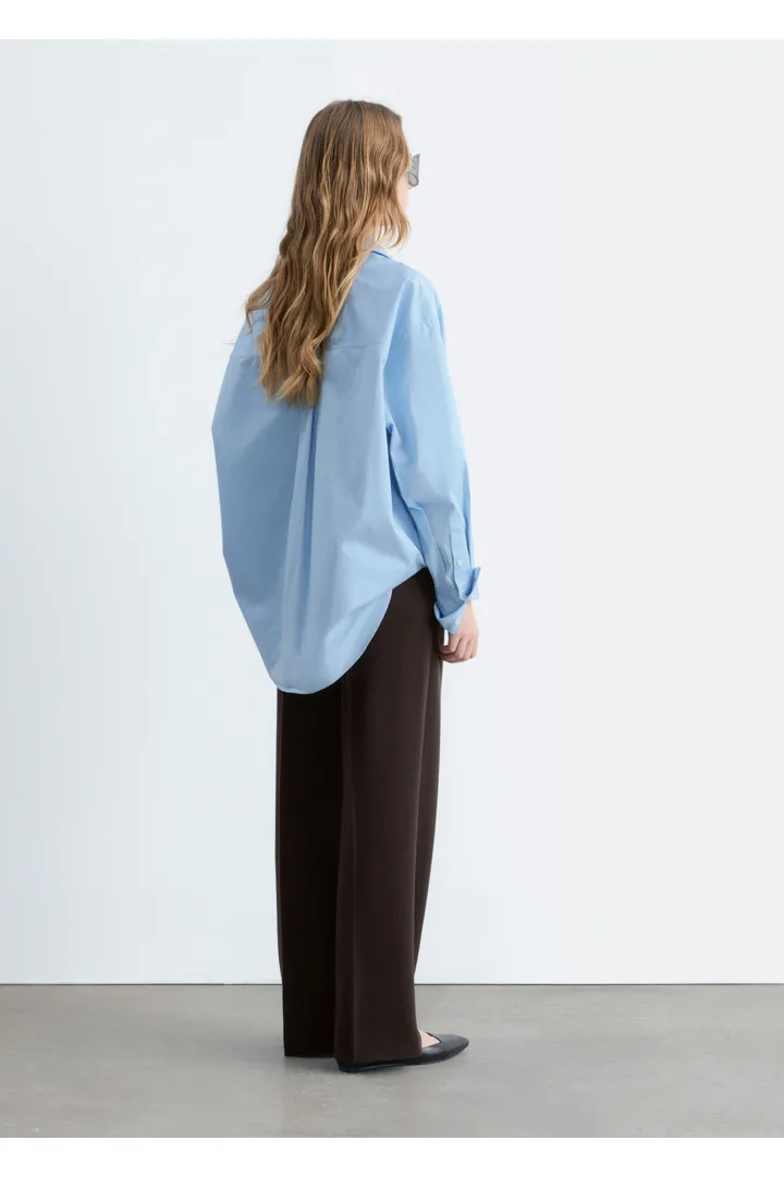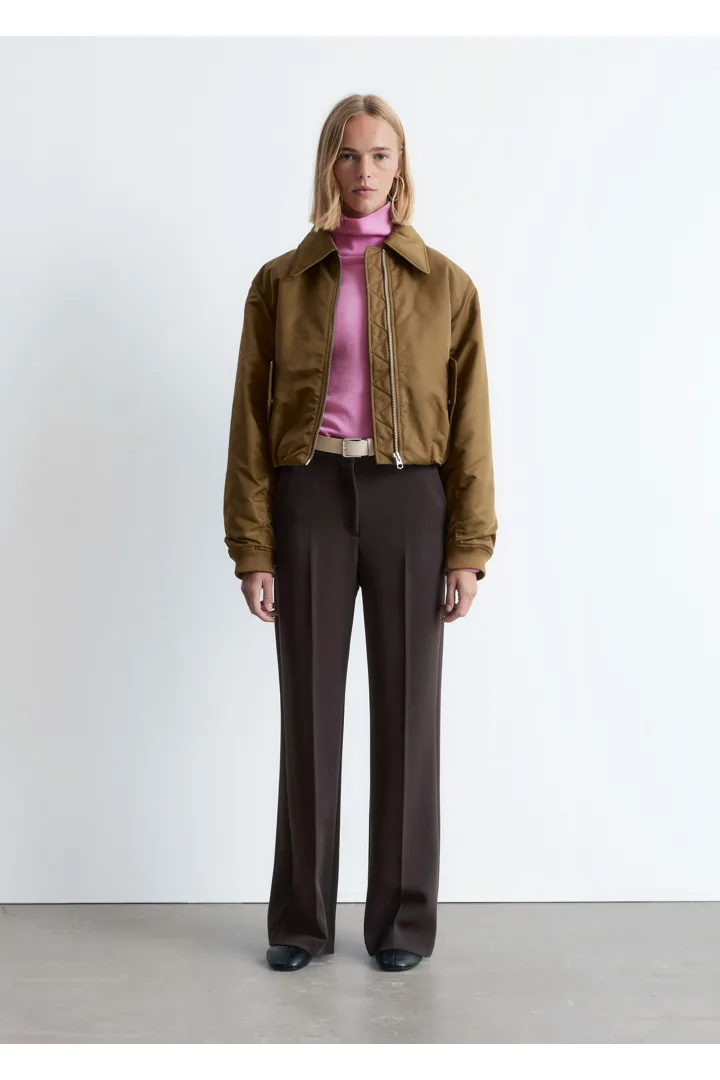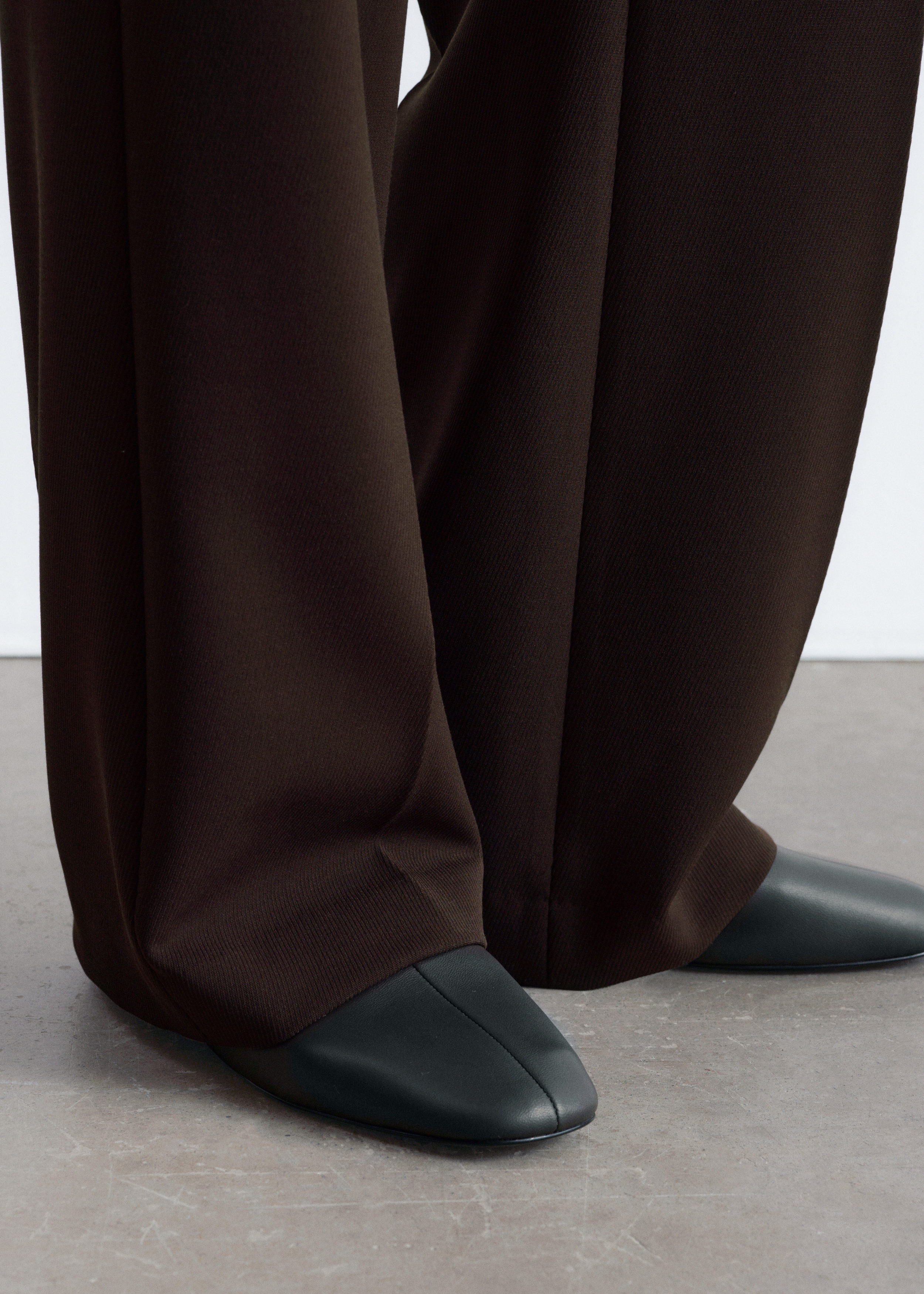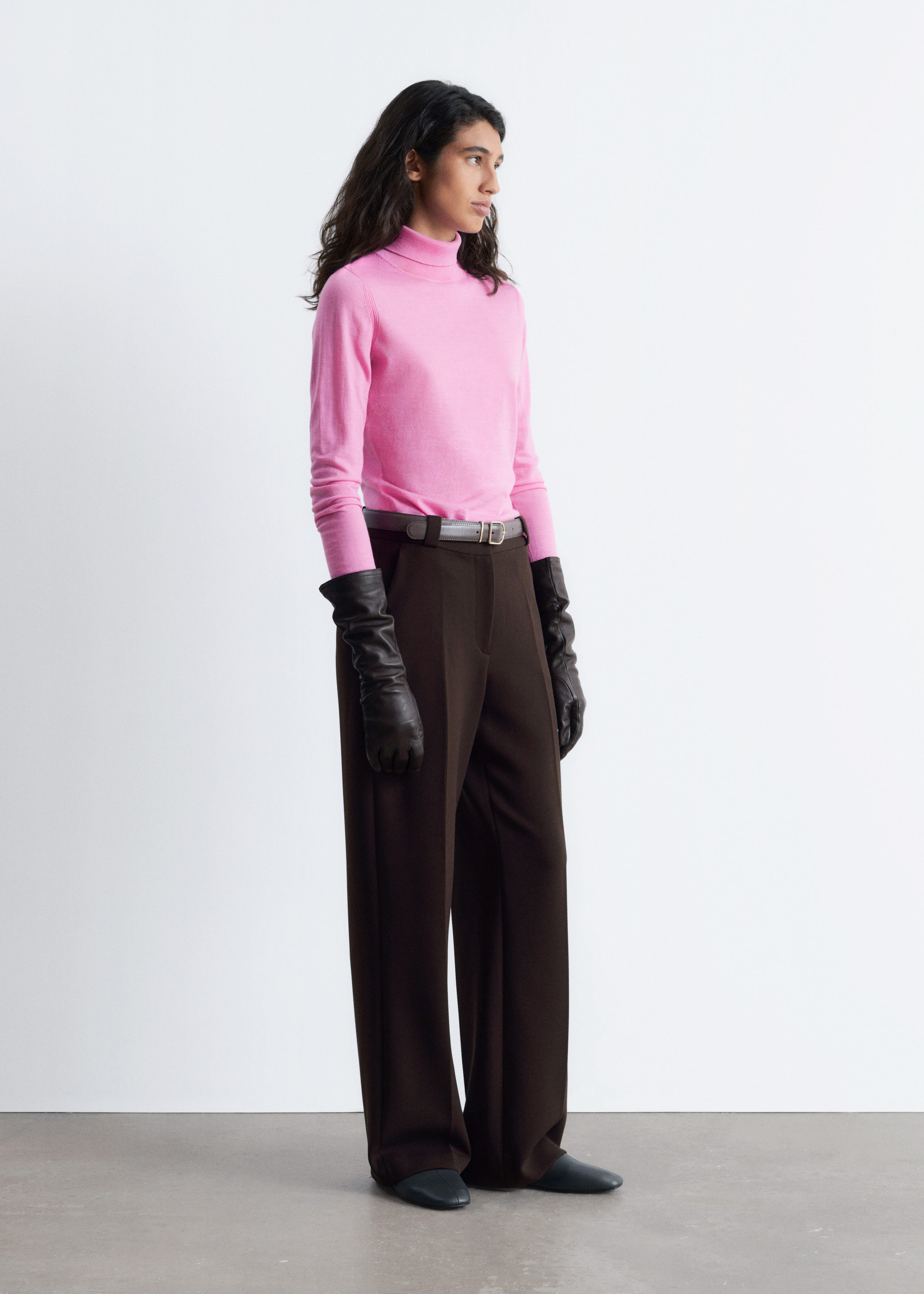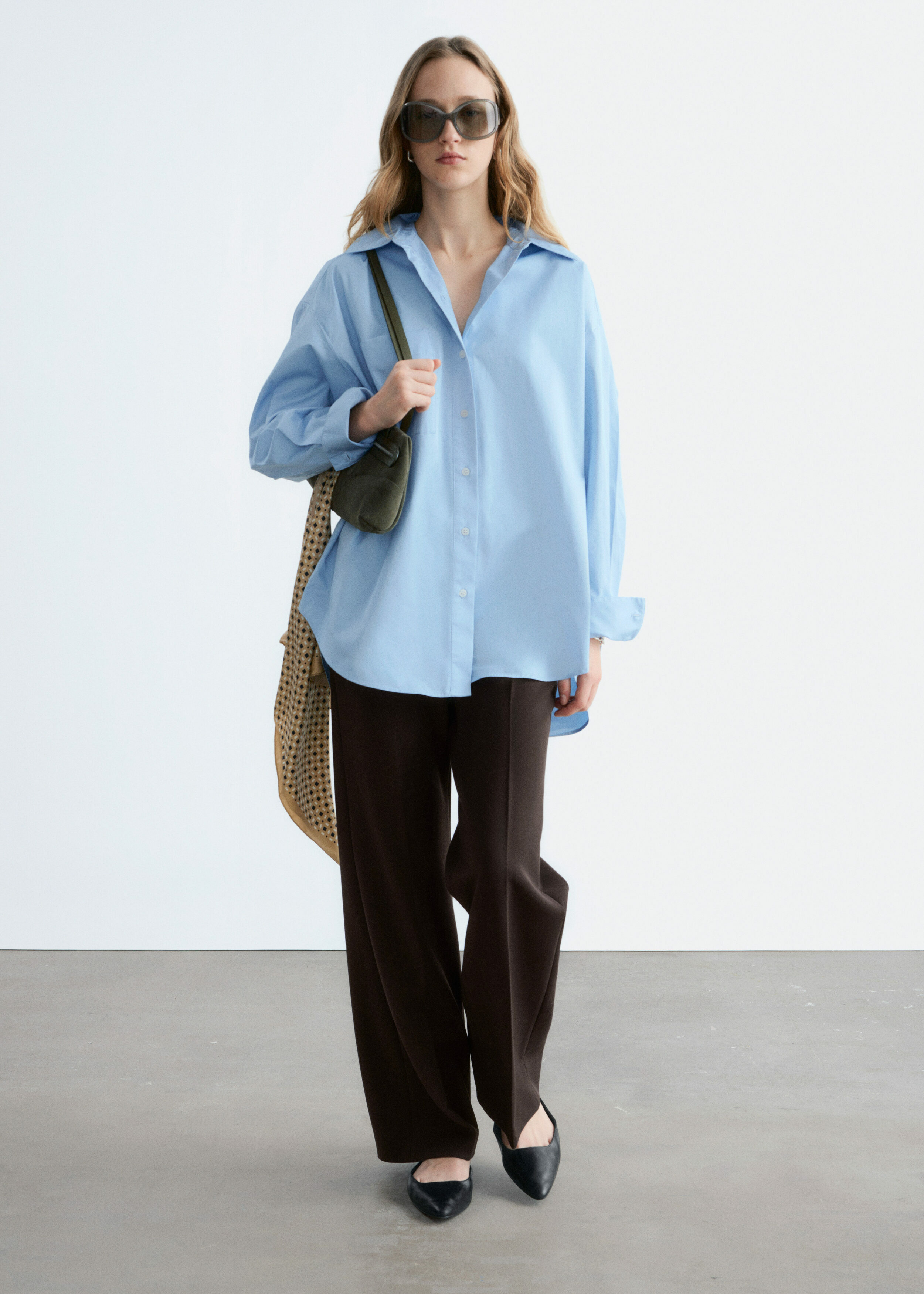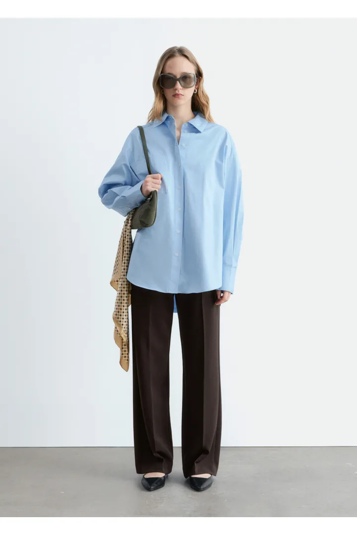롱 스트레이트 레그가 돋보이는 트라우저예요. 깔끔한 프레스 크리스, 측면 솔기의 포켓, 뒷면에 2개의 웰트 포켓, 지퍼 플라이와 후크 앤 바 클로저가 자리해 있답니다.