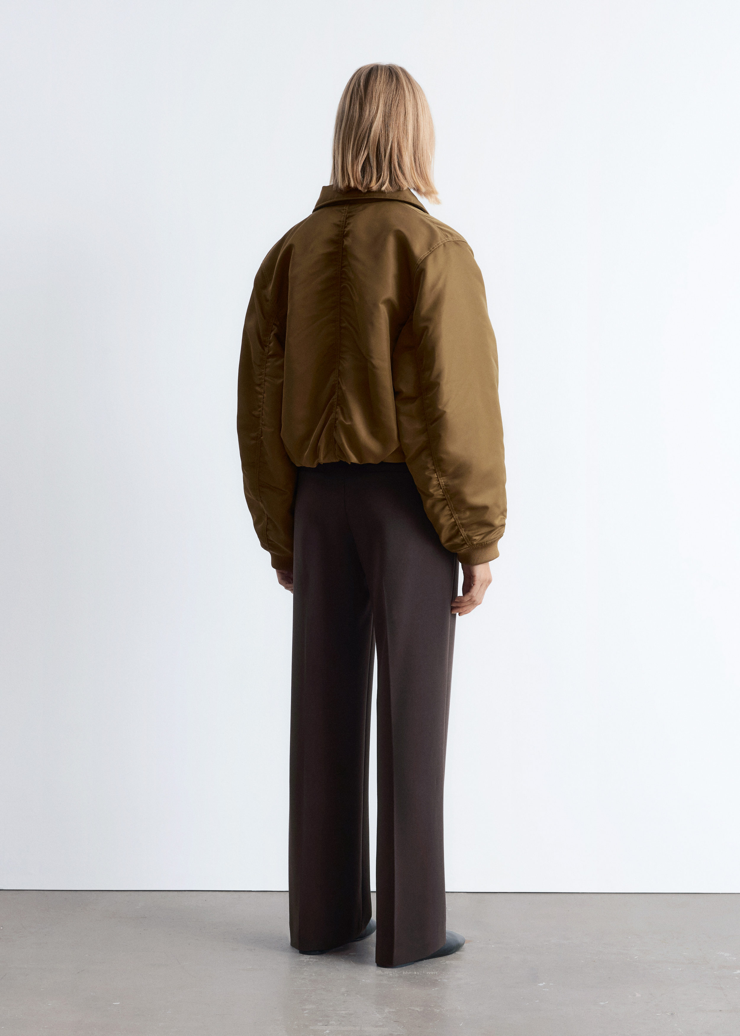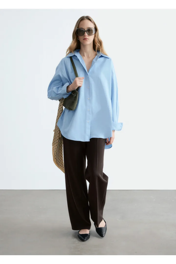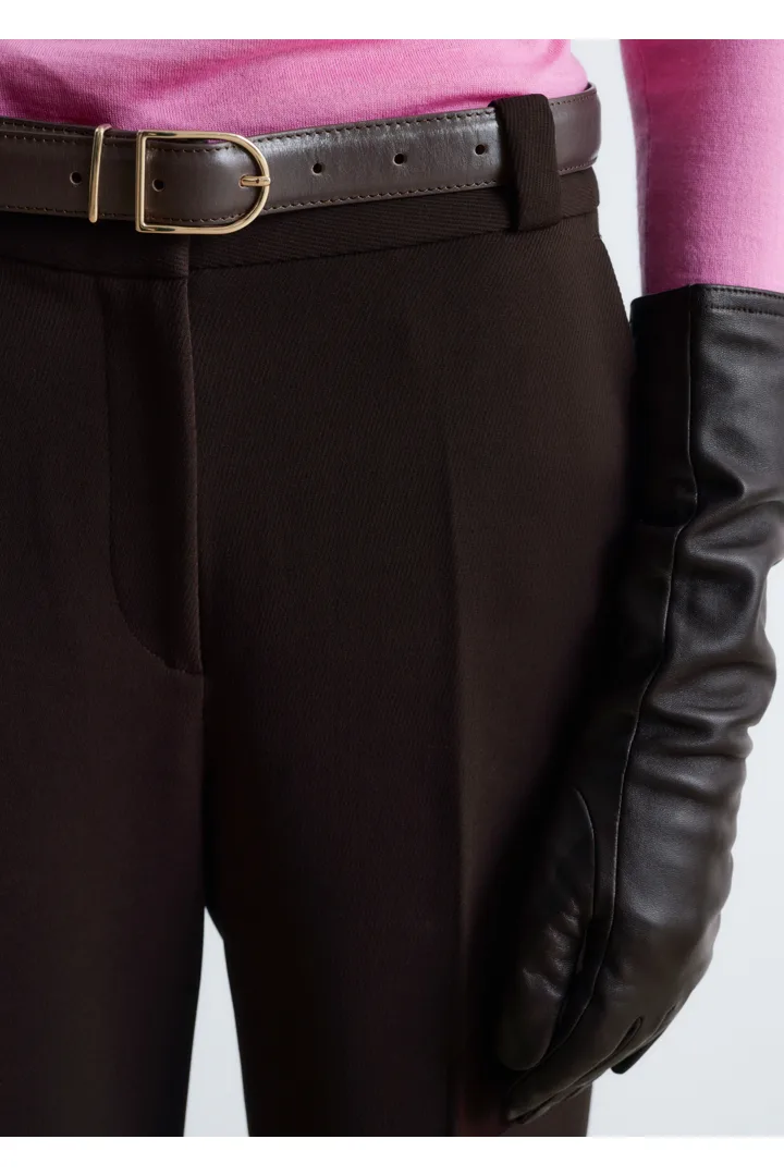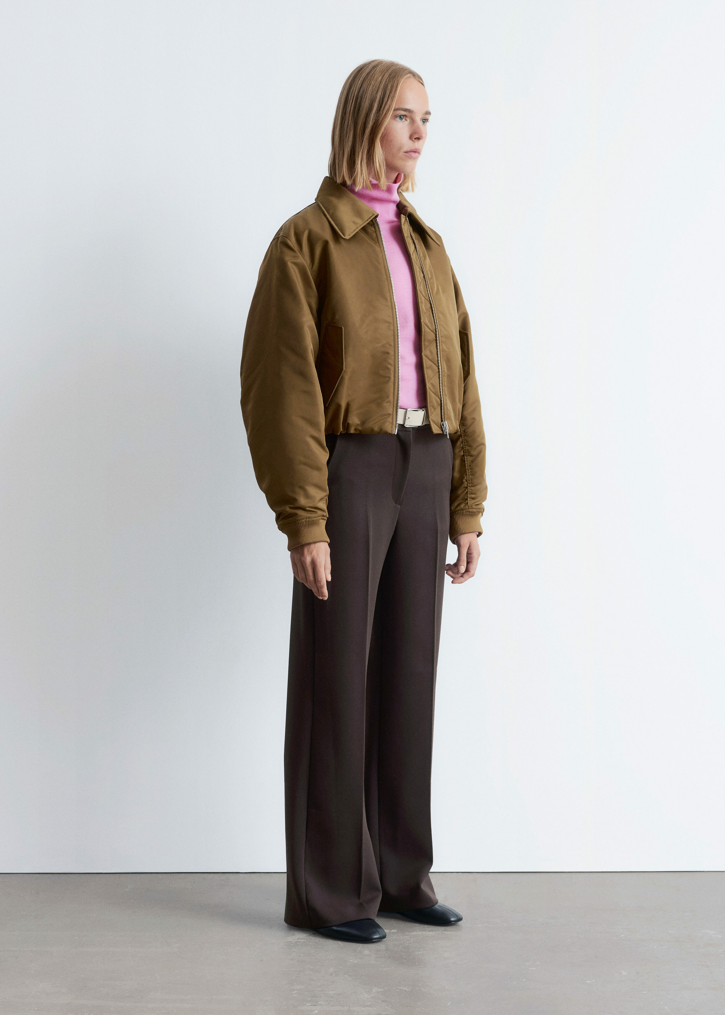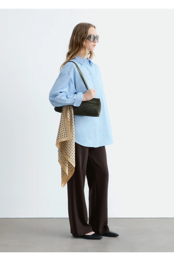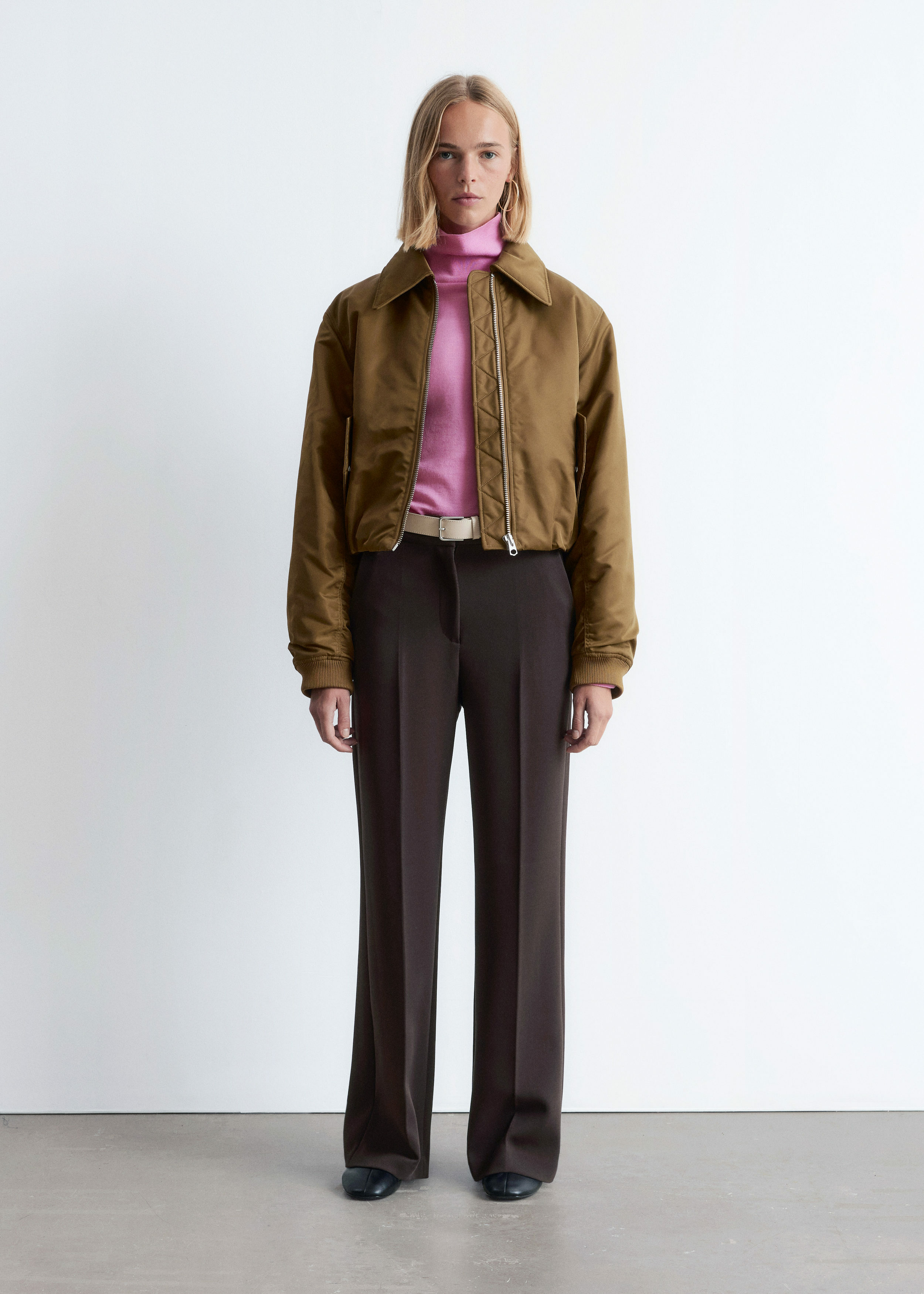 롱 스트레이트 레그가 돋보이는 트라우저예요. 깔끔한 프레스 크리스, 측면 솔기의 포켓, 뒷면에 2개의 웰트 포켓, 지퍼 플라이와 후크 앤 바 클로저가 자리해 있답니다.