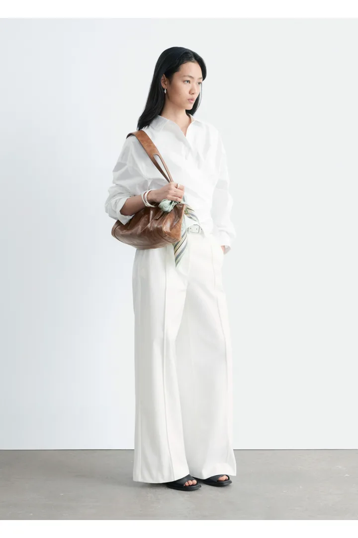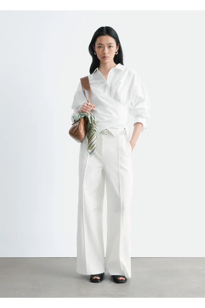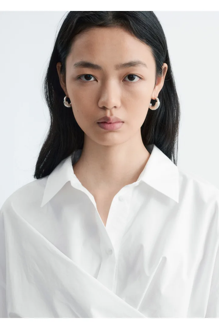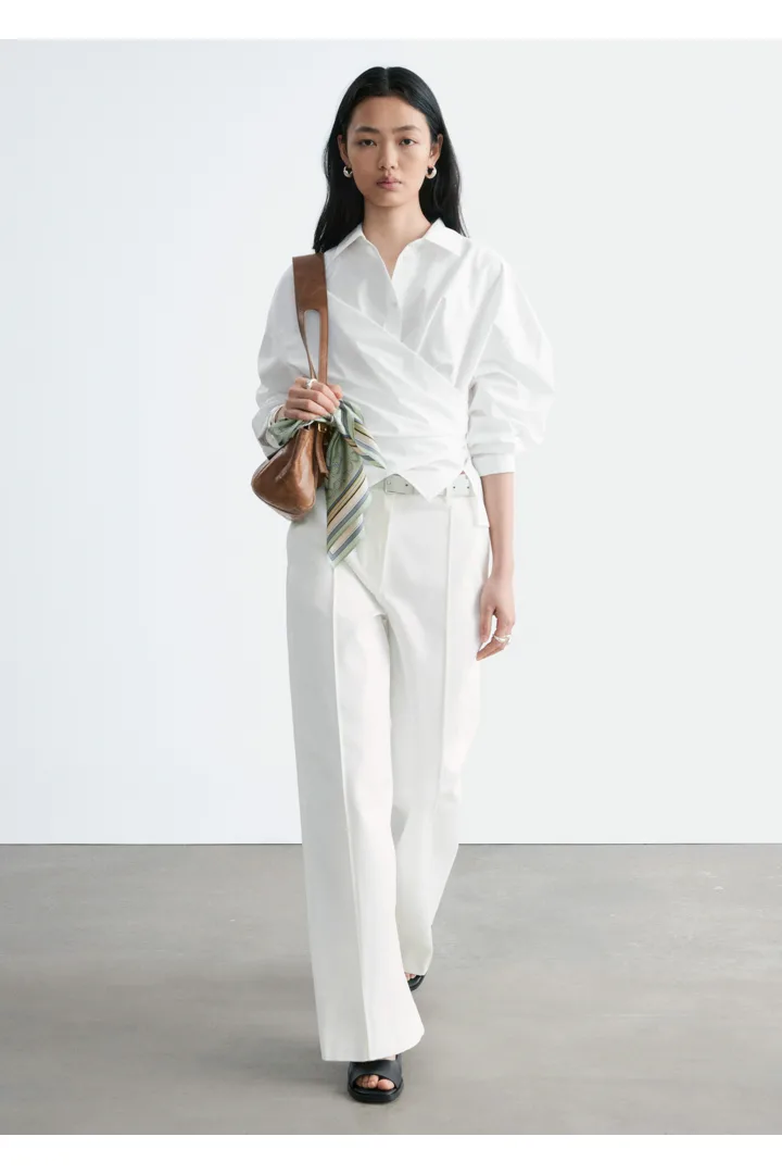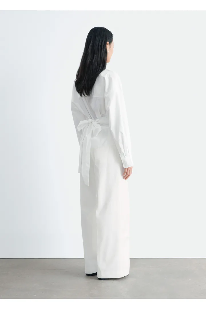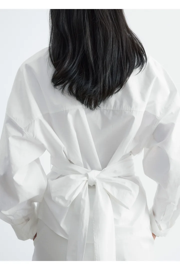 모던 테일러링을 새롭게 재해석한 셔츠예요. 100% 코튼 소재로 탄생했으며 크롭 실루엣이 특징이랍니다. 랩 스타일의 앞면 디자인은 허리에서 묶어 여성스러운 실루엣을 부드럽게 강조할 수 있답니다.