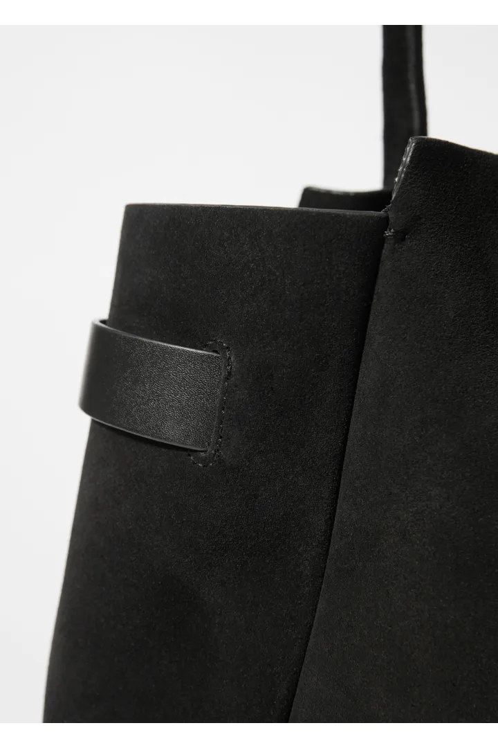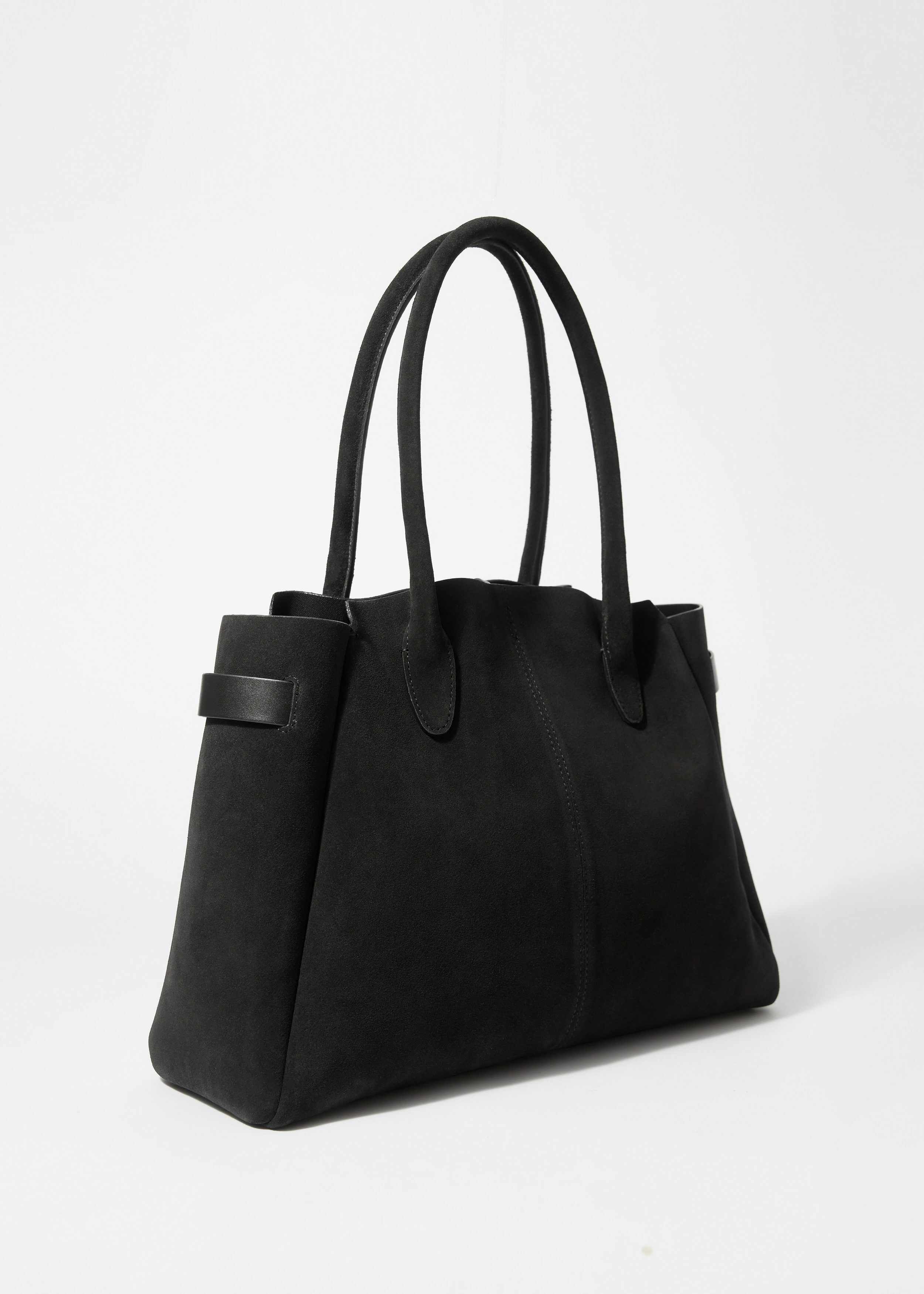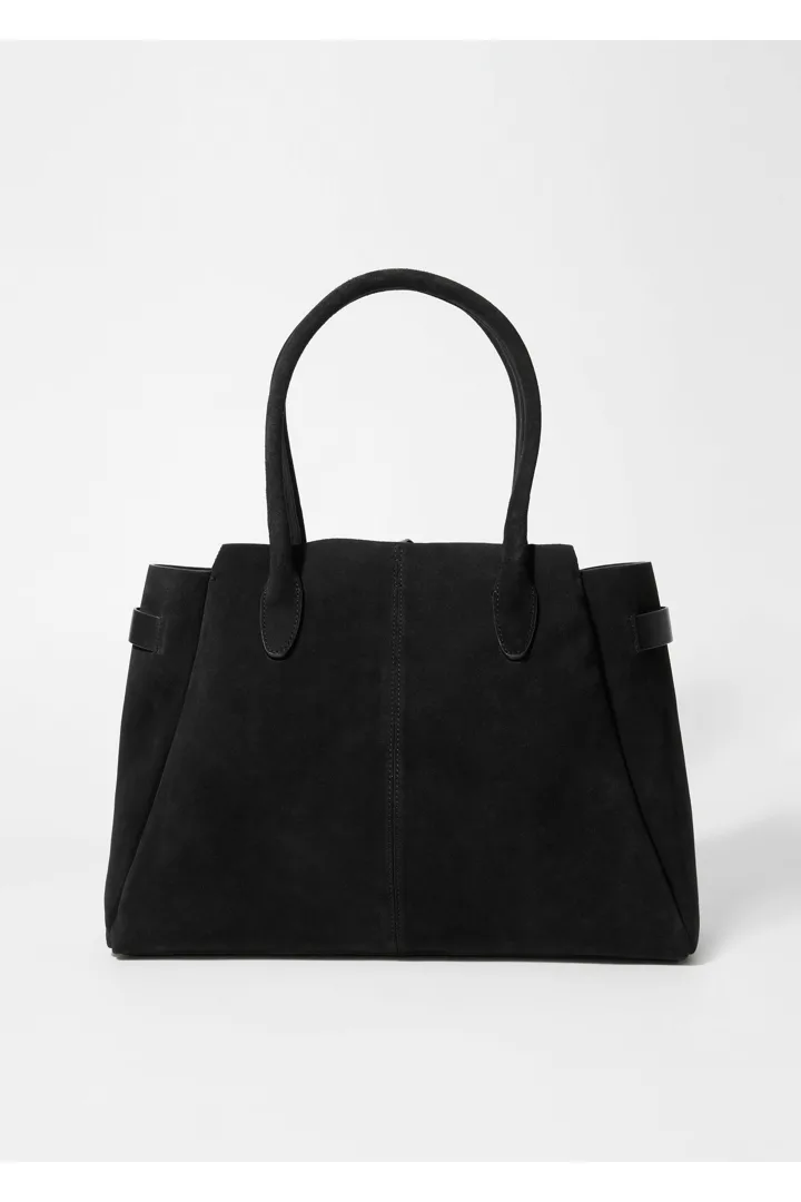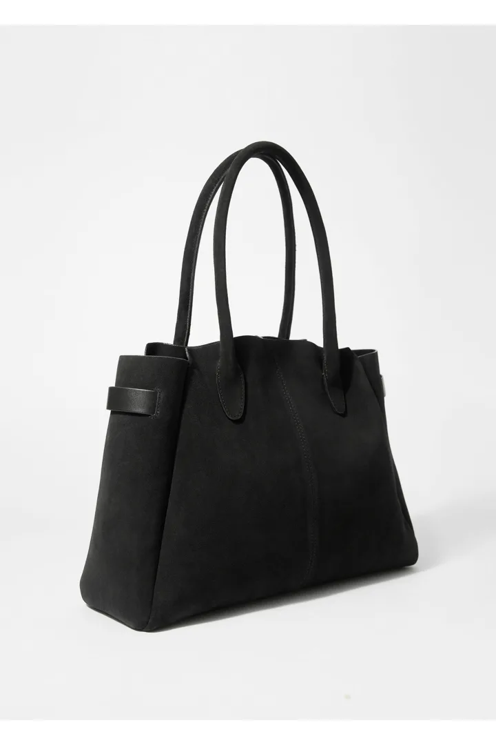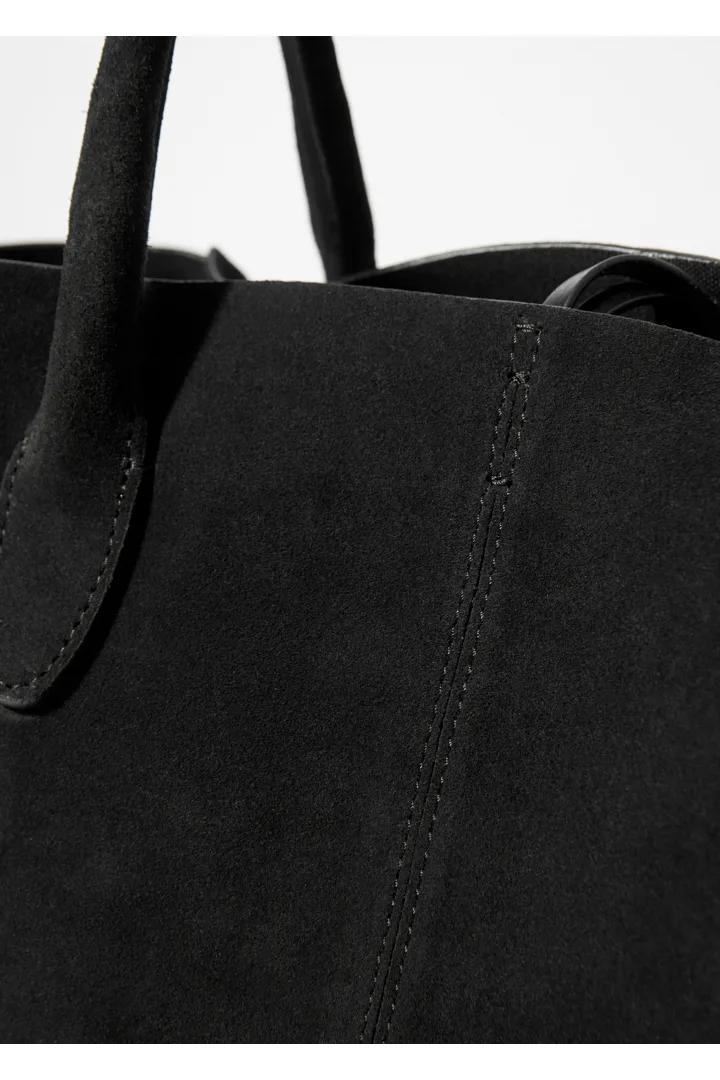 활용성이 뛰어난 넉넉한 토트 백이에요. 서로 다른 길이감의 핸들 2쌍으로 두 가지 스타일로 연출이 가능하답니다. 섬세한 타이로 입구를 안전하게 여밀 수 있으며, 작은 소지품 수납을 위한 이너 포켓이 자리해 있어요.