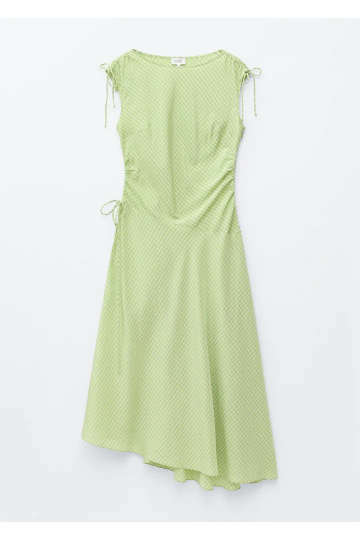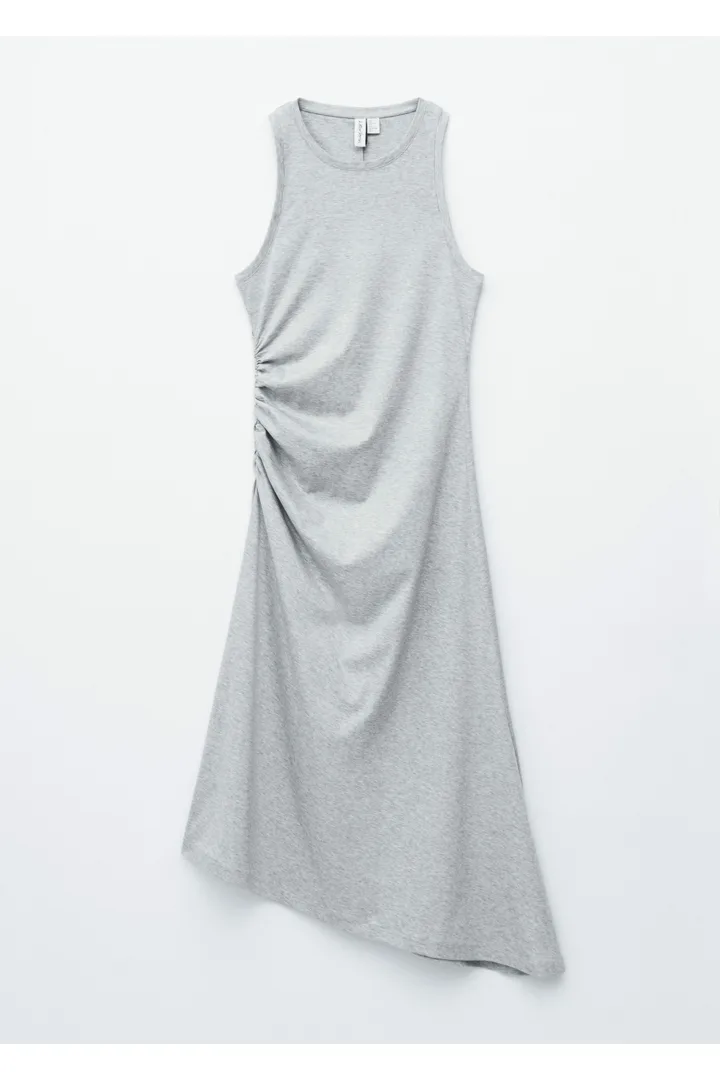 유려한 비스코스 소재로 탄생한 슬리브리스 미디 드레스예요. 부드러운 드레이핑과 비대칭 컷이 돋보이는 아이템이랍니다. 어깨의 드로스트링으로 스타일을 살짝 조절할 수 있으며, 가슴 다트로 장교한 핏을 연출해주어요. 허리 옆면의 셔링과 드롭 웨이스트라인으로 스커트에 경쾌한 움직임을 더해준답니다.