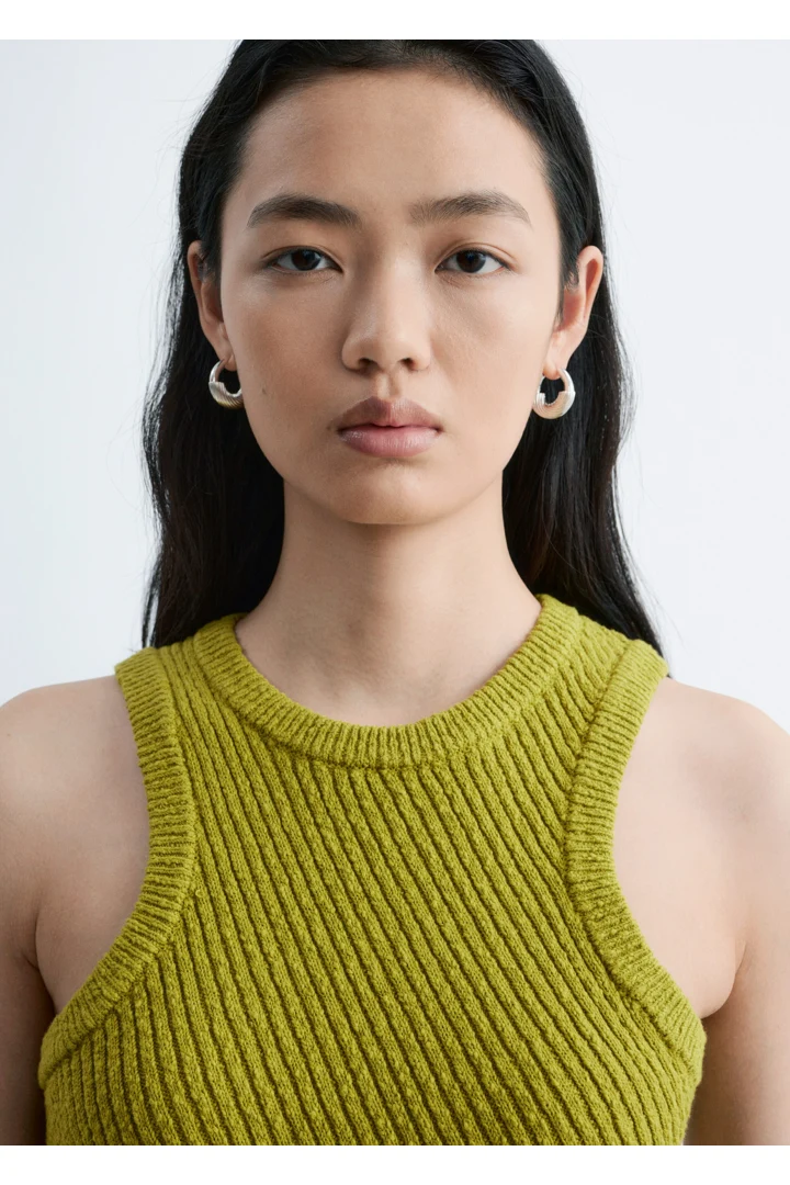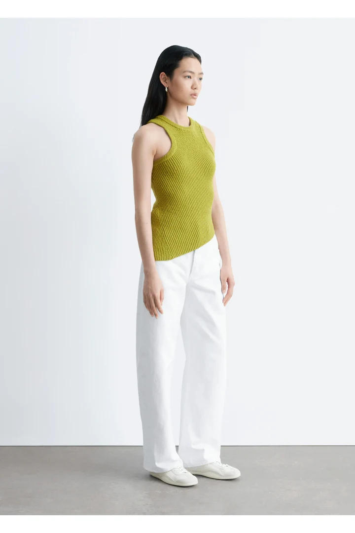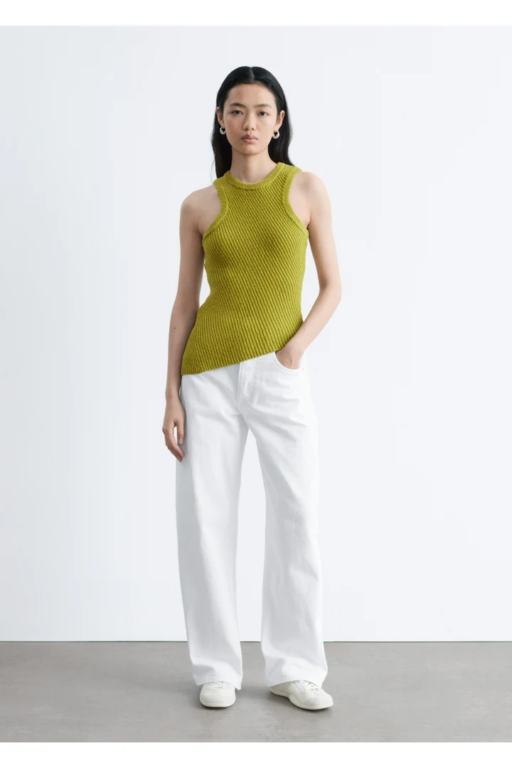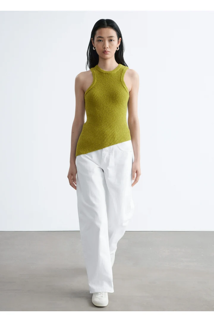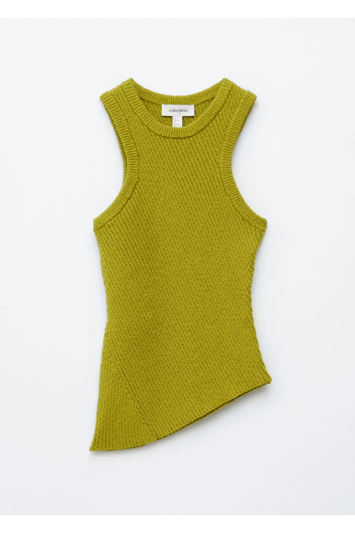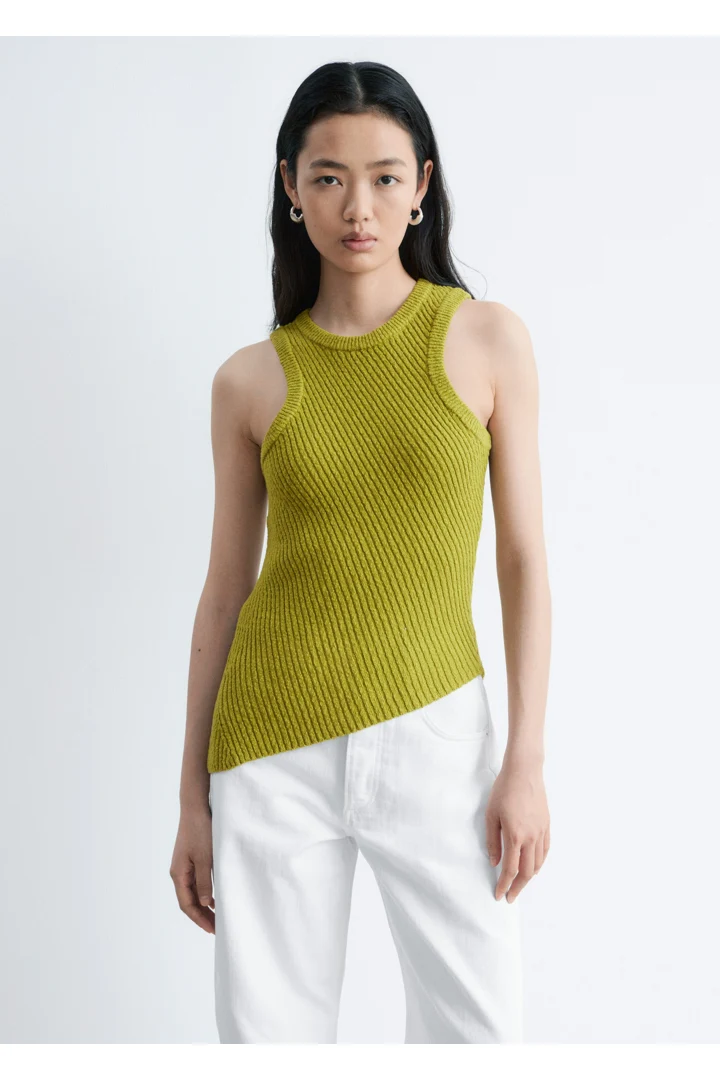 핏 되는 실루엣의 탱크 탑이에요. 사선의 립 디테일이 자리한 탄탄한 니트 소재로 탄생하여 은은한 텍스처와 구조감을 연출한답니다. 깔끔한 라인과 비대칭적인 밑단이 어우러져 섬세하고 모던한 분위기를 연출해요. 쉐입감이 돋보이며, 다양한 스타일 연출이 가능한 기본 아이템이랍니다.