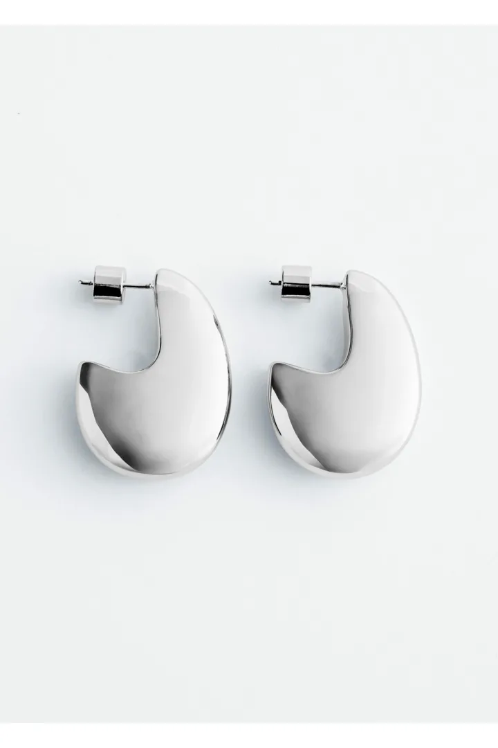 유광 브라스 소재로 탄생한 이어링이에요. 구조적이고 청키한 드롭렛 쉐입이 매력적이며, 푸시백 클로저로 안정적인 핏을 제공한답니다.