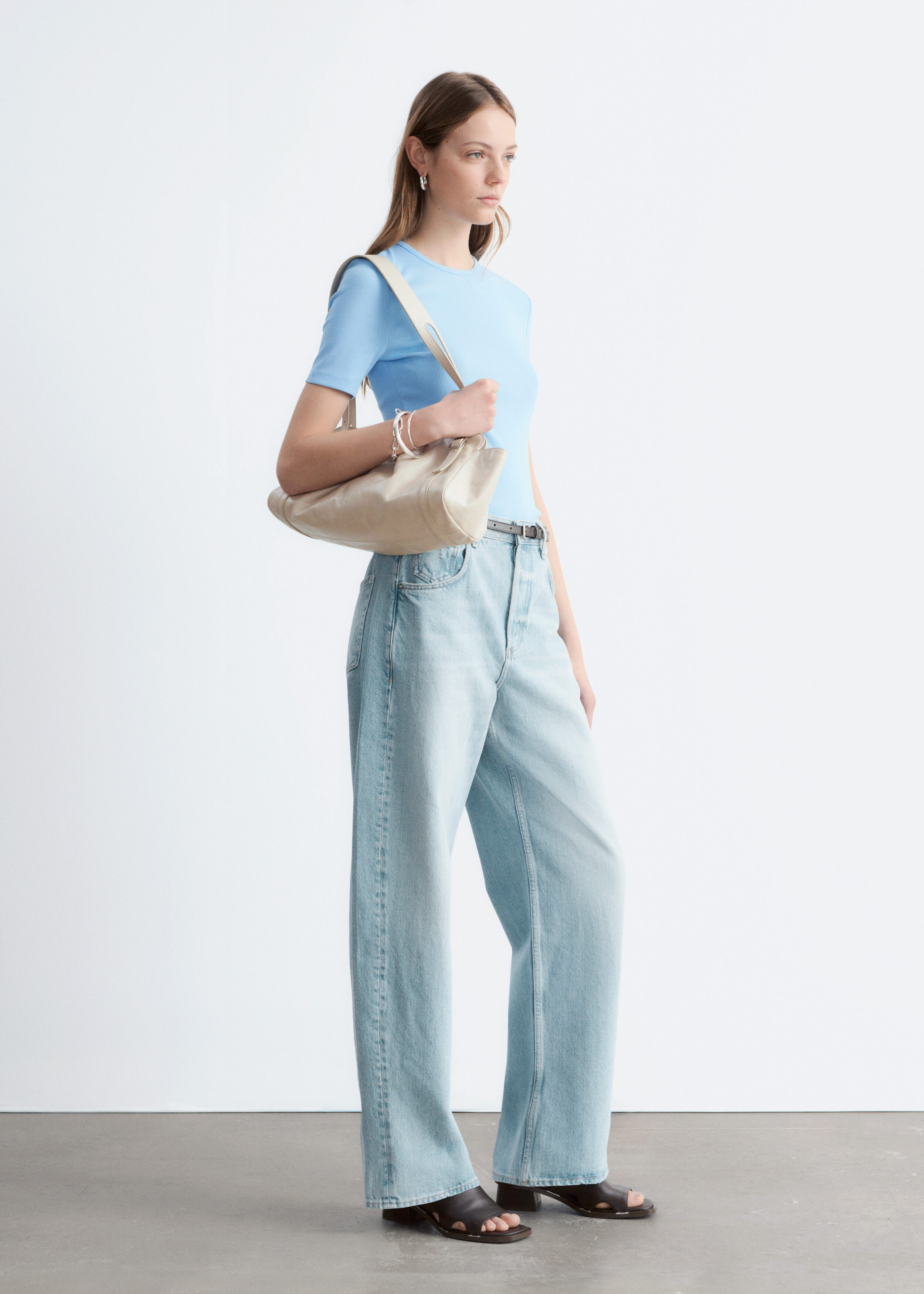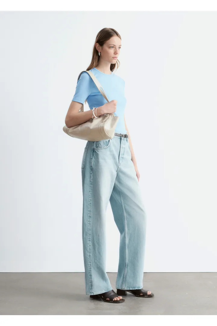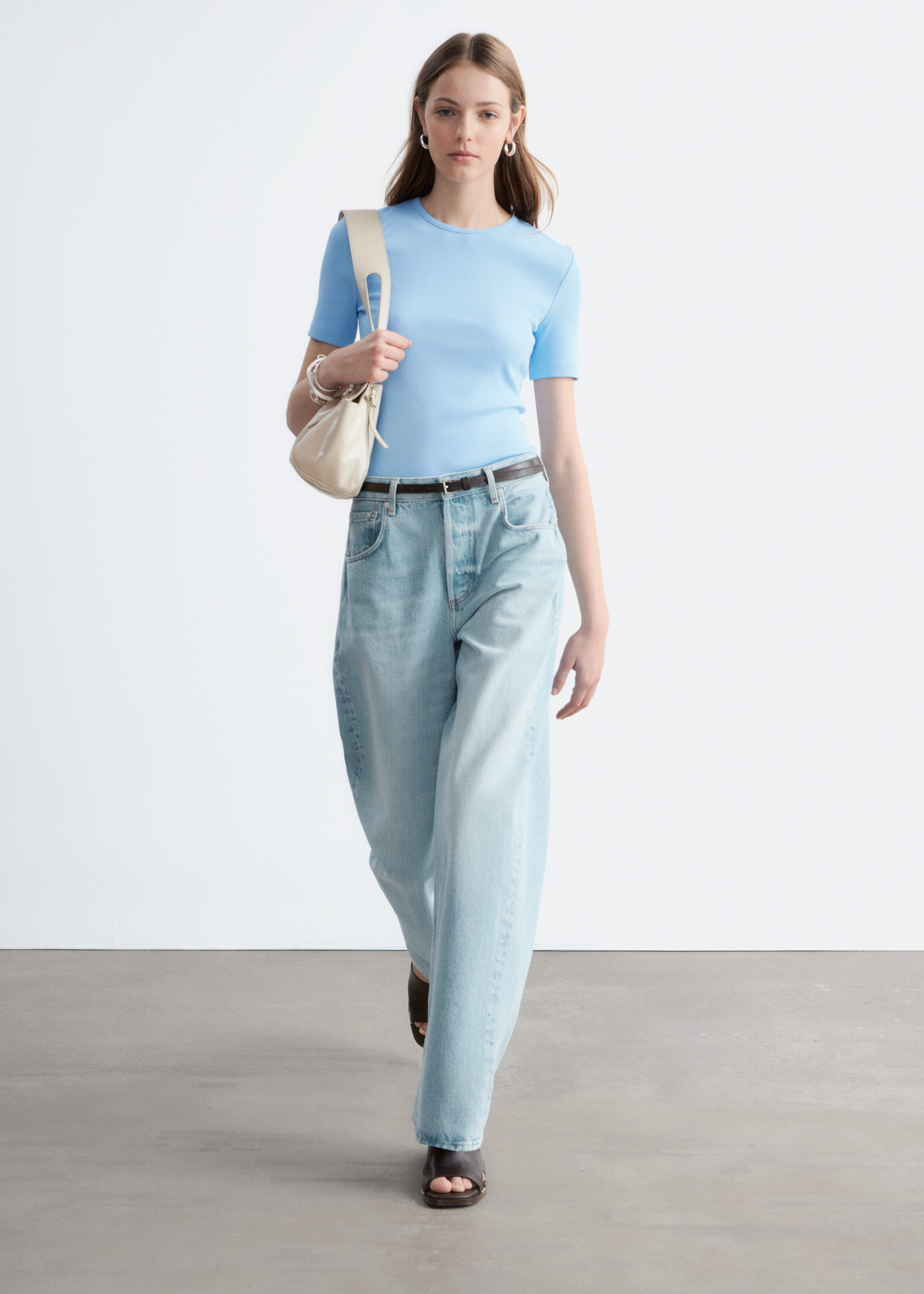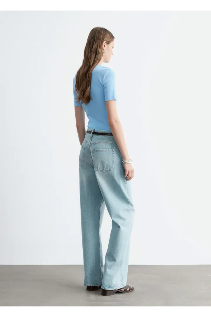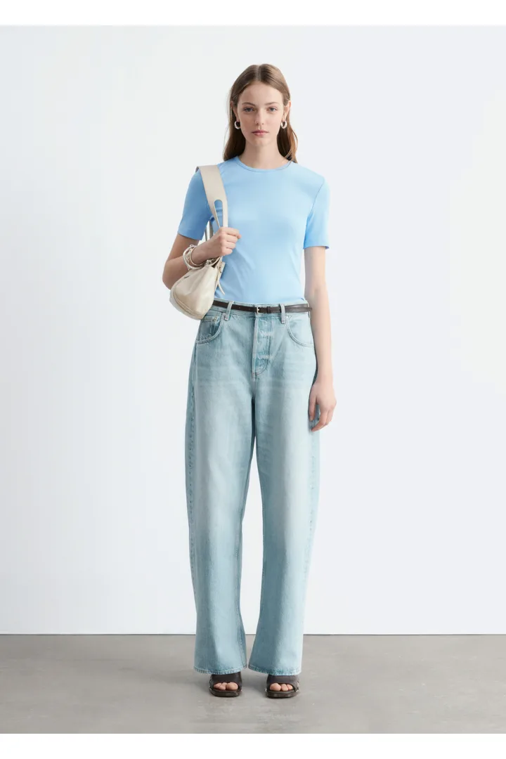 부드럽고 신축성 좋은 코튼 혼방 소재의 립 티셔츠예요. 슬림한 실루엣, 라운드 넥, 쇼트 슬리브가 특징이에요. 데님 진 또는 미니 스커트와 매치해 보세요.