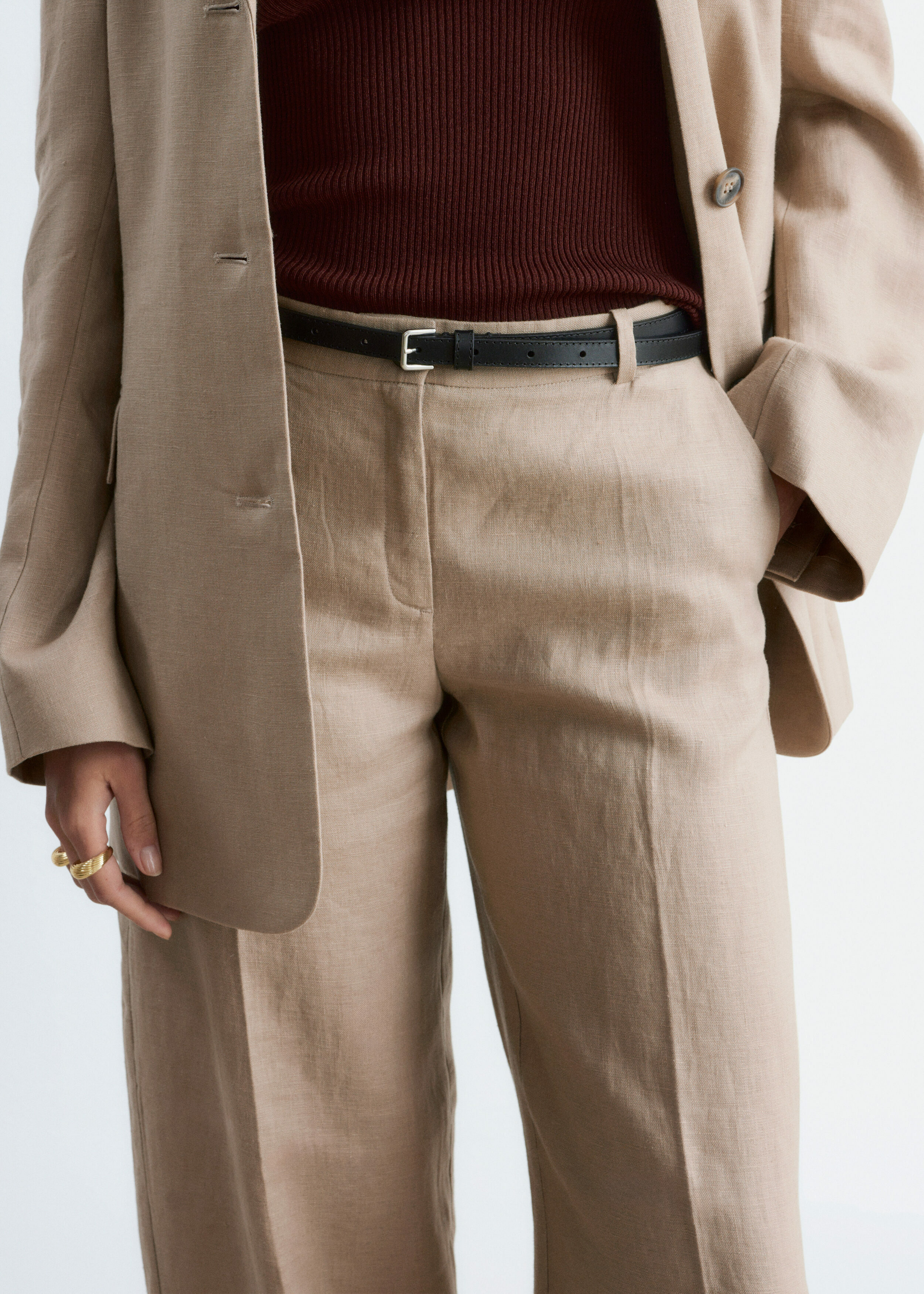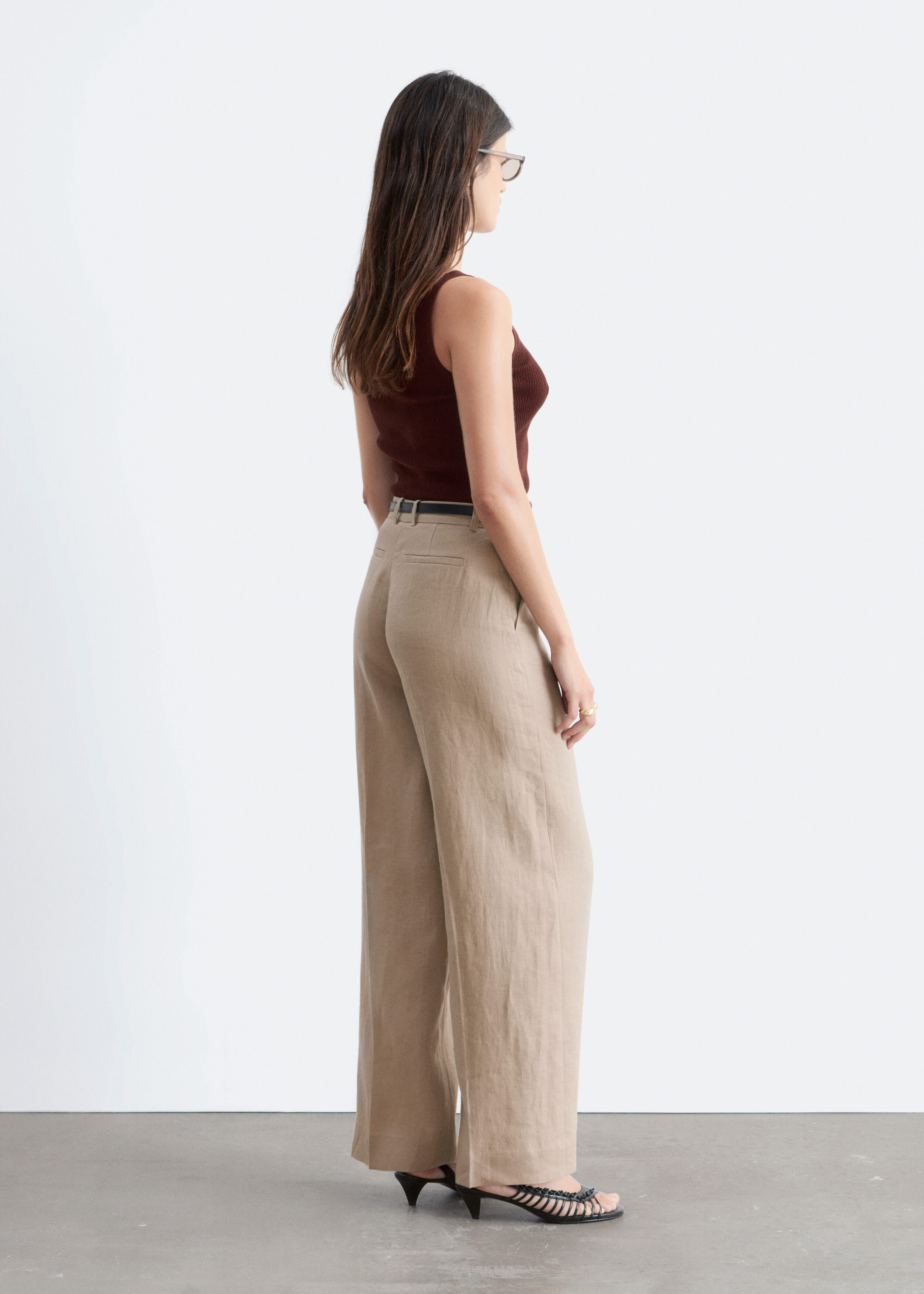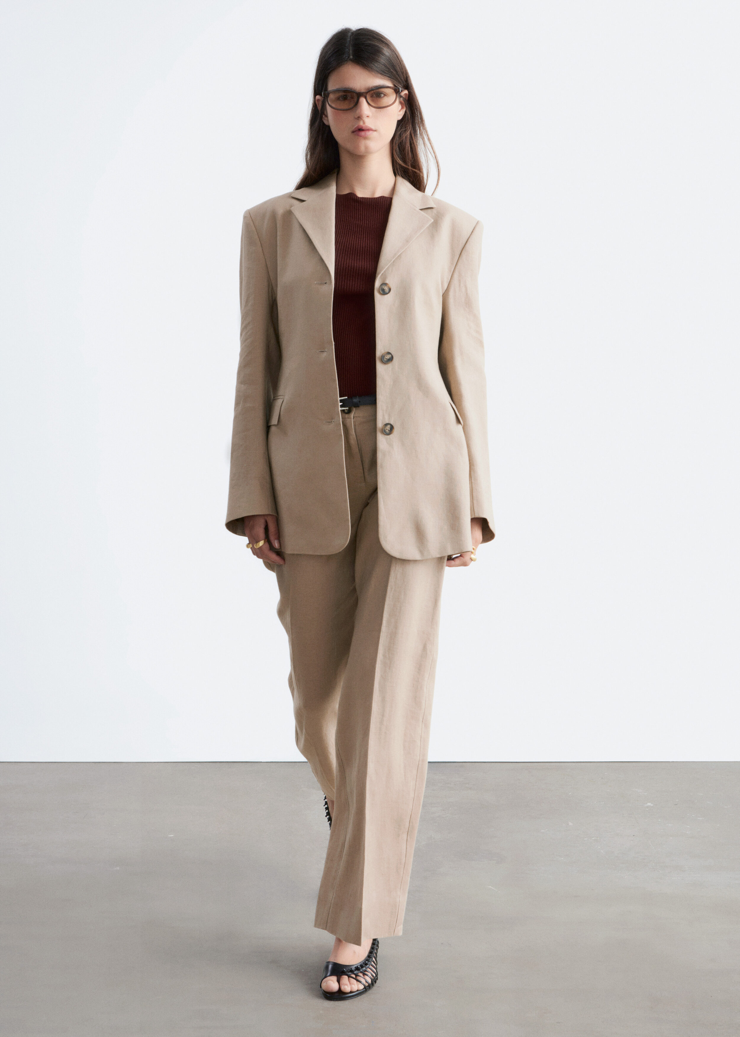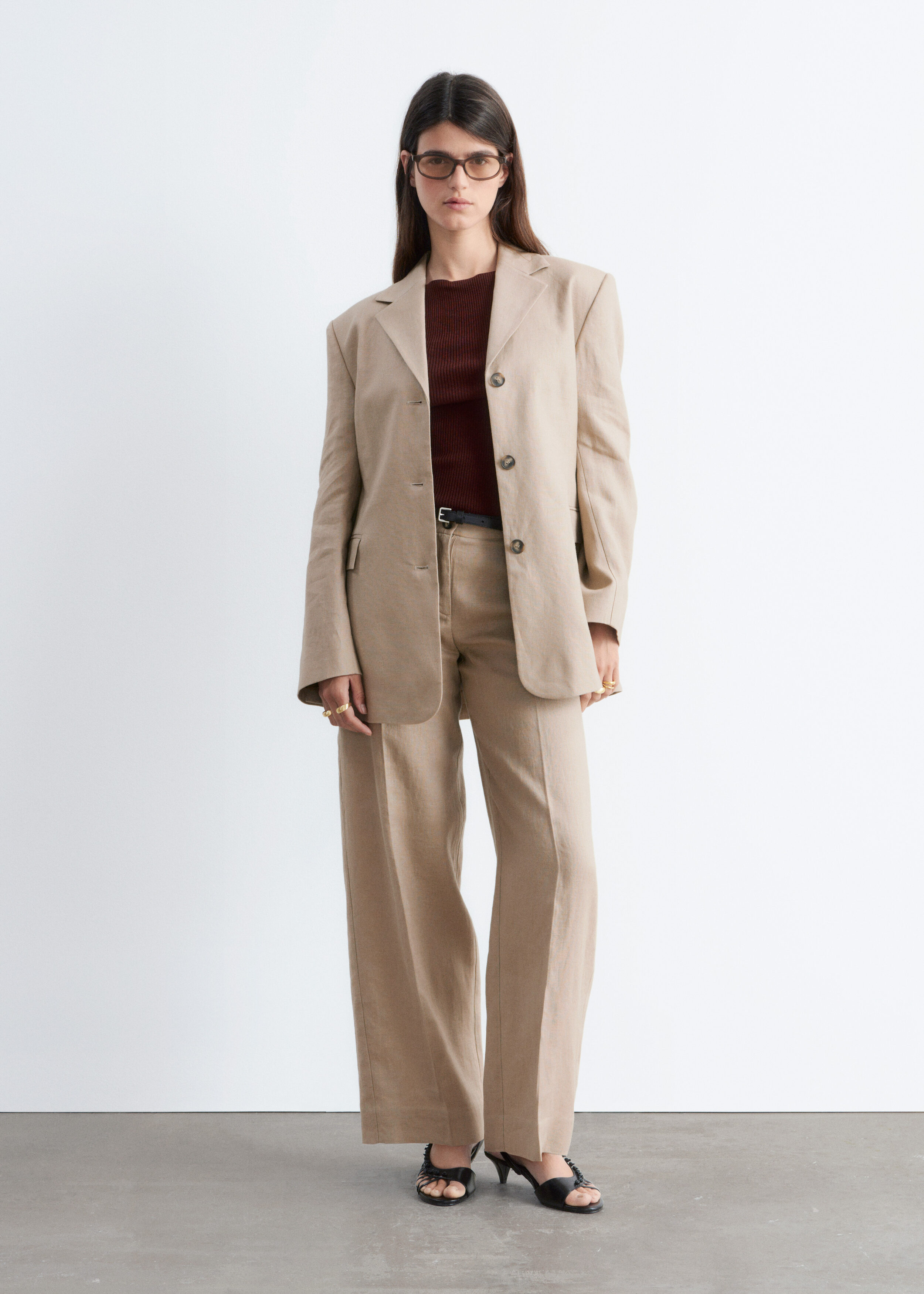 클래식을 새롭게 재해석한 트라우저예요. 리넨 소재로 탄생했으며 루즈한 로우 웨이스트 실루엣이 특징이랍니다. 앞면과 뒷면의 프레스 주름이 입체감을 더해주며, 여유로운 쉐입과 구조적인 테일러드 스타일이 조화를 이루고 있어요