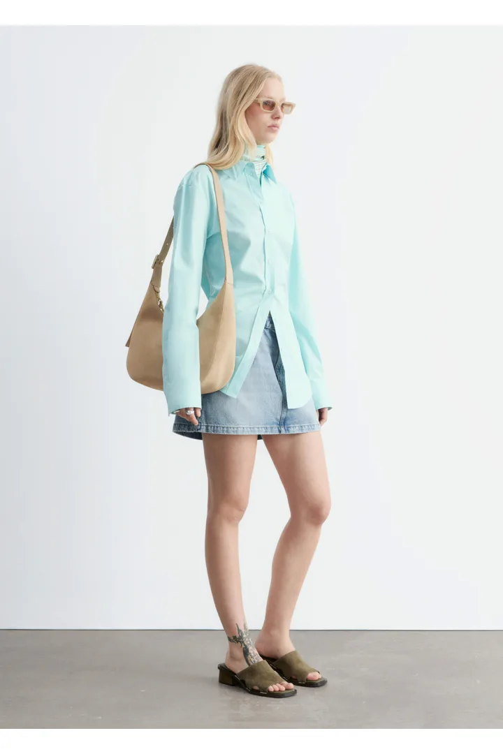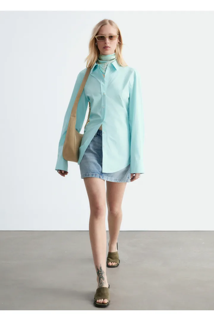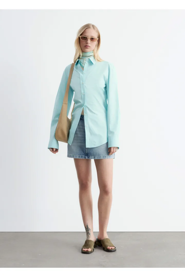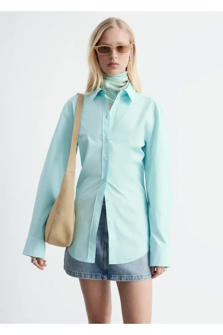 절제된 매력이 돋보이는 셔츠예요. 산뜻한 코튼 소재로 제작되었으며, 테이퍼드 실루엣과 뒷면의 섬세한 타이 클로저가 특징이랍니다. 데님 또는 테일러드 트라우저와 매치해 보세요.