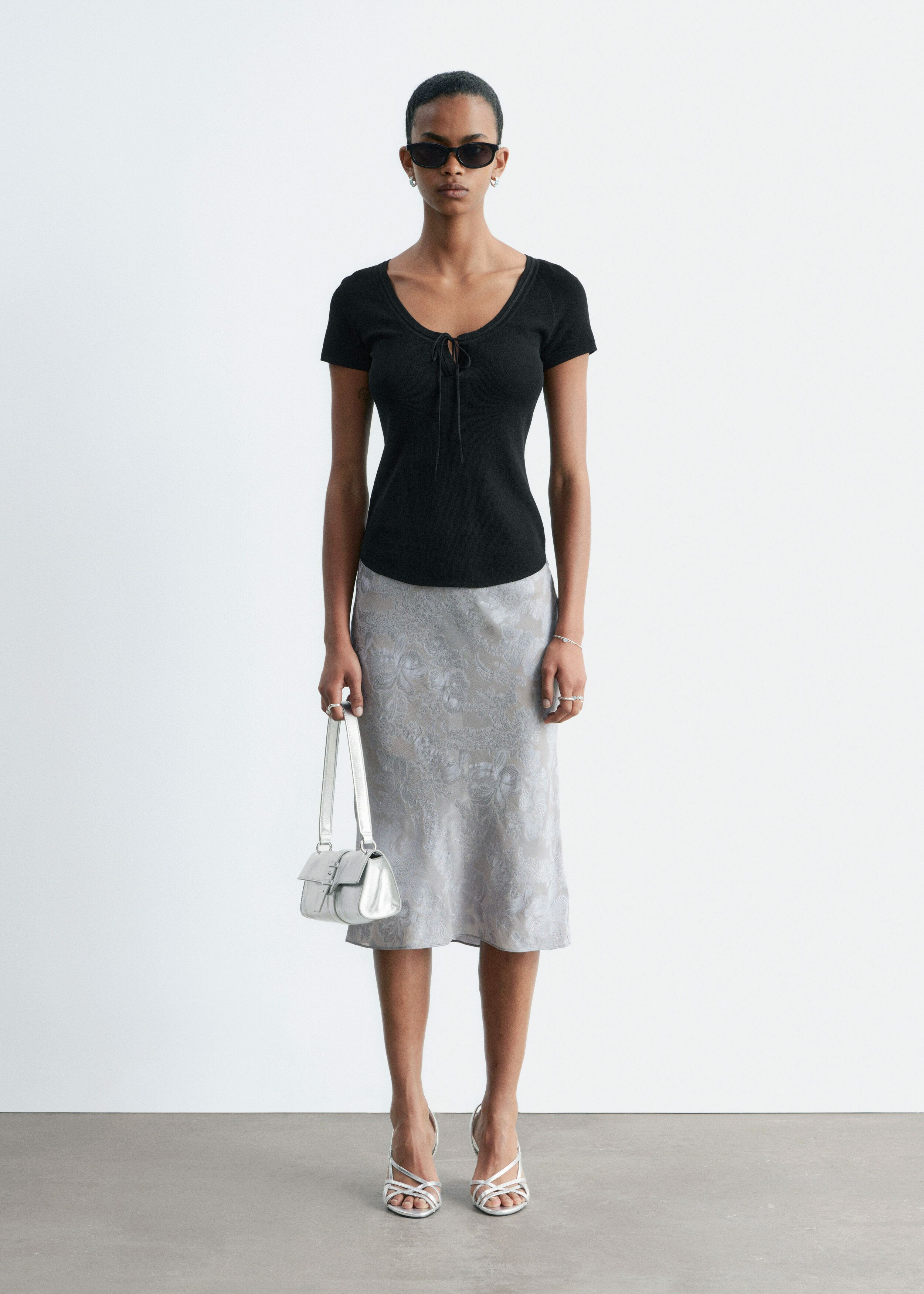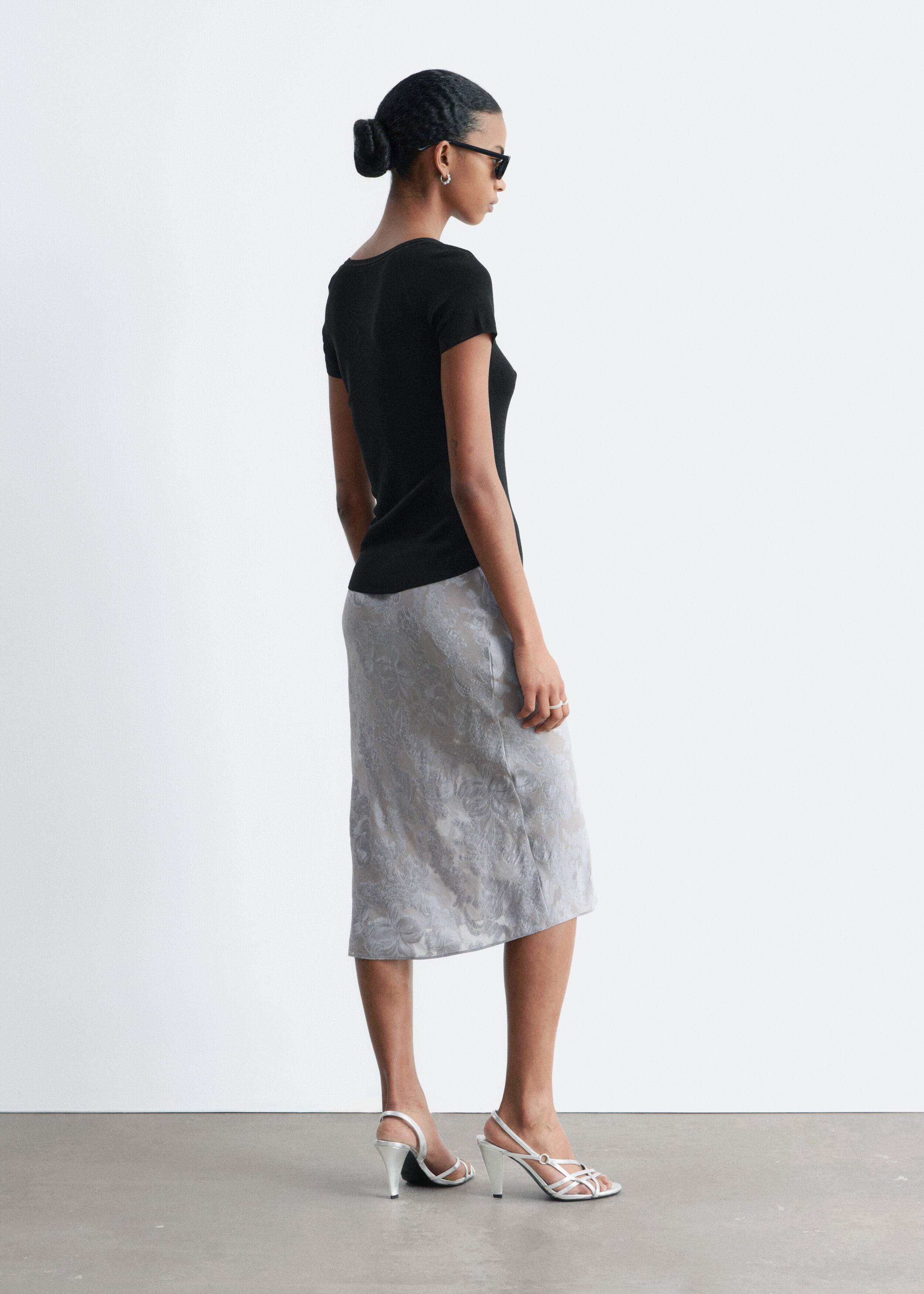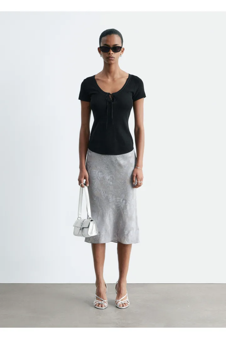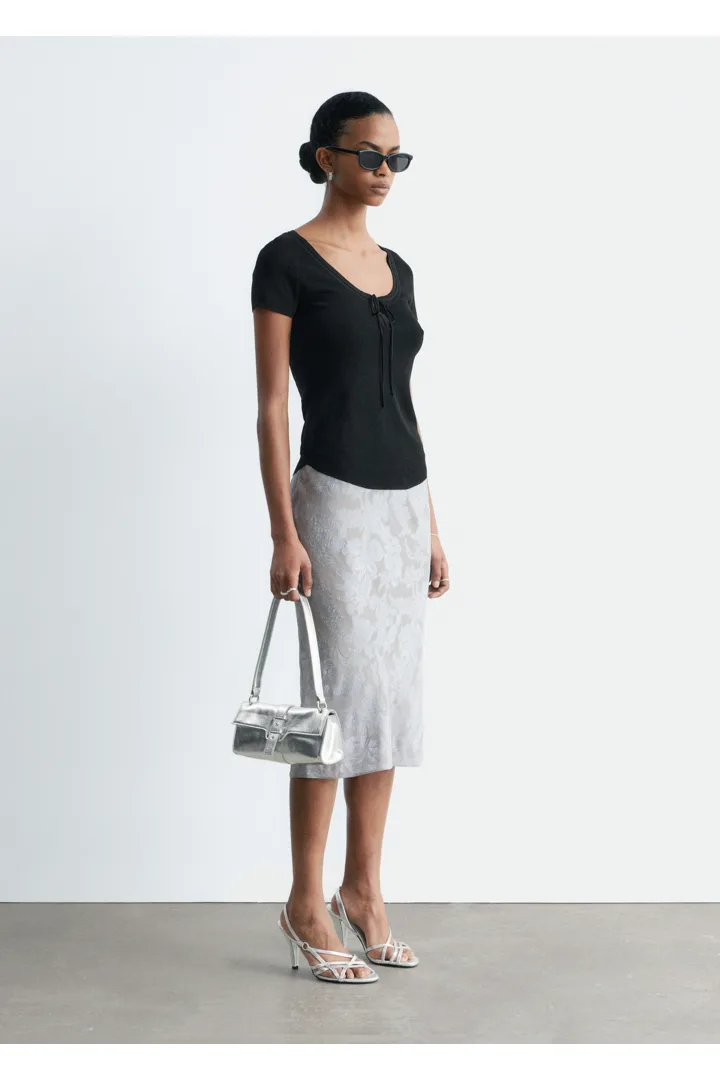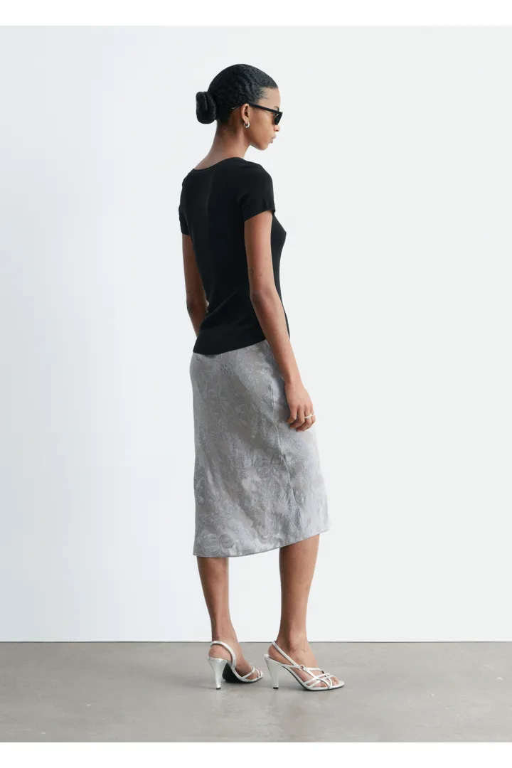 비스코스 실크 자카드 미디 스커트
