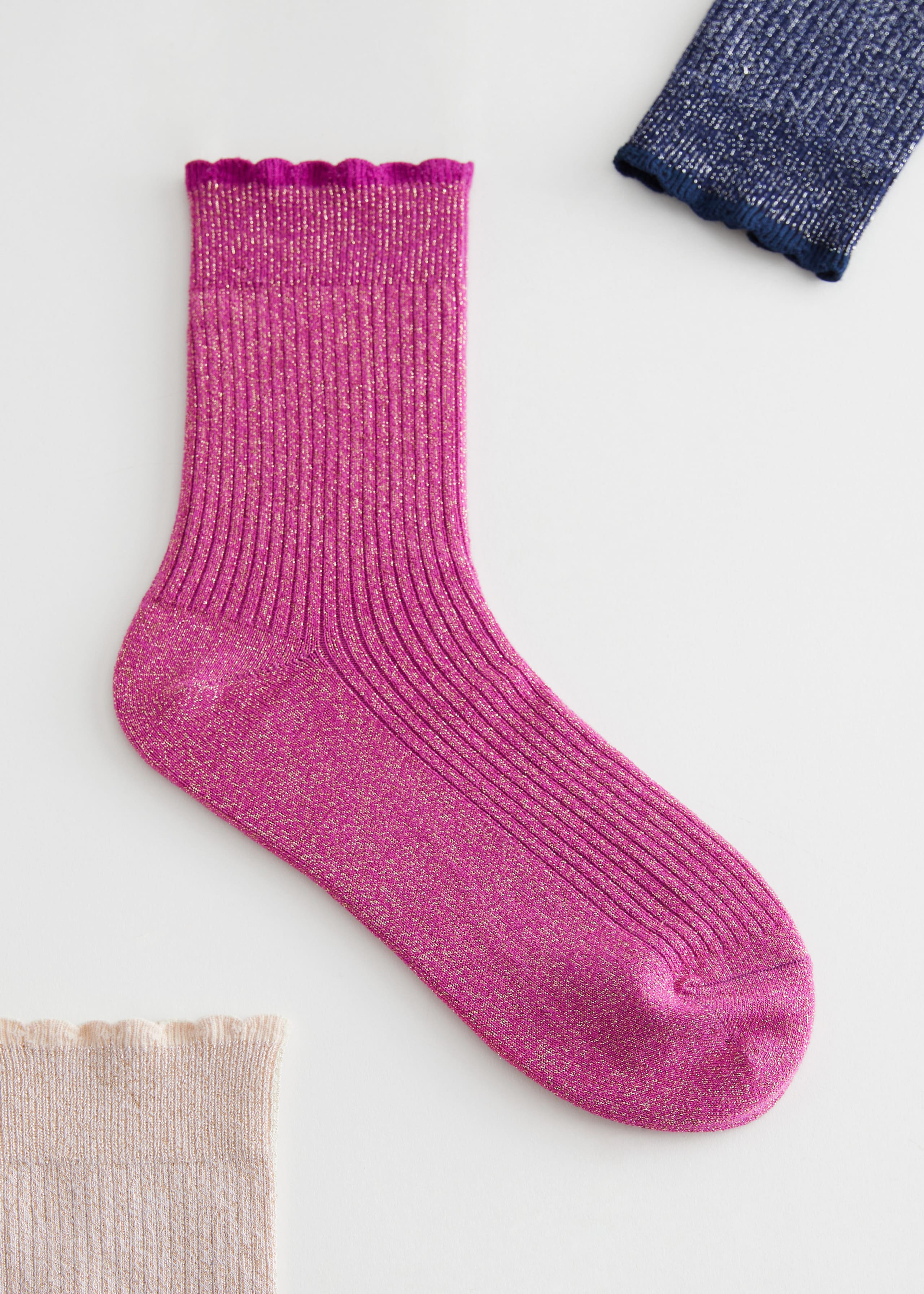 Wykonane z materiału z domieszką bawełny lekkie, przezroczyste skarpetki o subtelnej teksturze w prążki. Ściągacze w prążki i wzmocnione palce zapewniające długotrwały komfort.