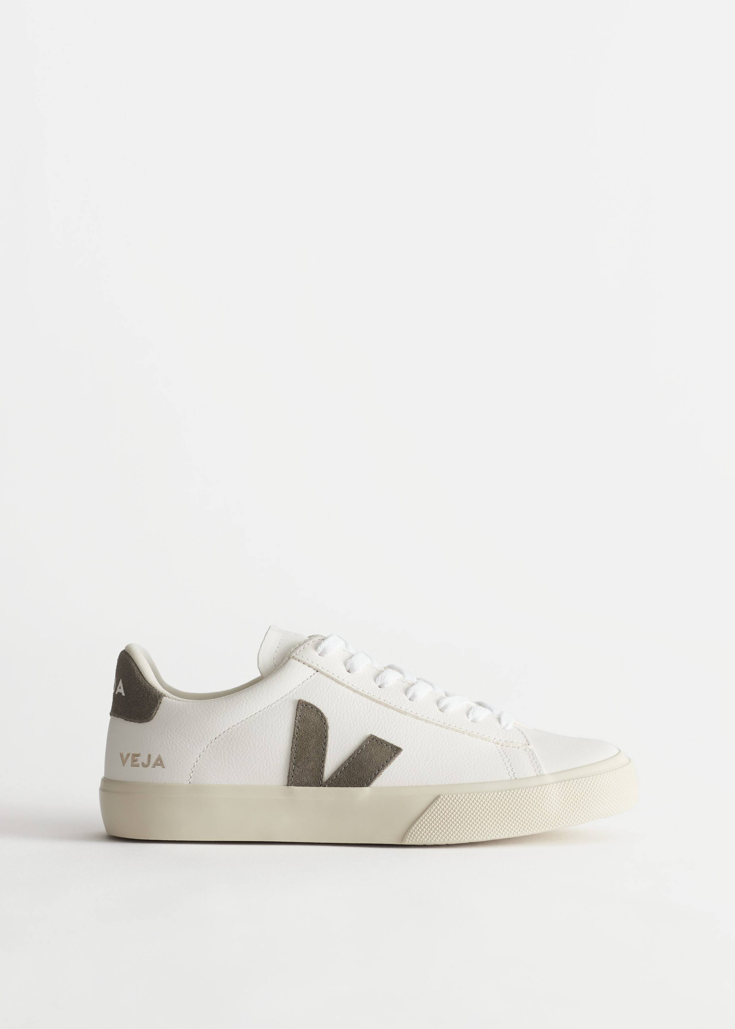 Sneakersy Campo marki Veja ze skóry garbowanej bez użycia chromu. Kontrastowe kolorowe akcenty, gumowa podeszwa i klasyczne logo „V” z boku.