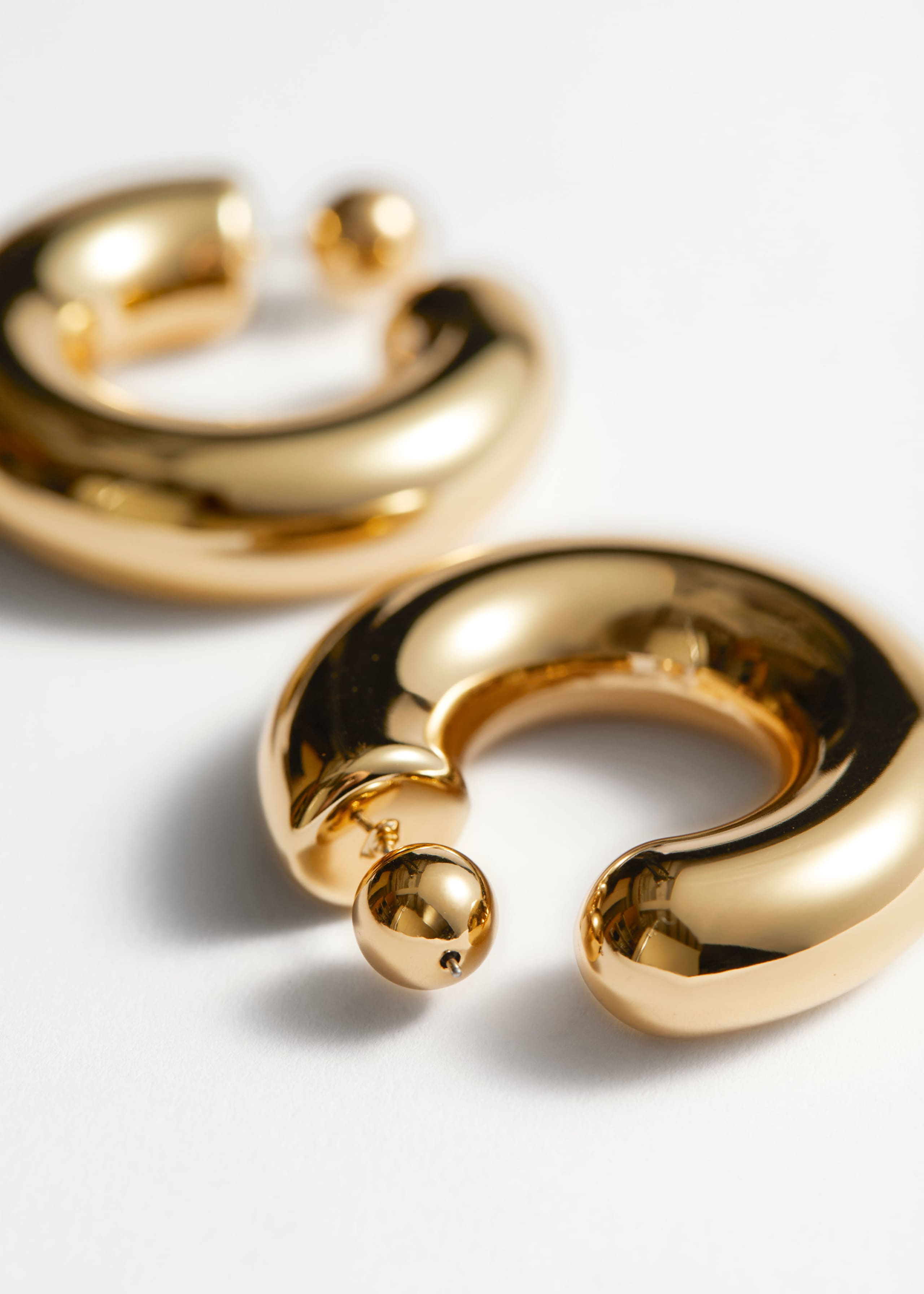 Stora, chunky hoops i blank, pläterad mässing. Ett par mjukt rundade örhängen som passar till allt.