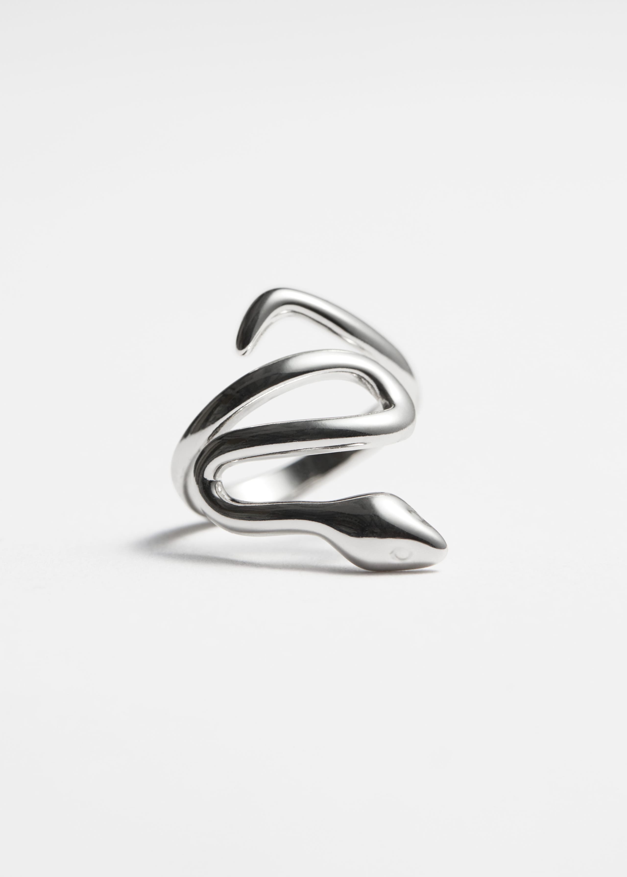 Ring i form av en orm av pläterad mässing och gnistrande strasstenar. Bär den för sig själv på pekfingret eller långfingret för bästa effekt.