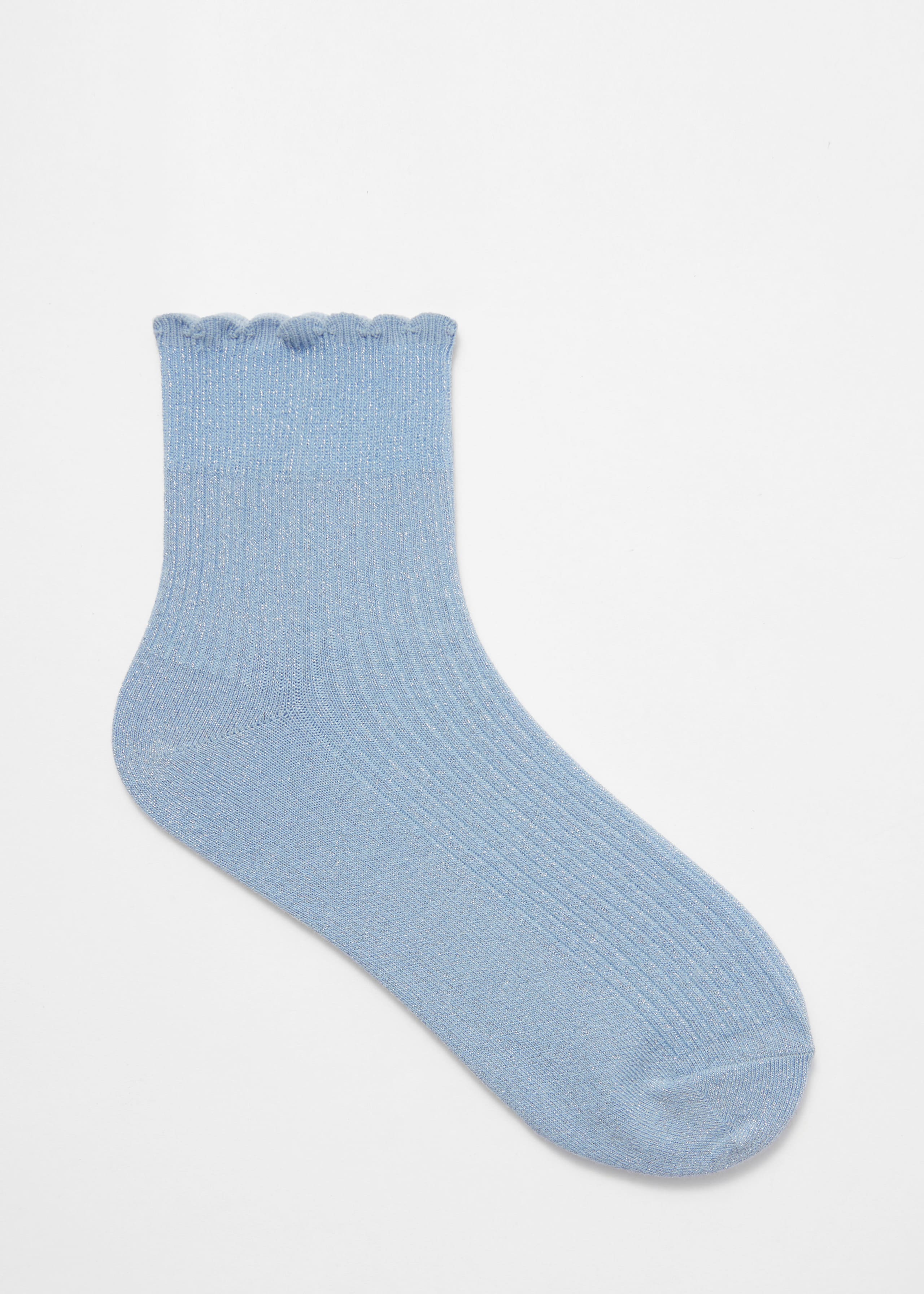 Ankelstrumpor i metallicskimrande lurexgarn.