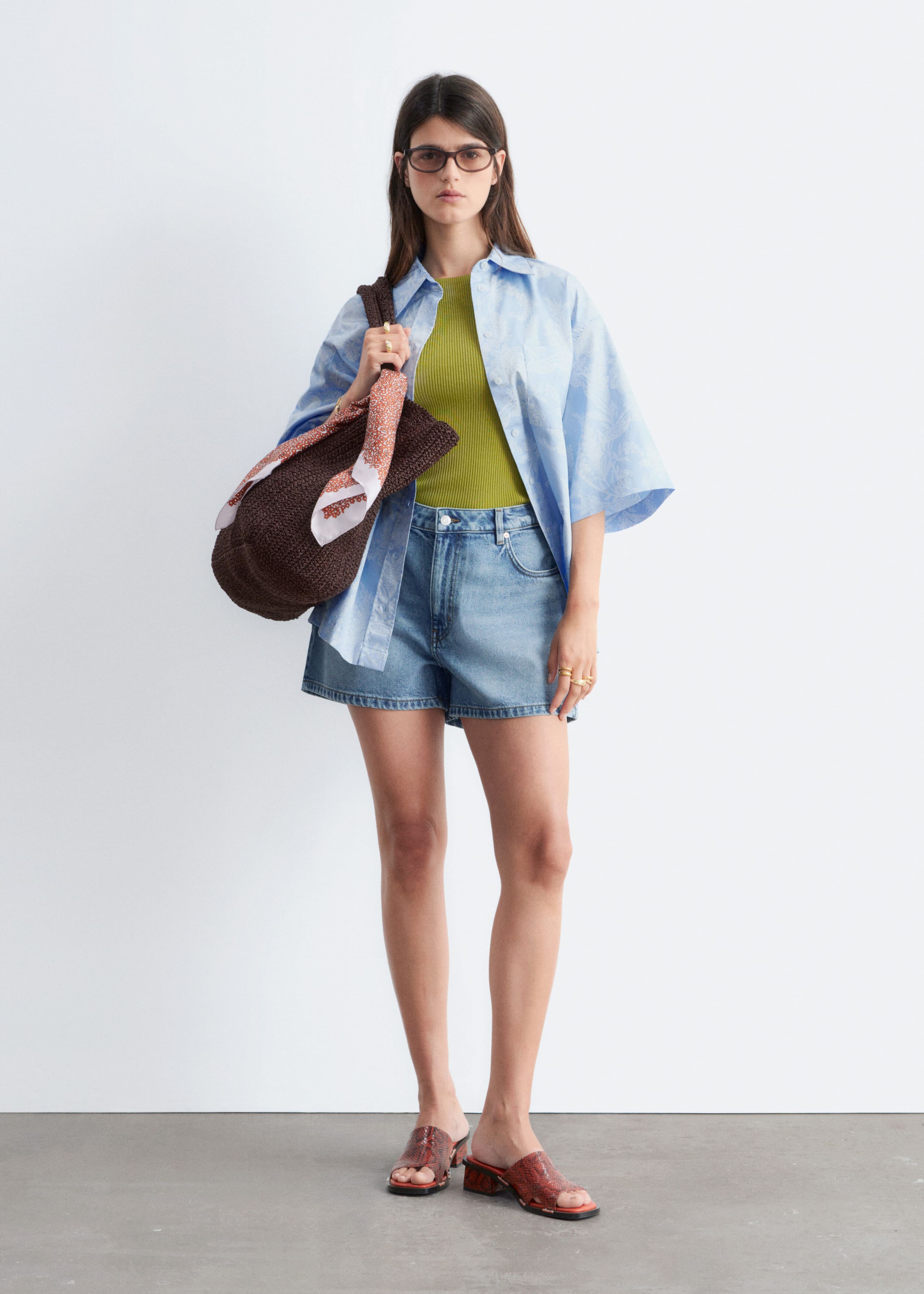 Minishorts i jacquardviskos med en texturerad känsla och en lös passform. Shortsen har en snedskuren fåll med spetspanel och en dragsko i midjan.