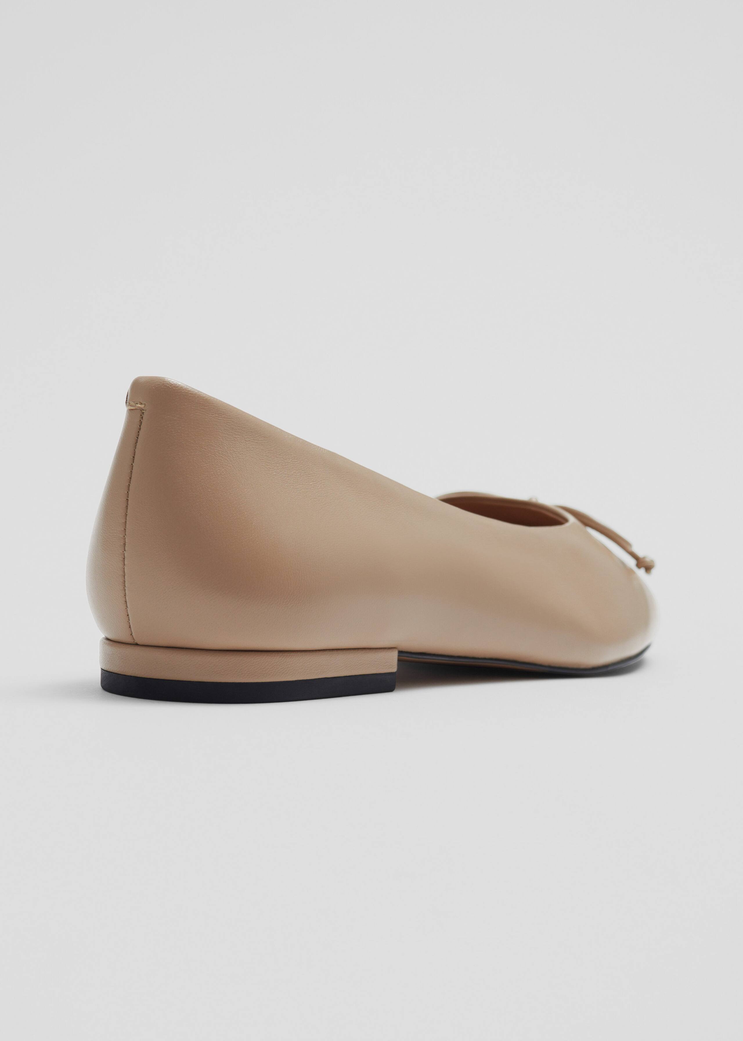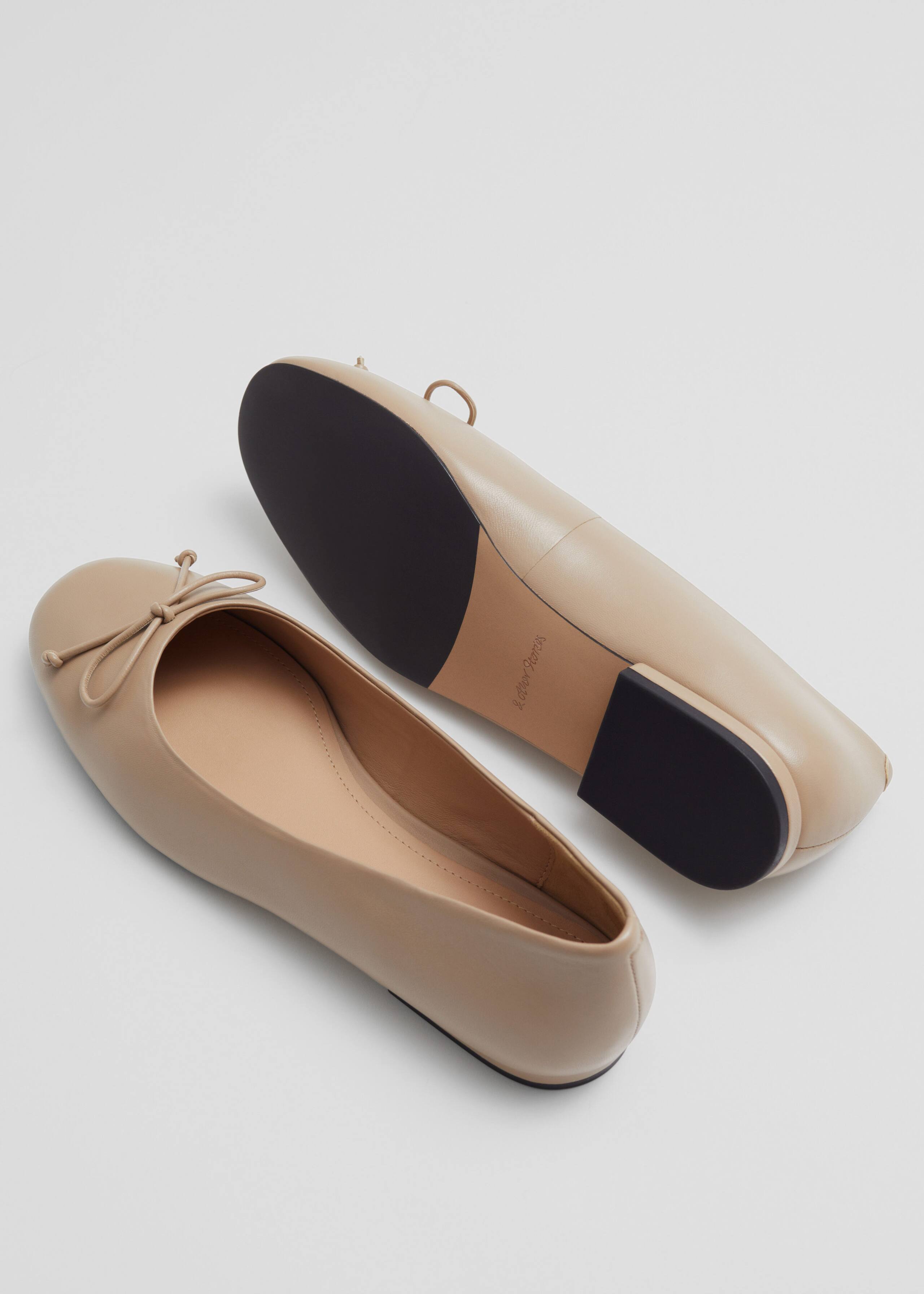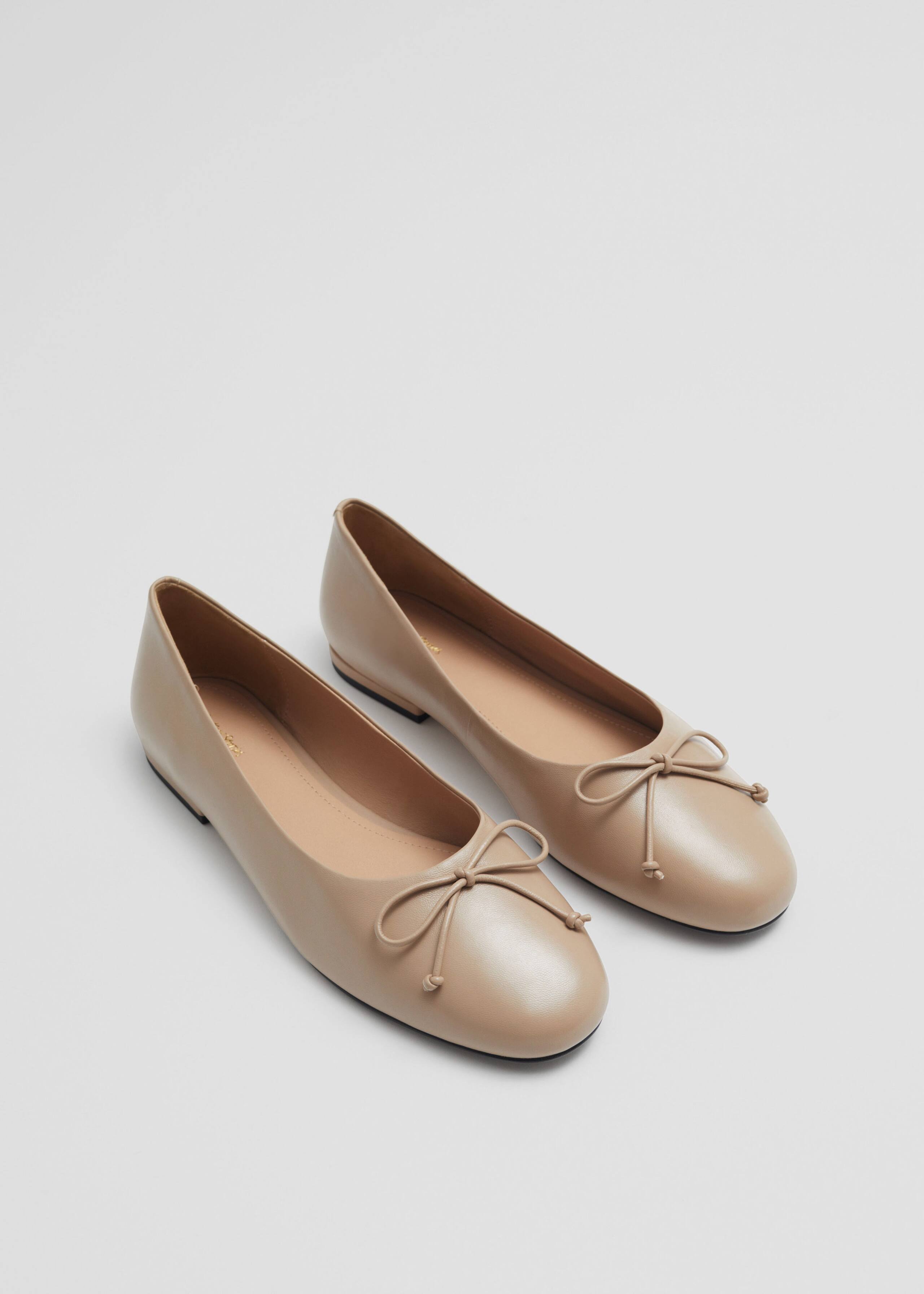 Tidlösa ballerinaskor i mjukt läder med rundad tå och klassisk läderrosett.